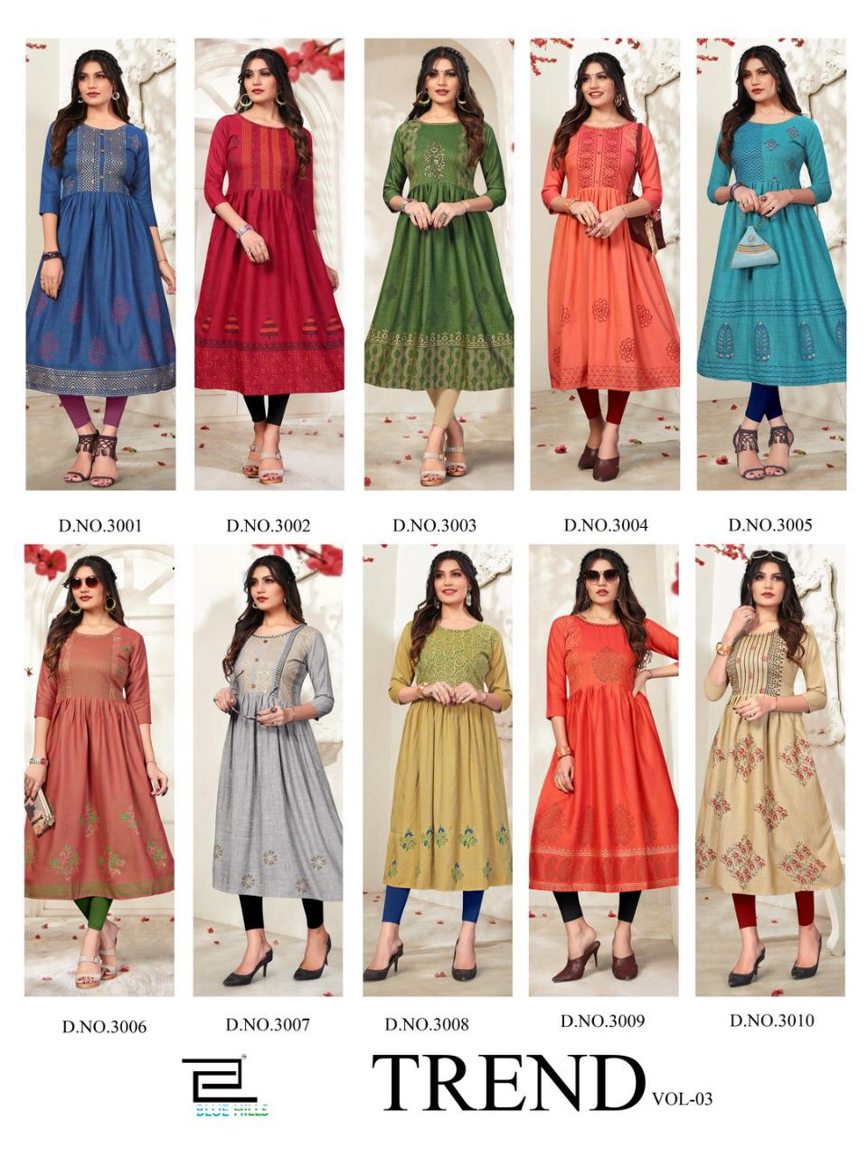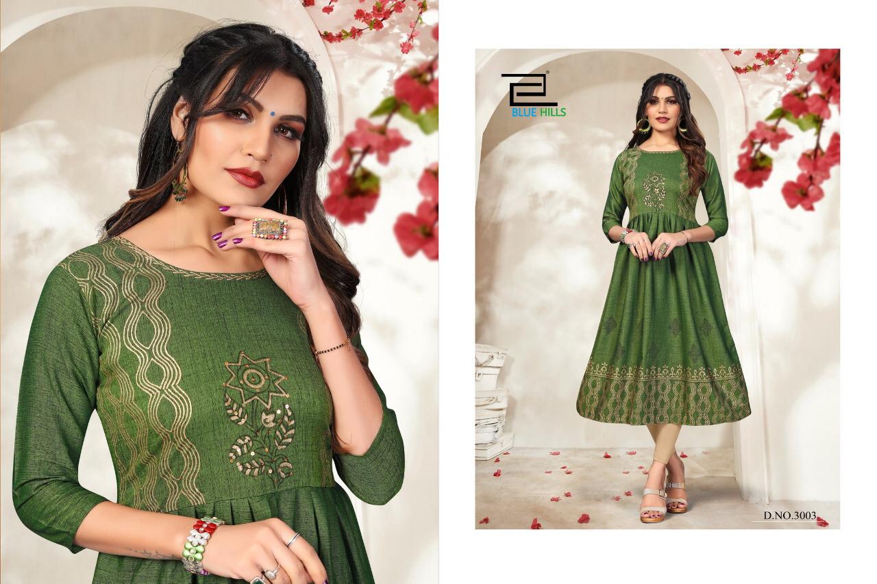Blue Hills Trend Vol 3 By Heavy Rayon Anarkali Style Kurti At Krishna Creation In Surat