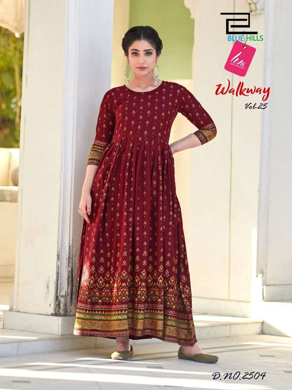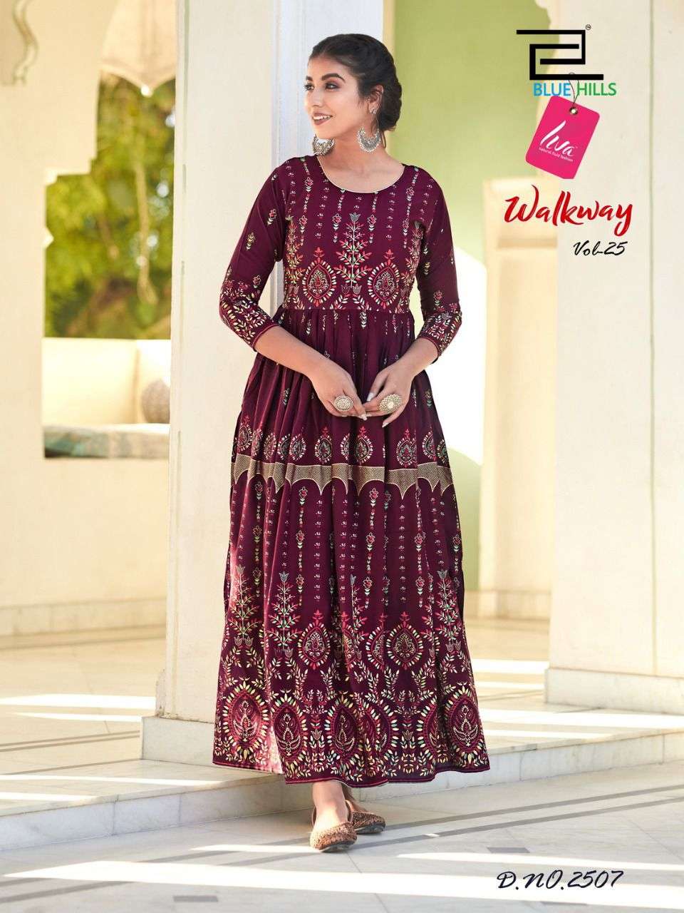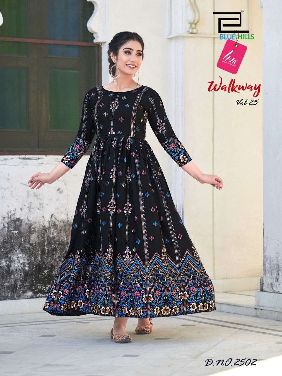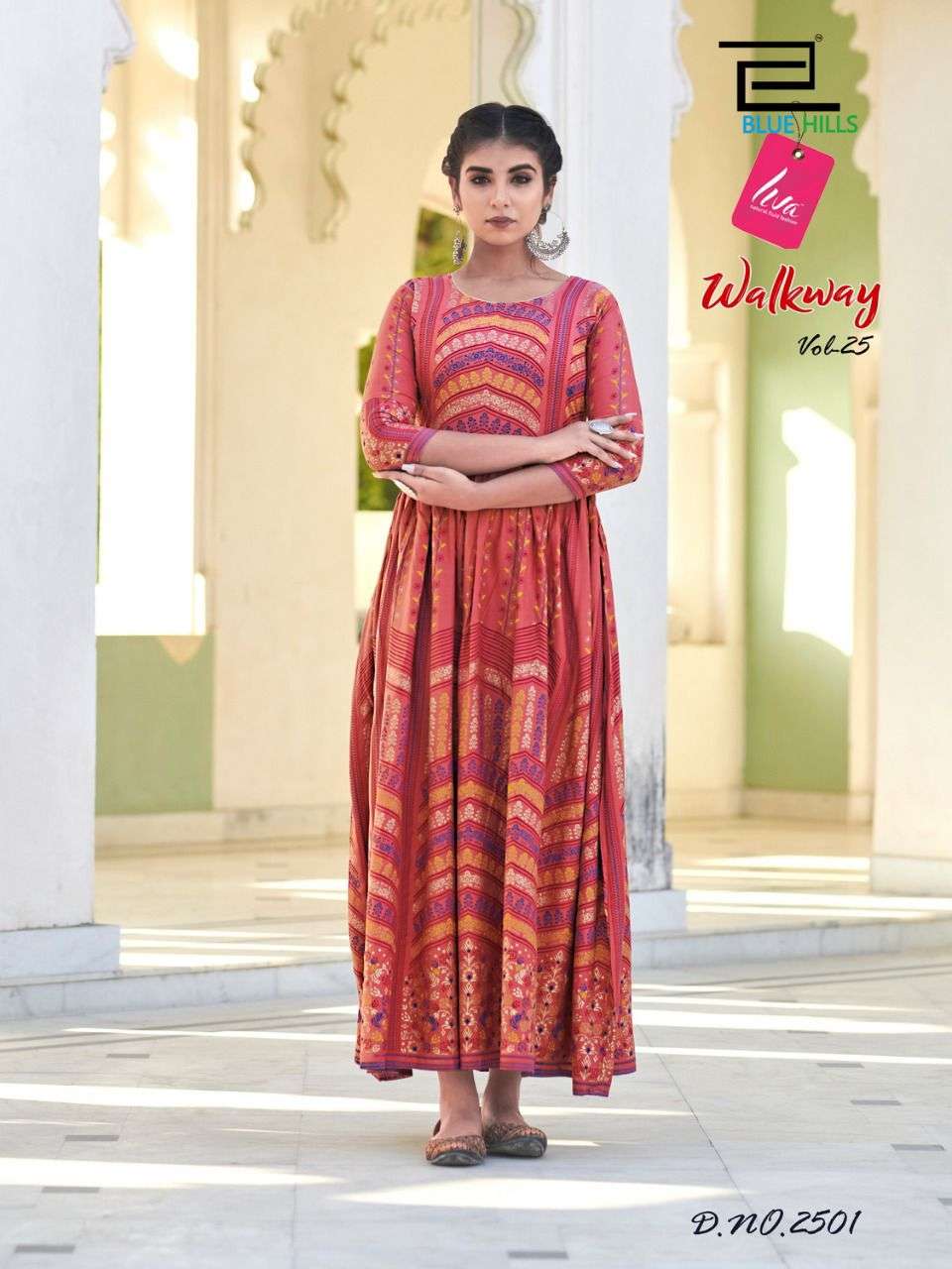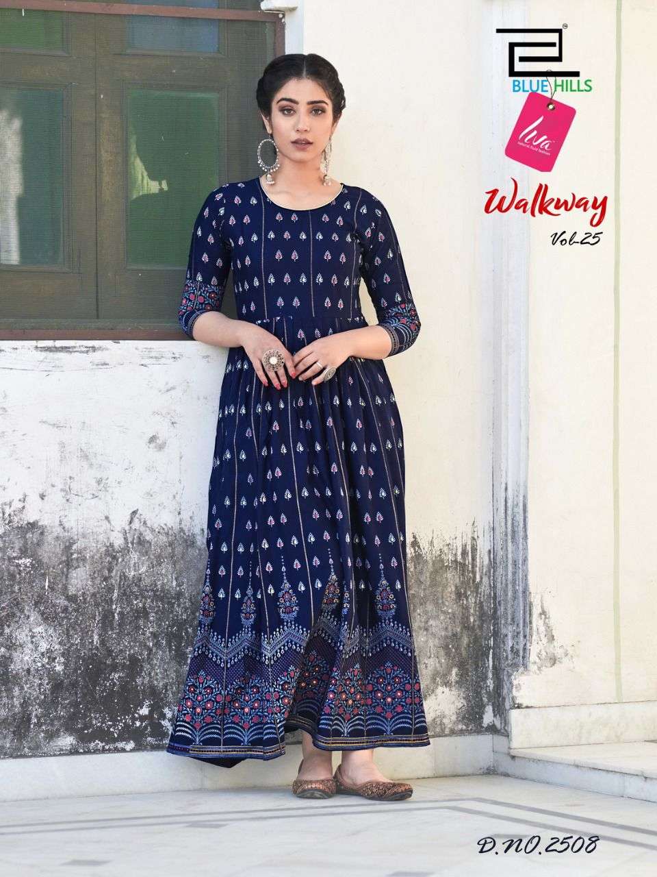 blue hills walkway vol 25 exclusive long gown kurti collection liva fabrics