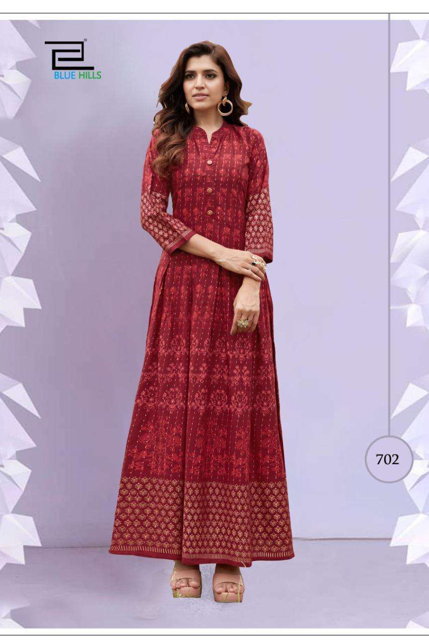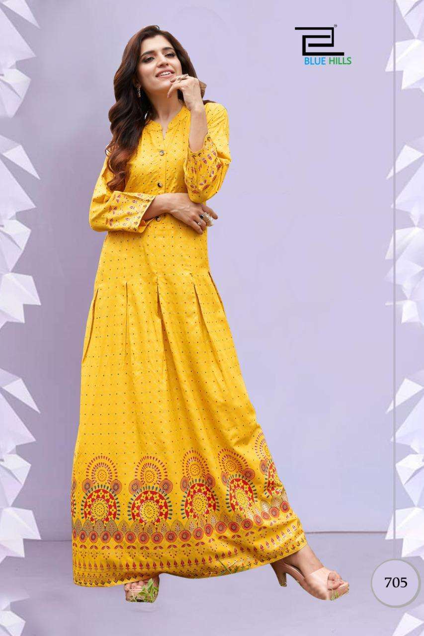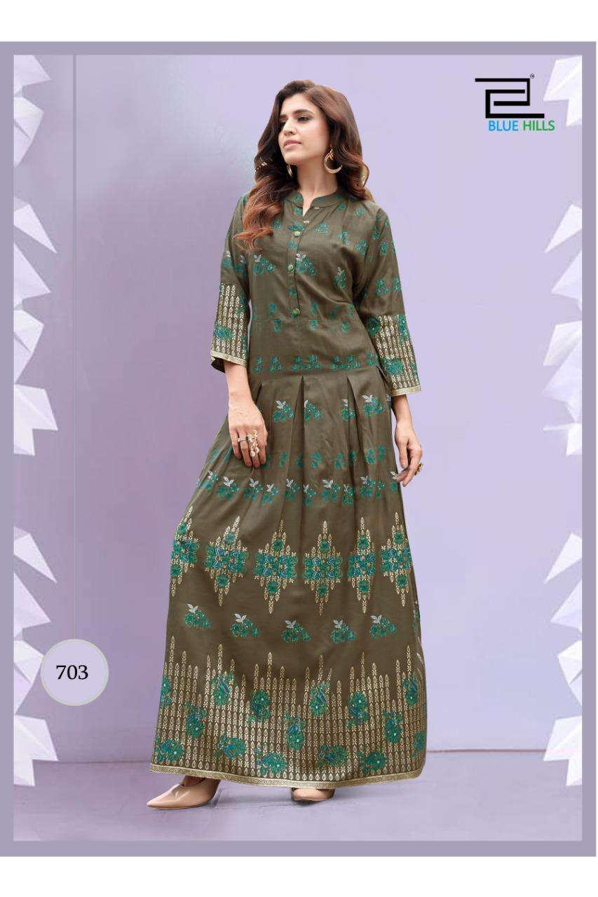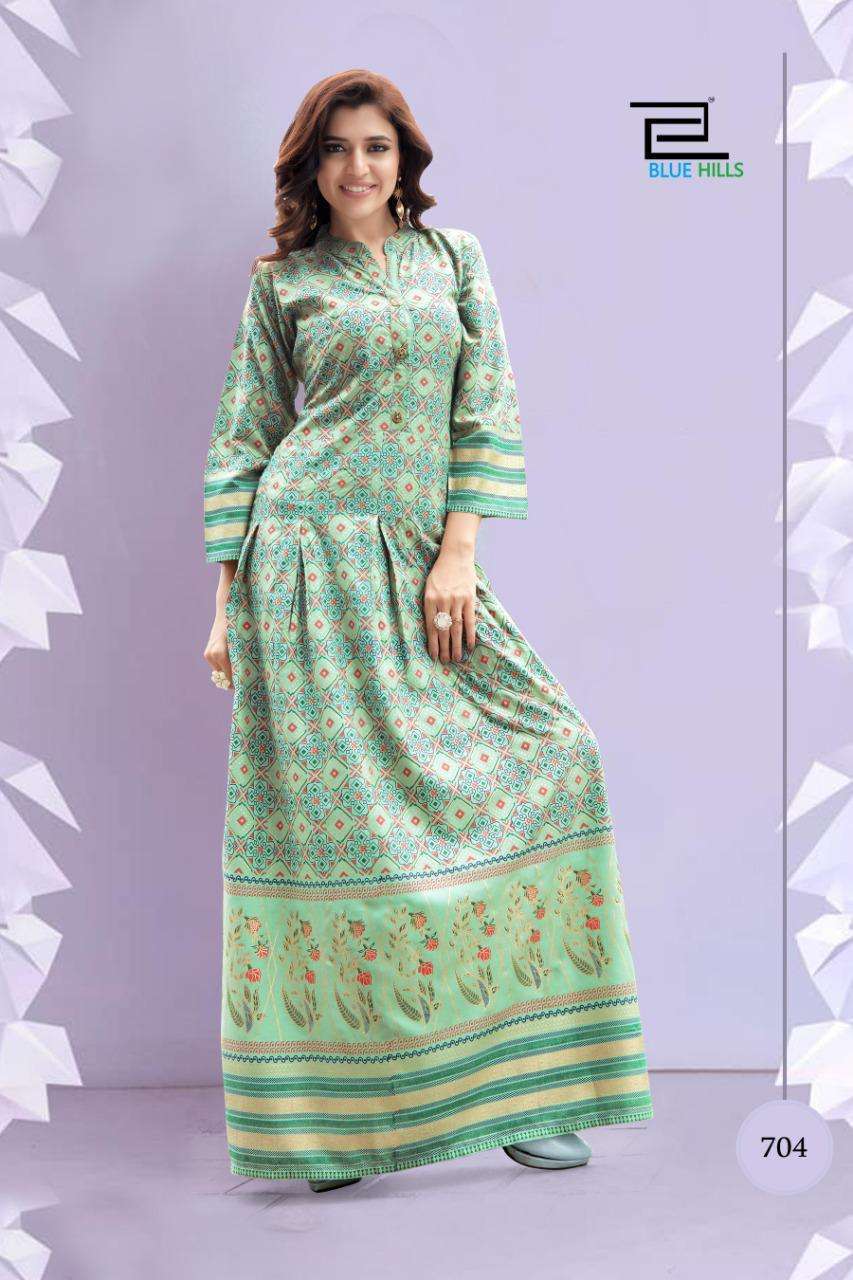 blue hills walkway vol 7 nx long gown foil printed kurtis collection wholesale only