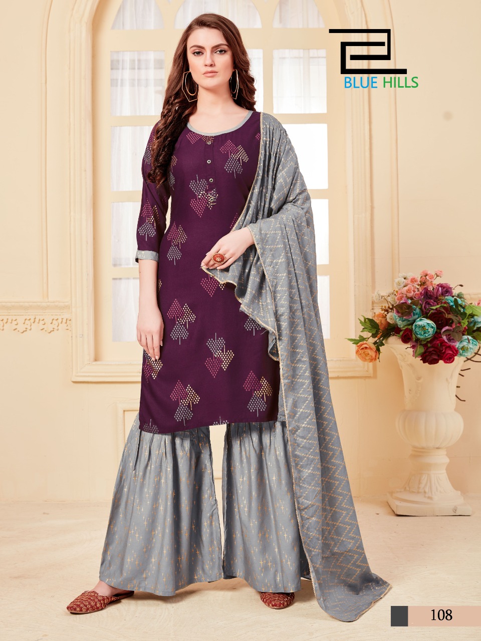 Blue Hills Zoya Rayon With Embroidery Readymade Plazzo Sharara And Skirt Style Salwar Kameez