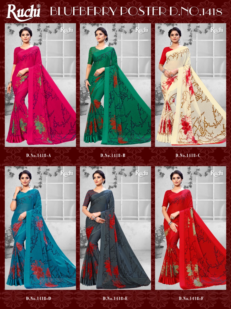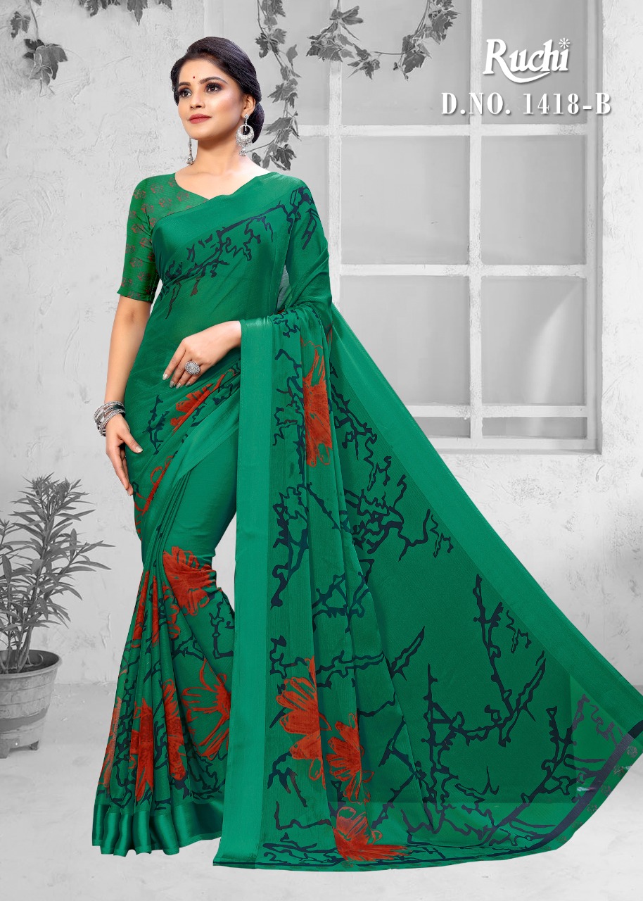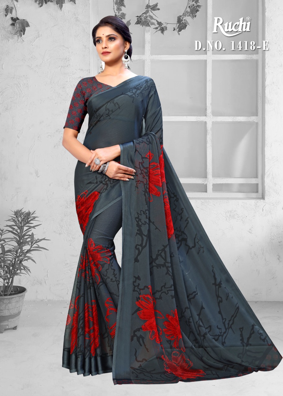 Blueberry 1418 By Ruchi Chiffon Printed Saree With Sateen Border