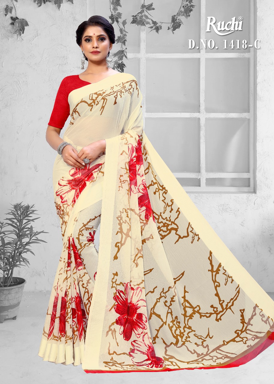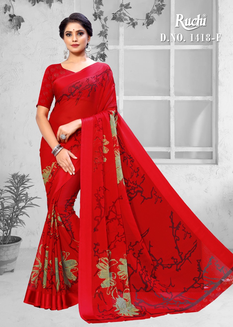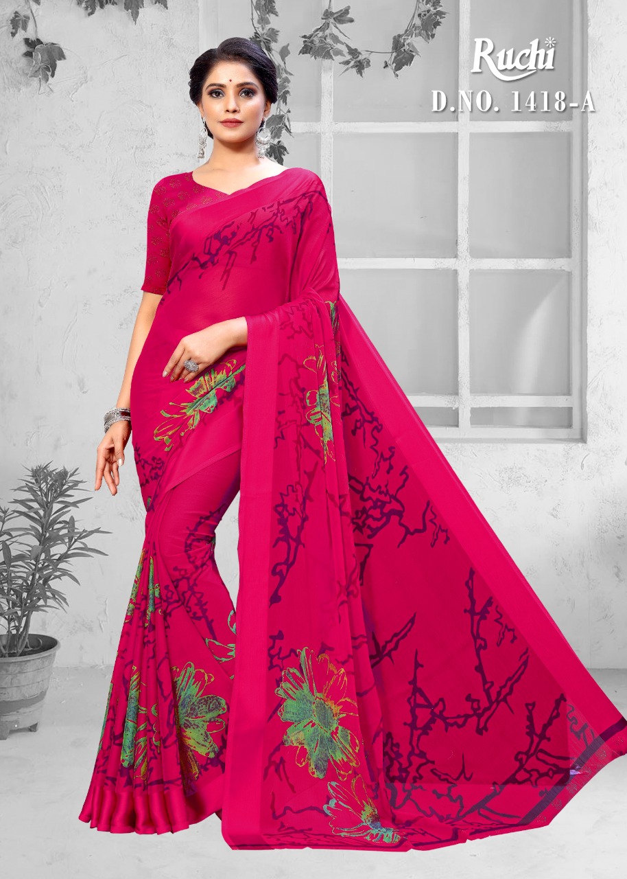 Blueberry 1418 By Ruchi Chiffon Printed Saree With Sateen Border