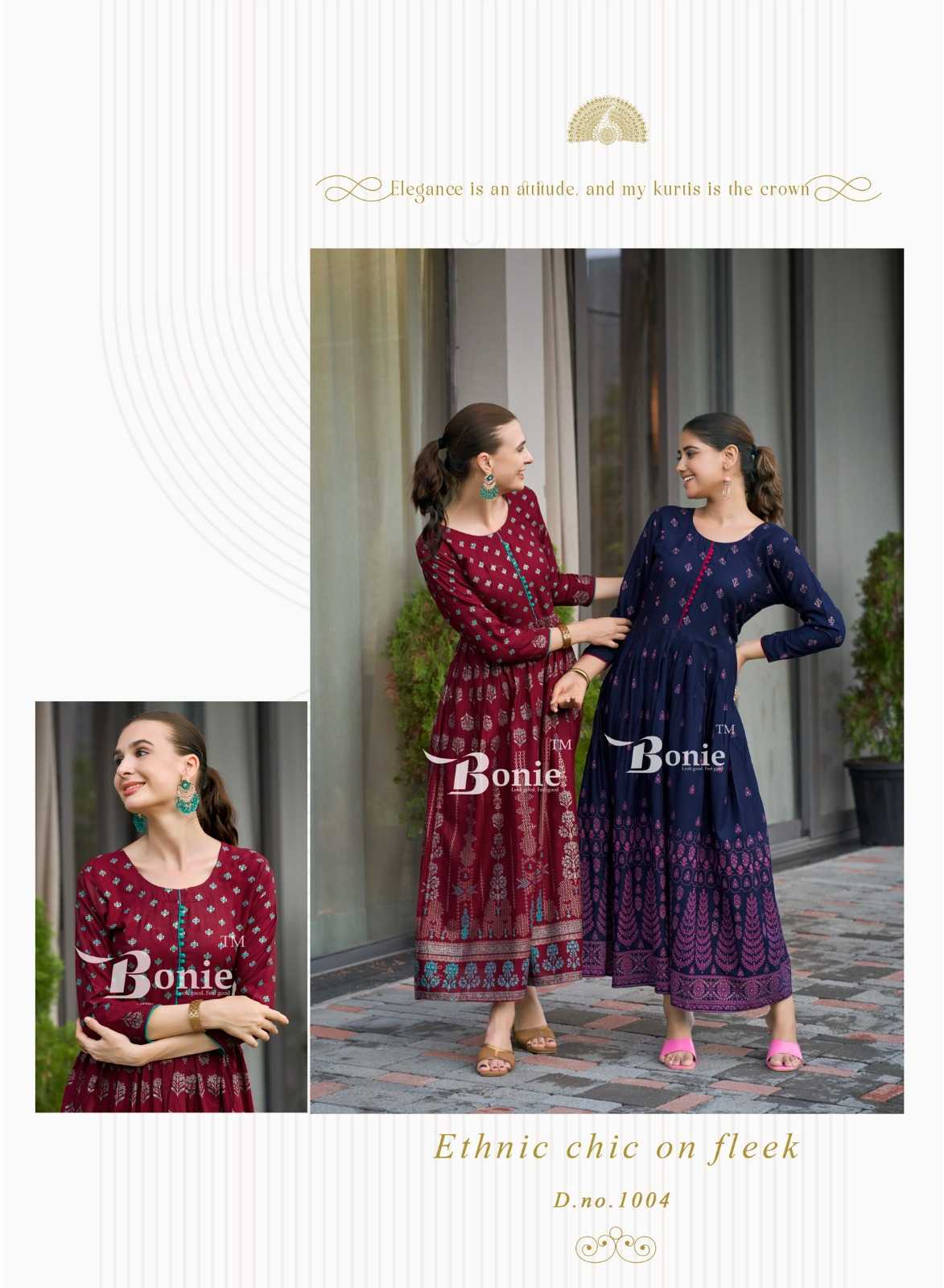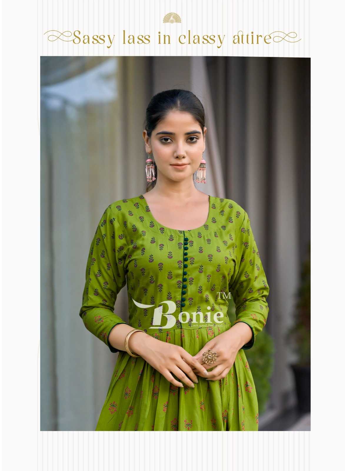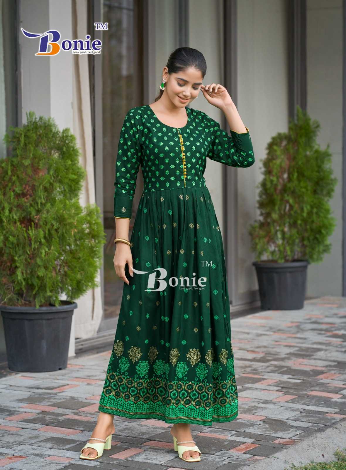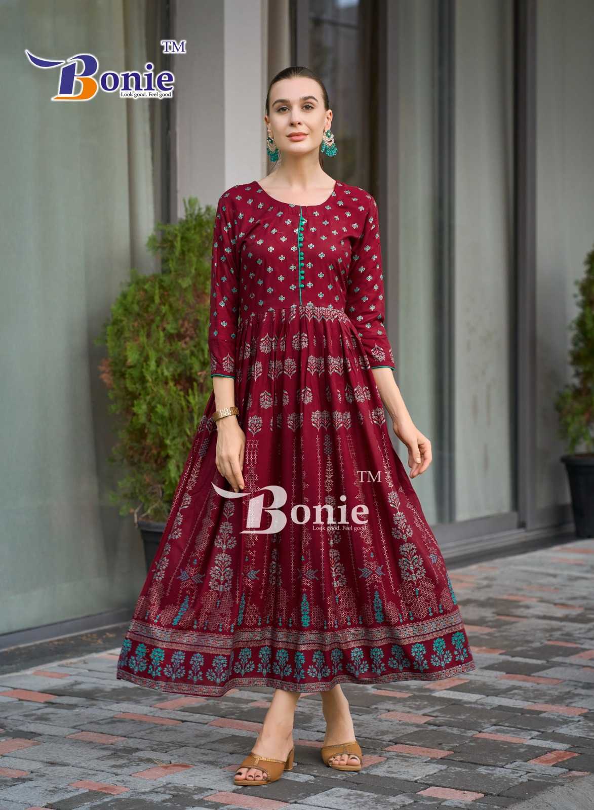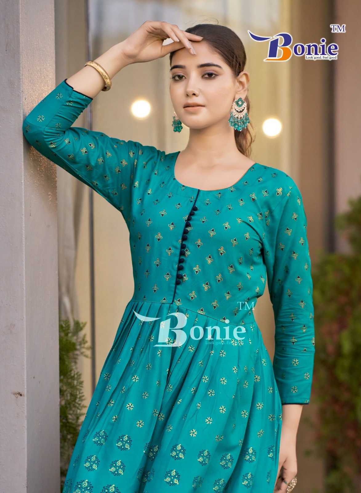 bonie aanchal vol 4 rayon print fancy comfy wear long ghera full stitch kurti