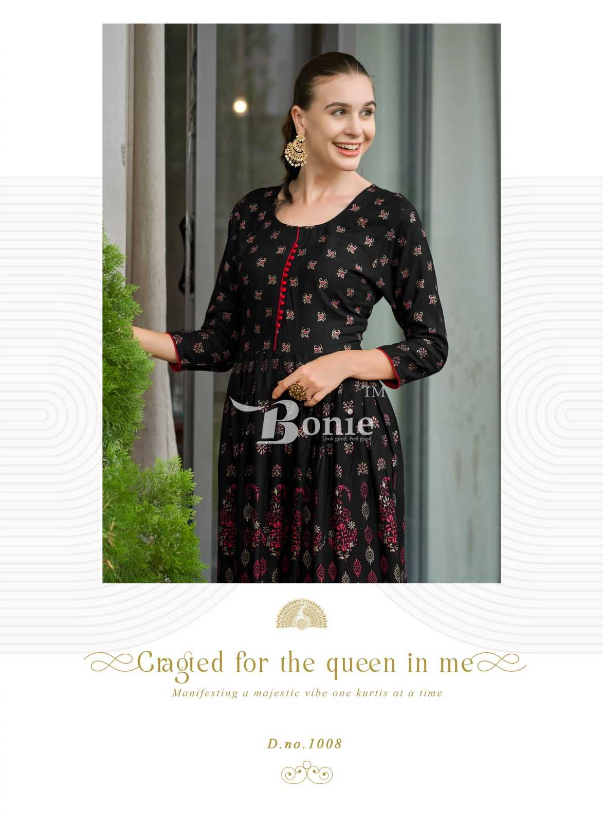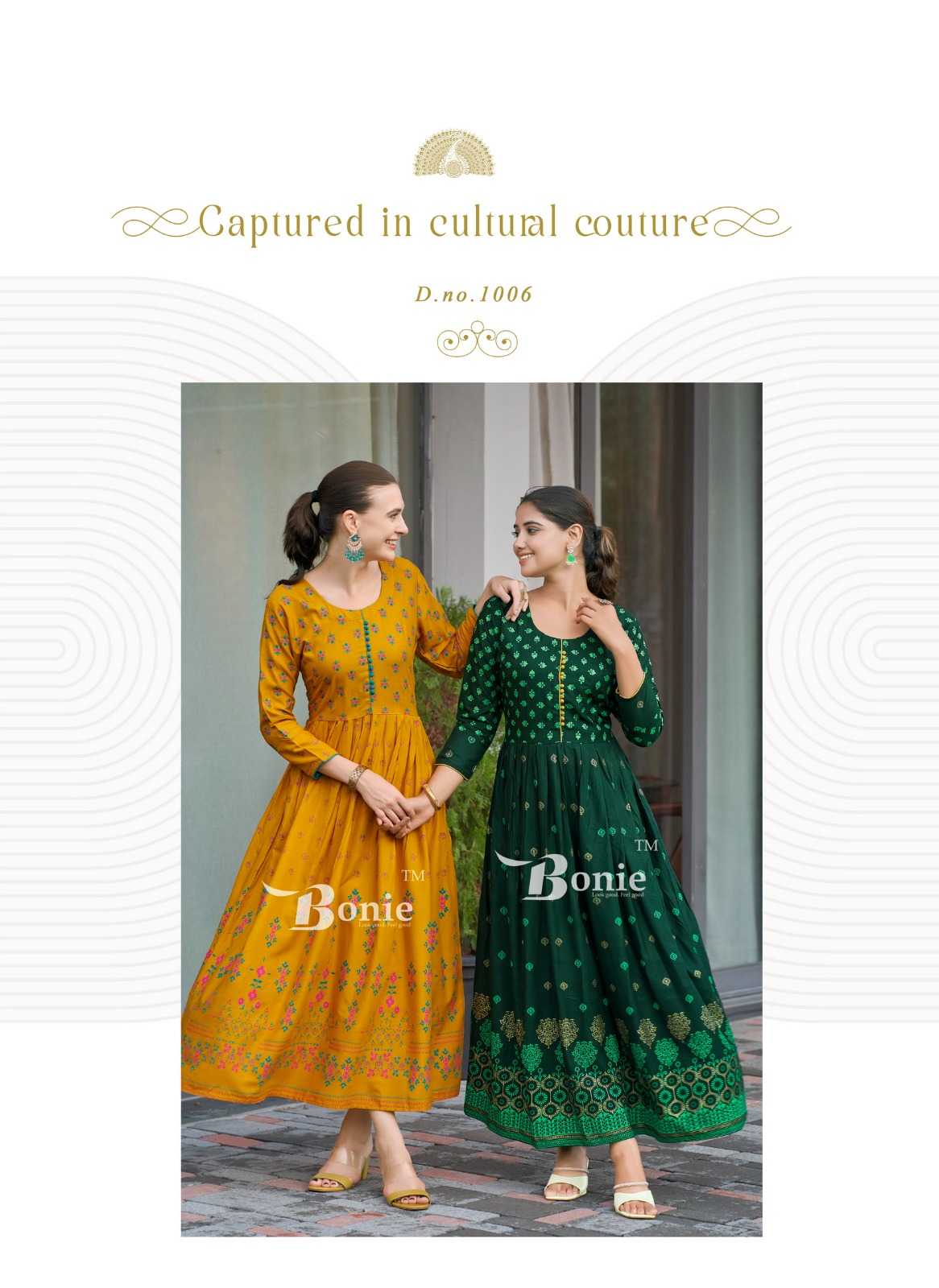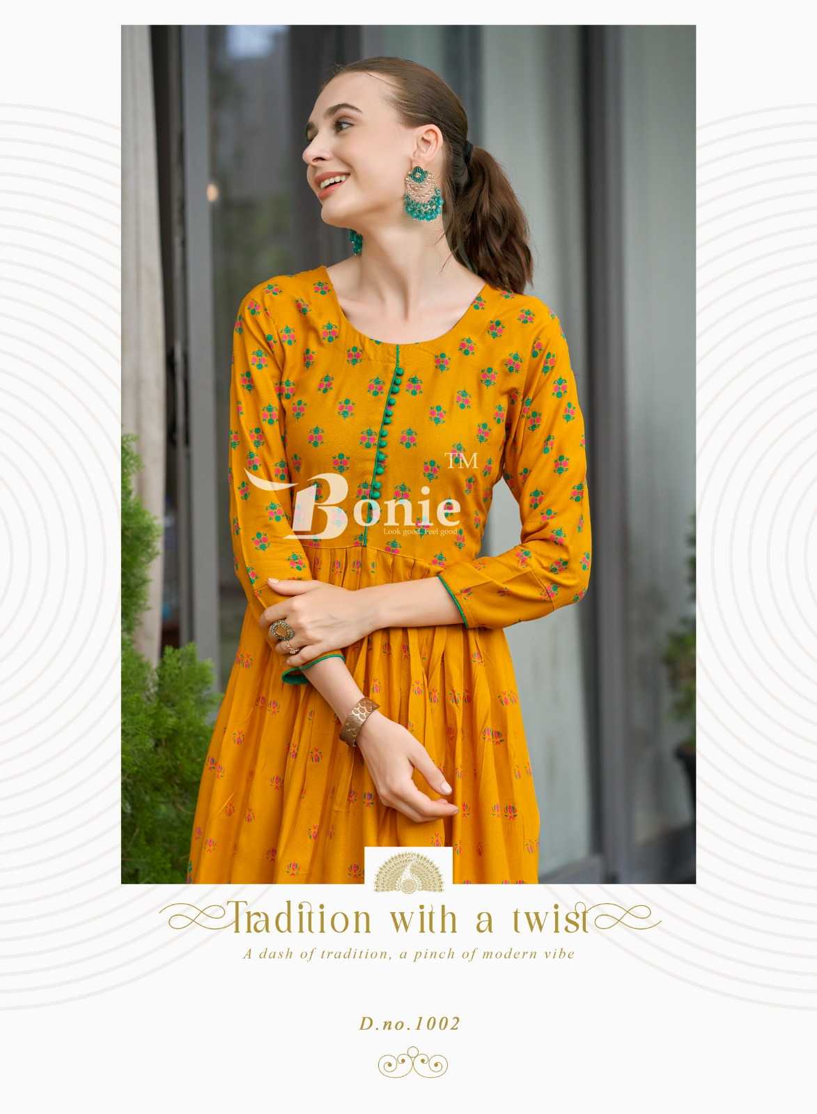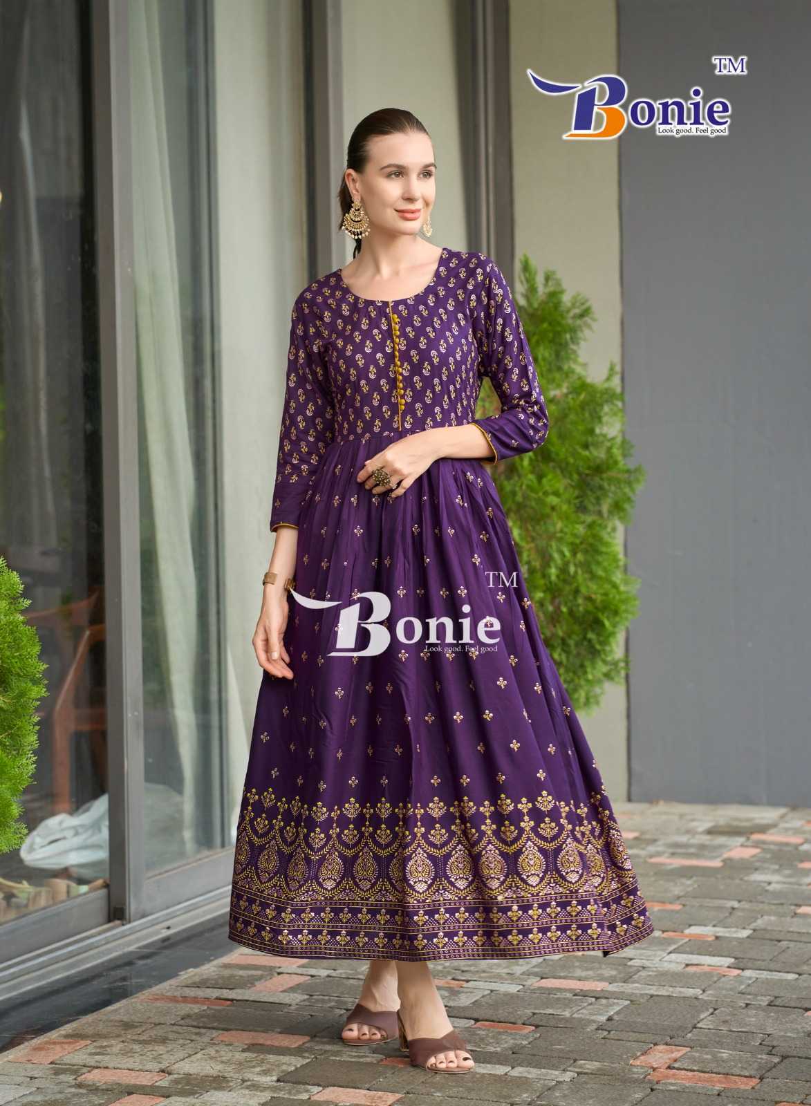 bonie aanchal vol 4 rayon print fancy comfy wear long ghera full stitch kurti