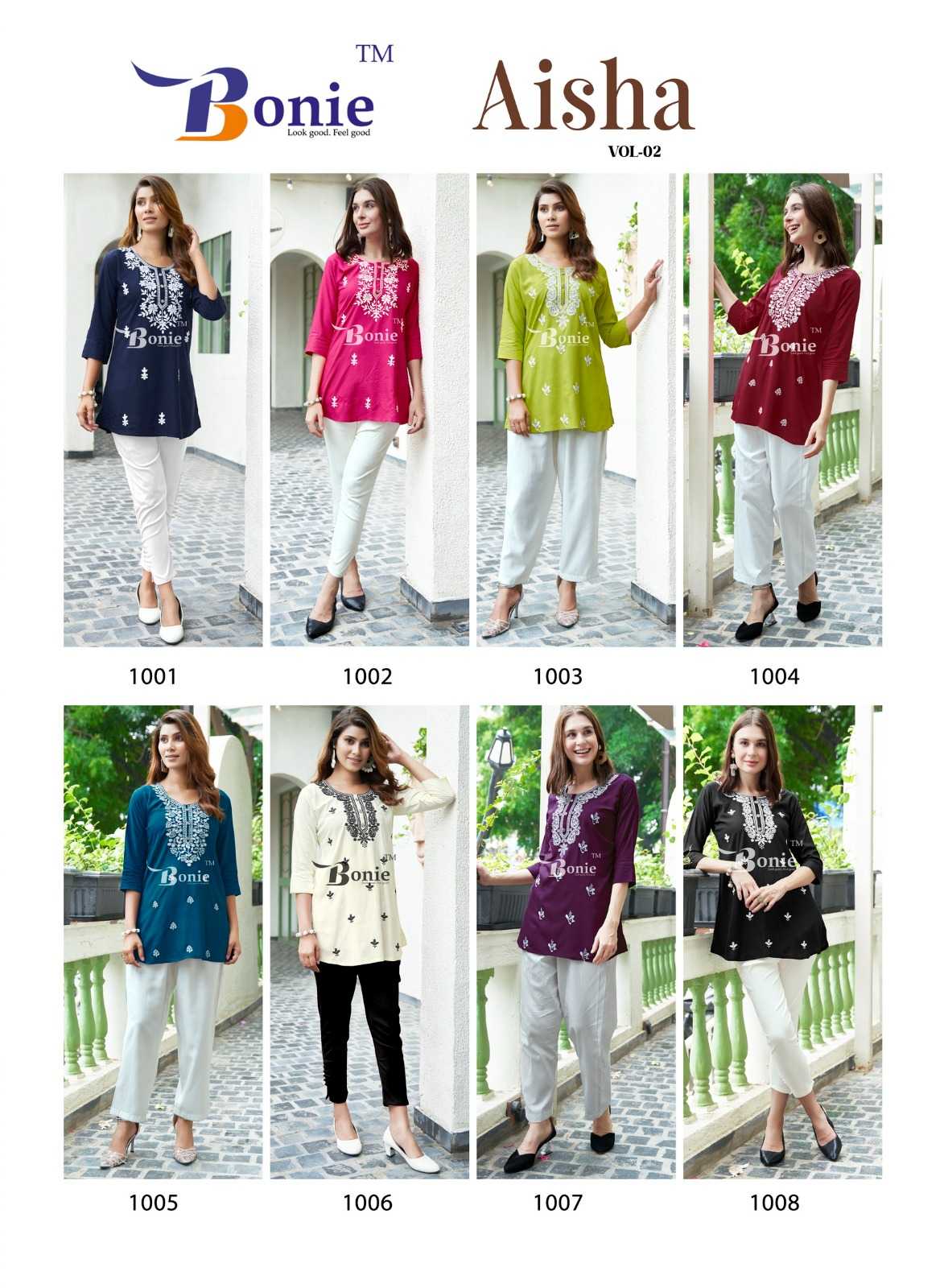 bonie aisha vol 2 amazing work readymade rayon short top wholesaler