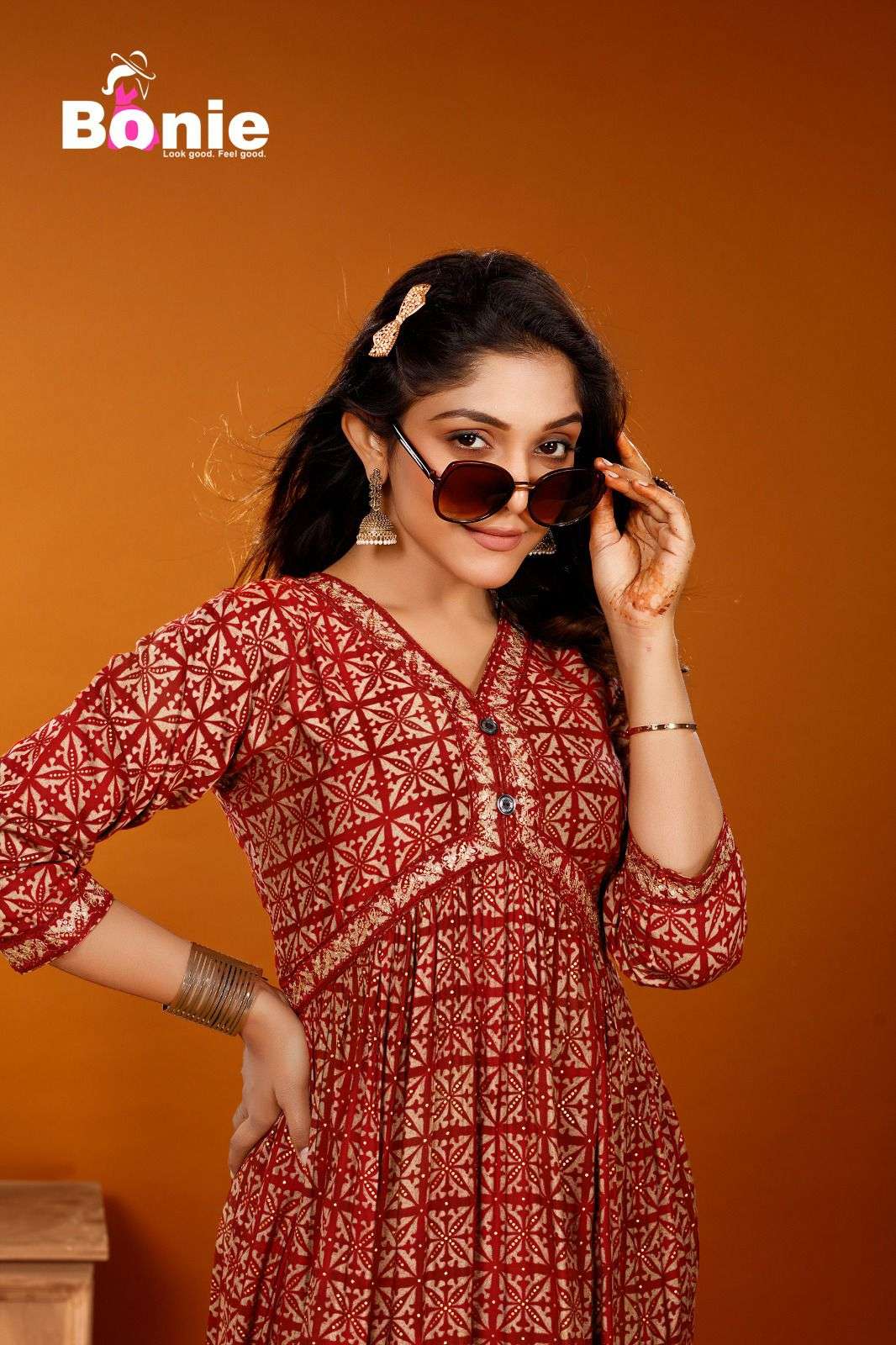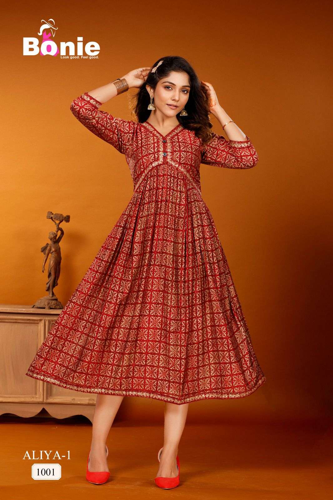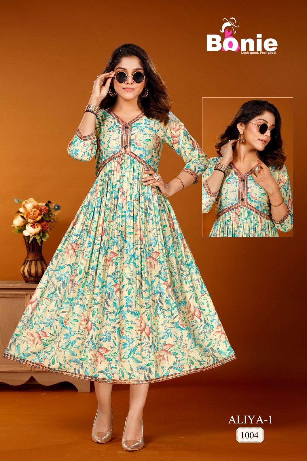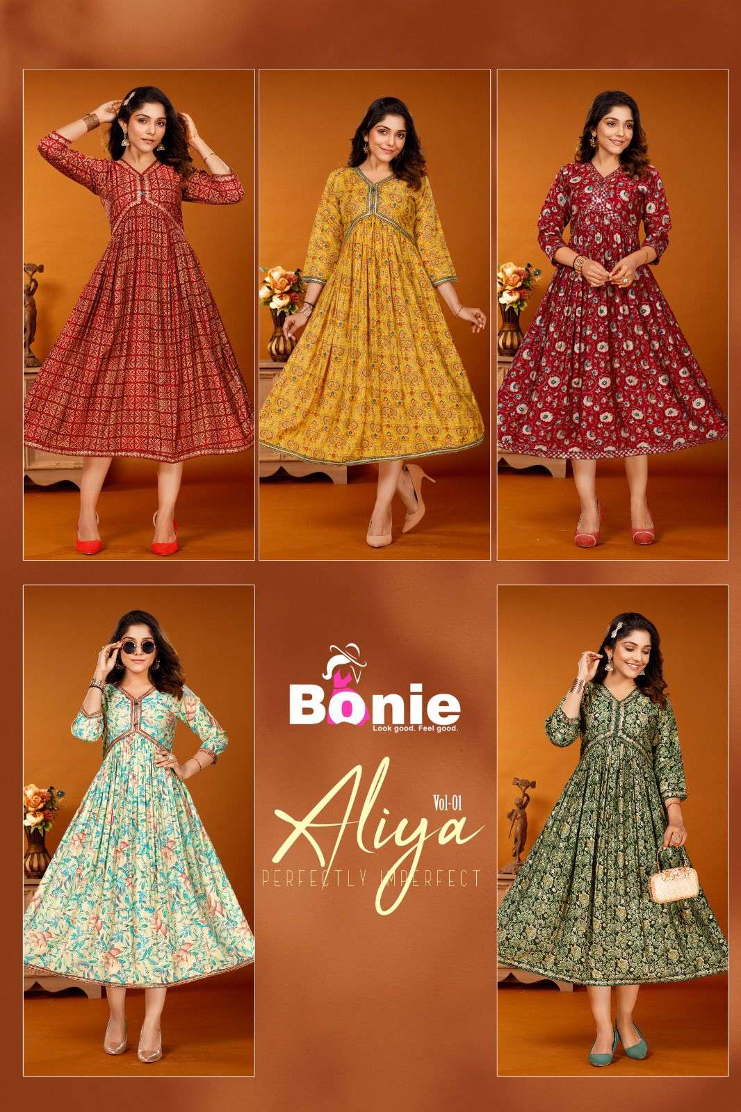 BONIE ALIYA CHANDERI PROSIUM PRINTED KURTI CATALOG WHOLESALER BEST RATE