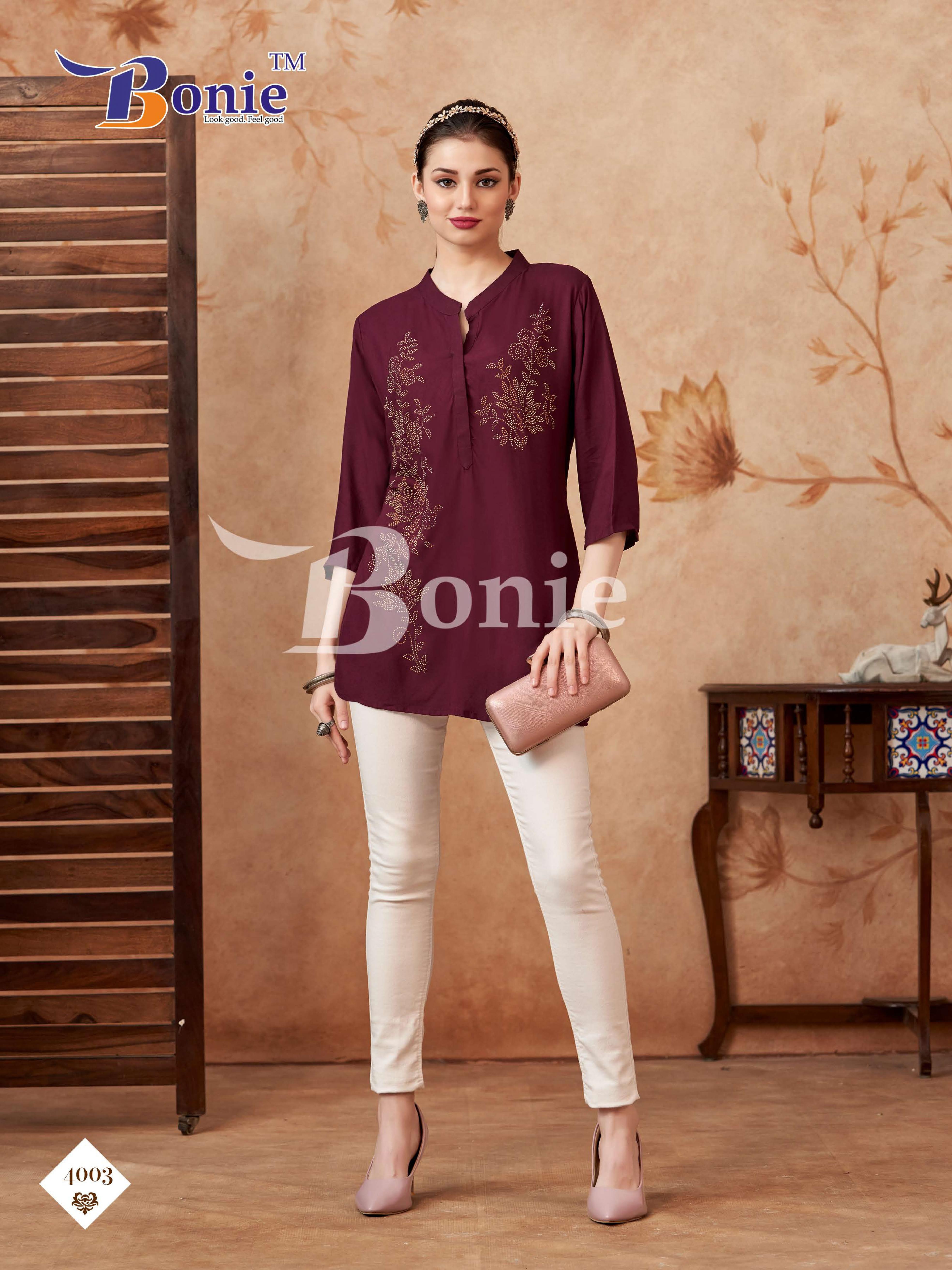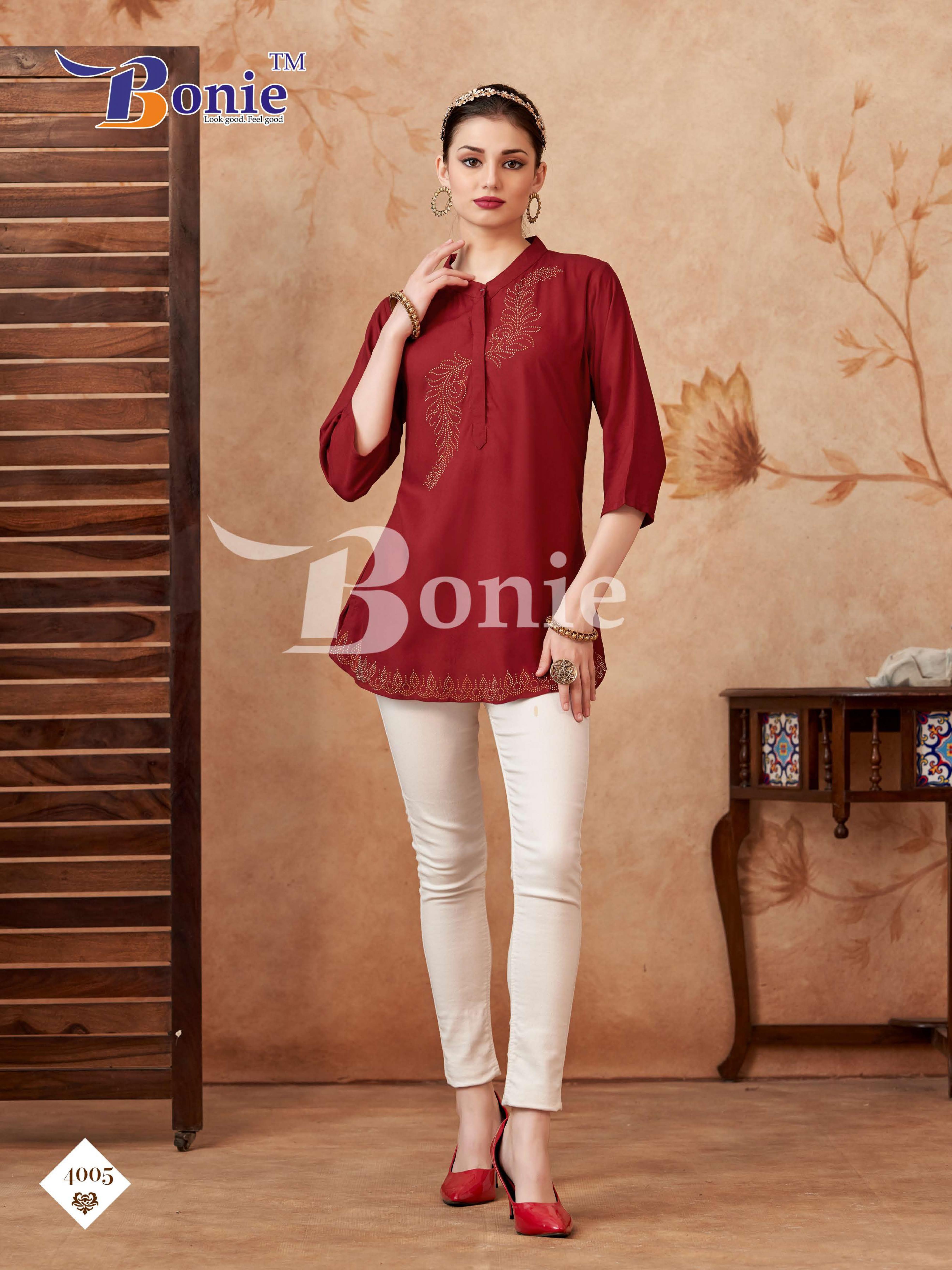 bonie berkha vol 4 amazing rayon fully stitch short top for girls