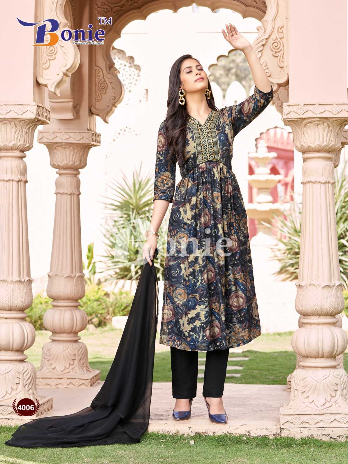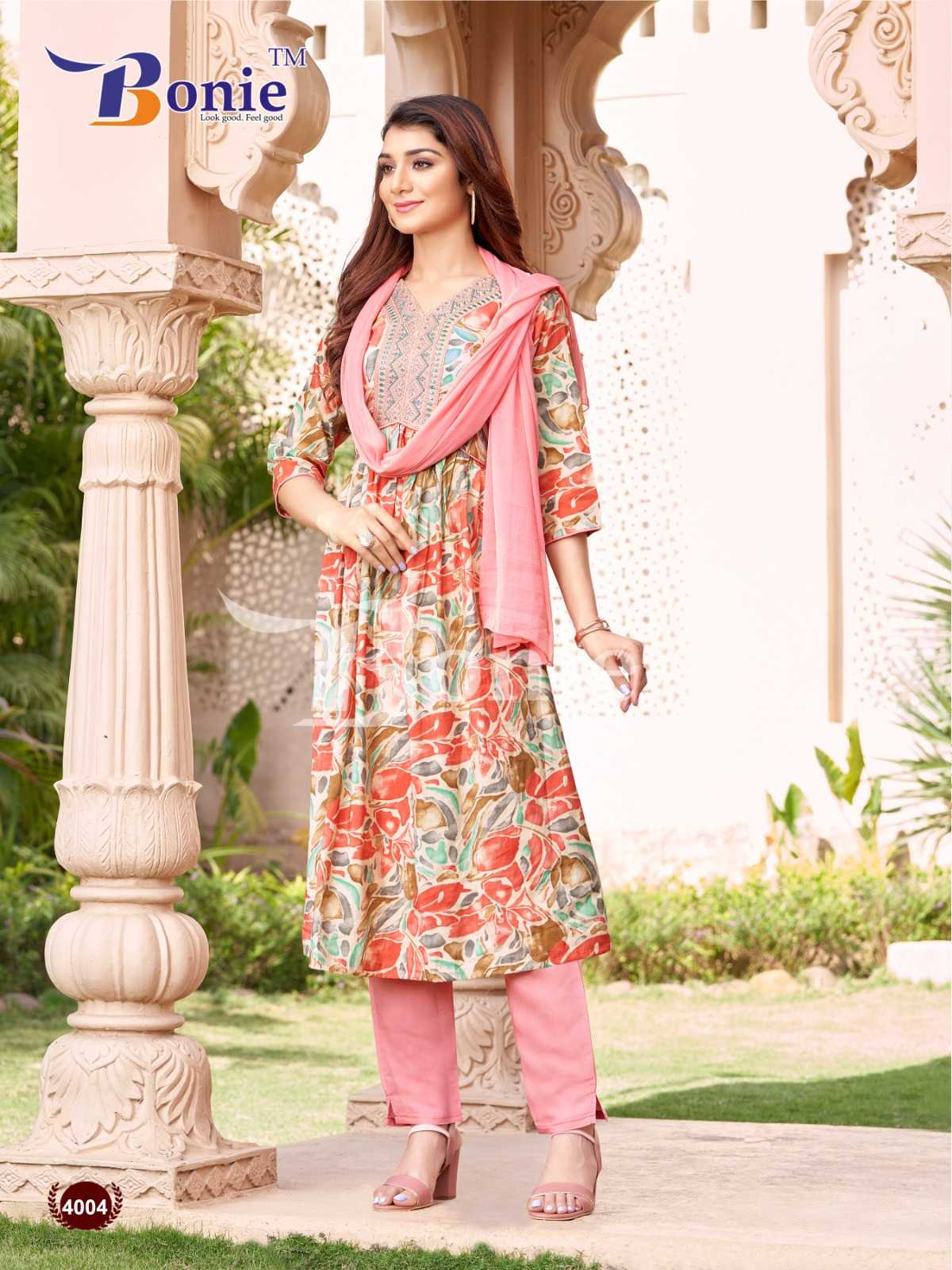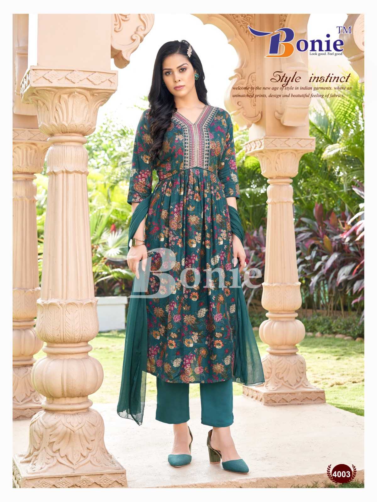 bonie kiara vol 4 readymade beautiful chanderi kurti pant dupatta