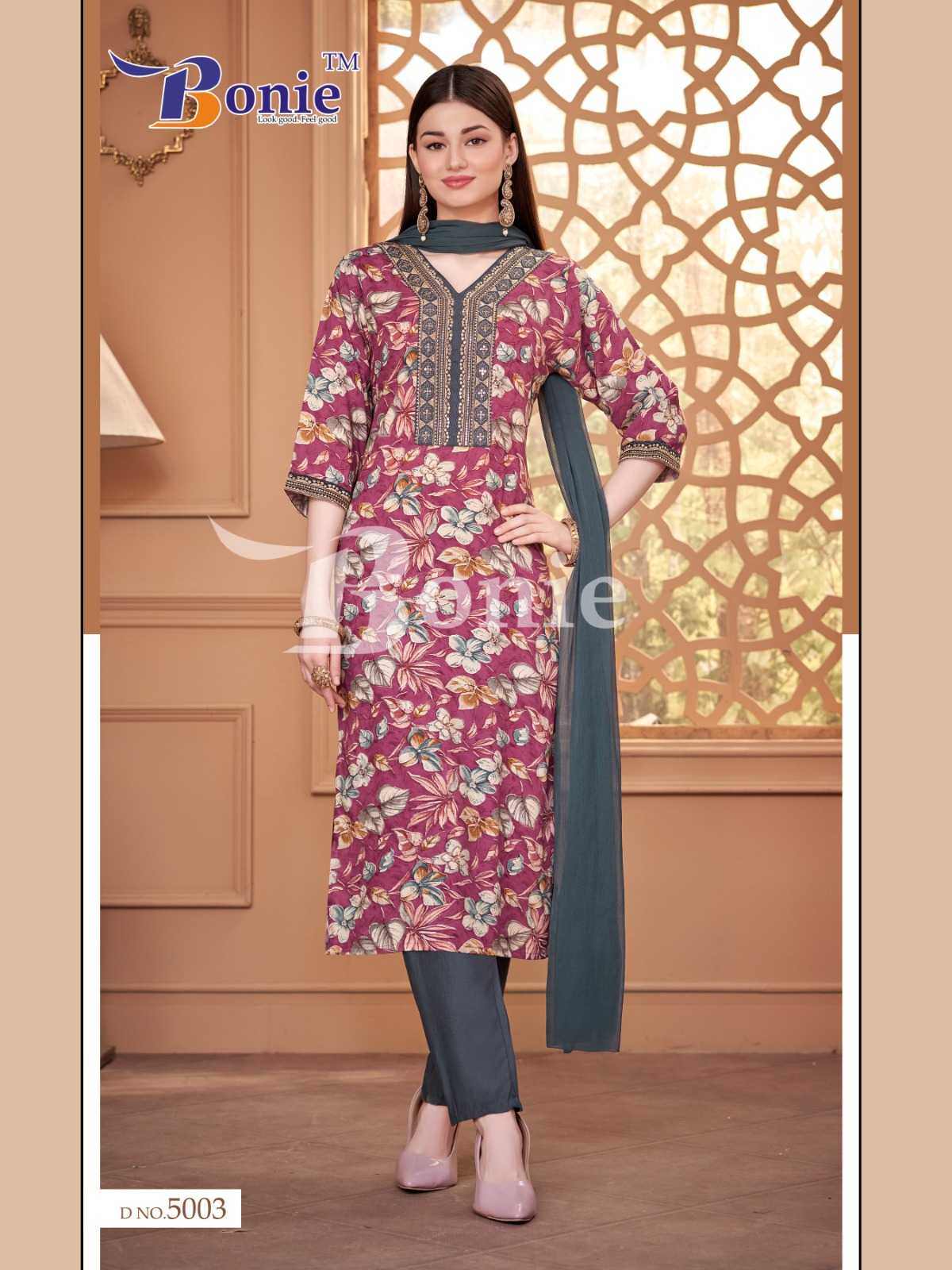 bonie kiara vol 5 launch rayon prints full stitch classy look salwar kameez