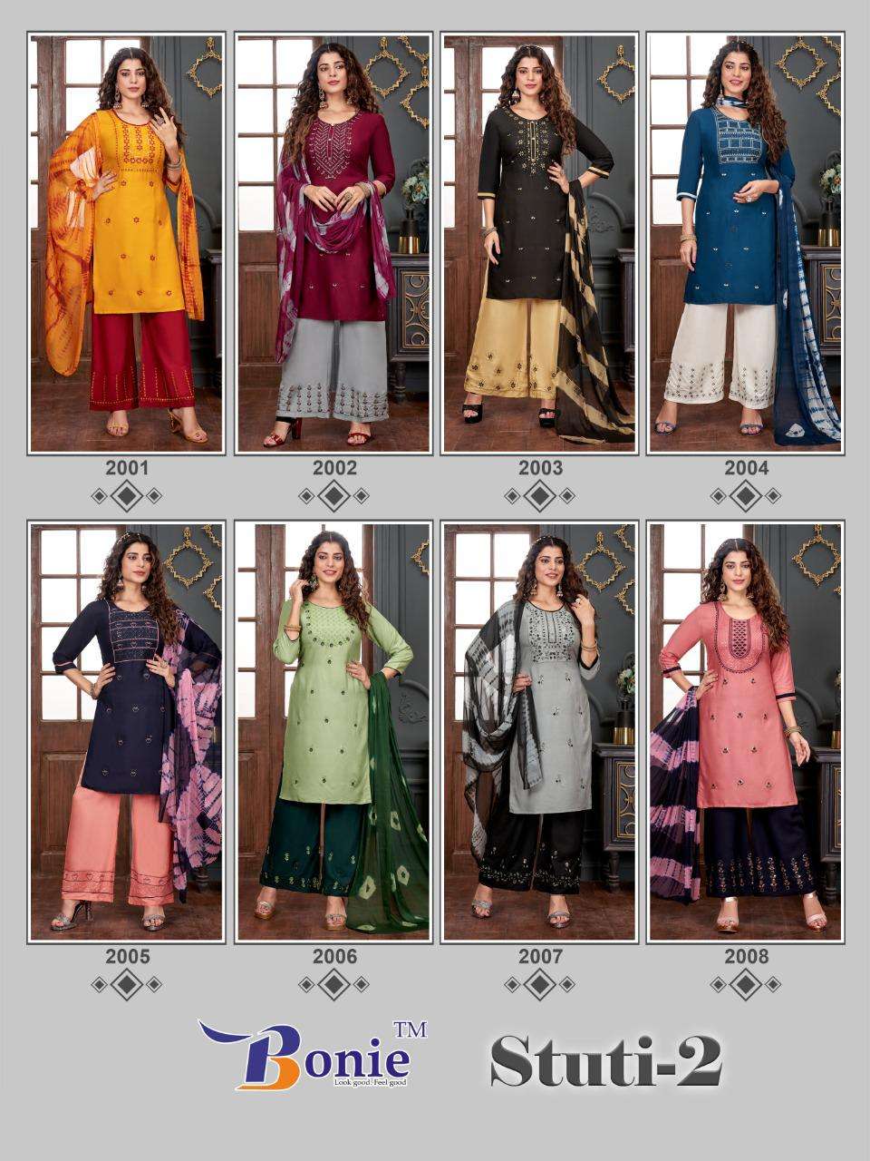BONIE STUTI- 2 RAYON 14 KG READYMADE SUIT CATALOG WHOLESALER BEST RATE