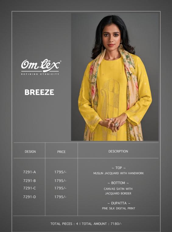 Om Tex Presents Latest Collection Launched on 25-03-2025. Presenting Beautiful collection of 4 PCS with Unstitched .