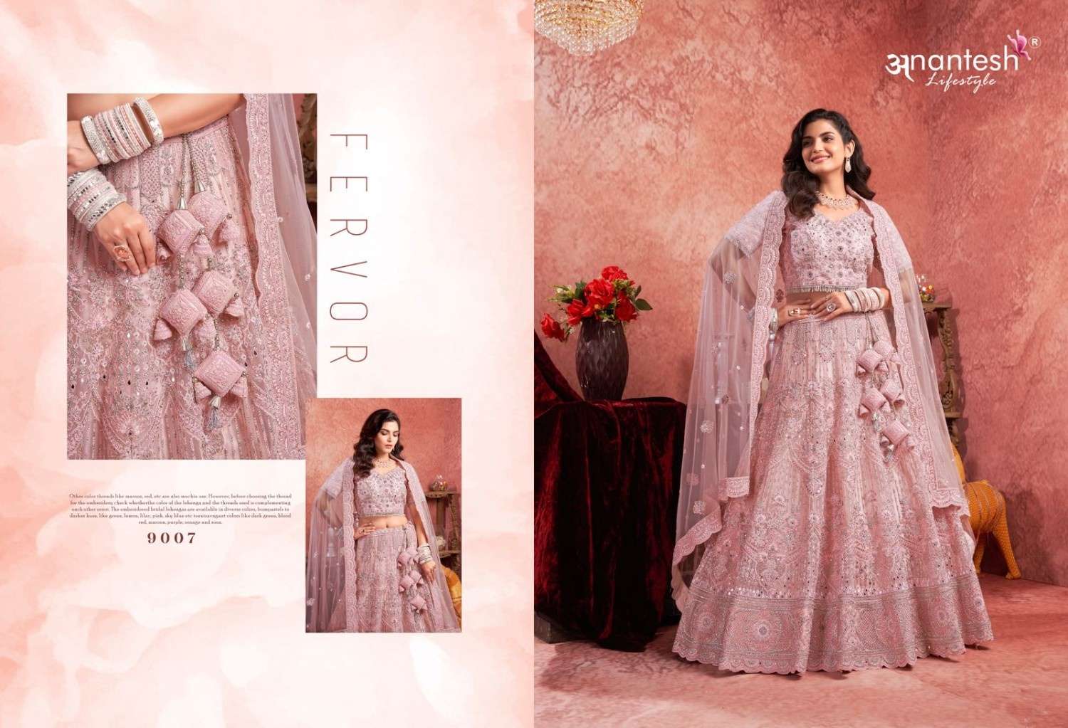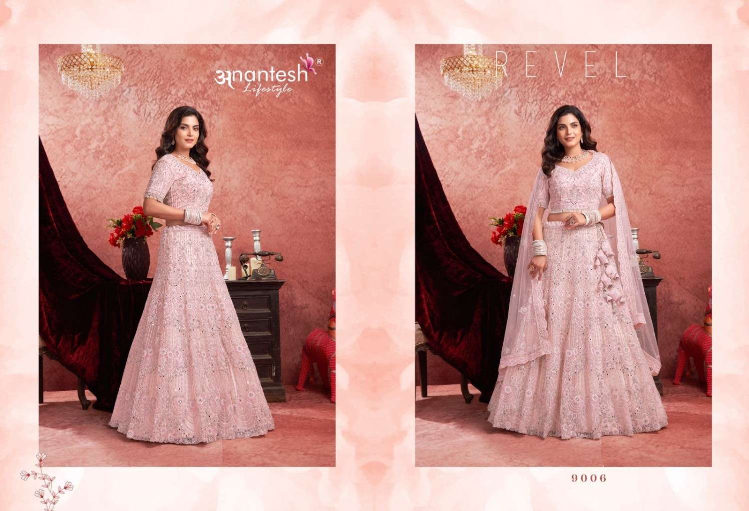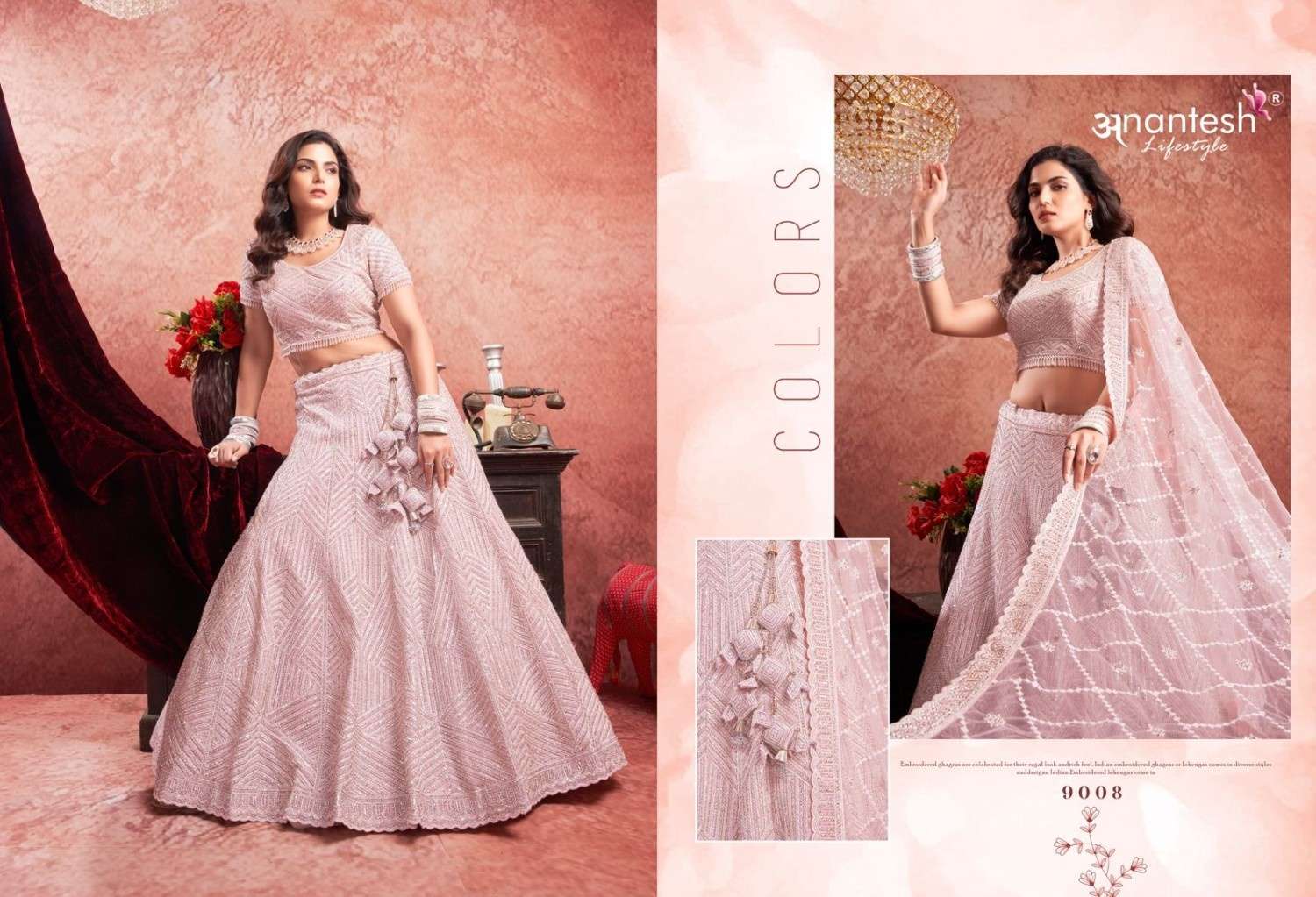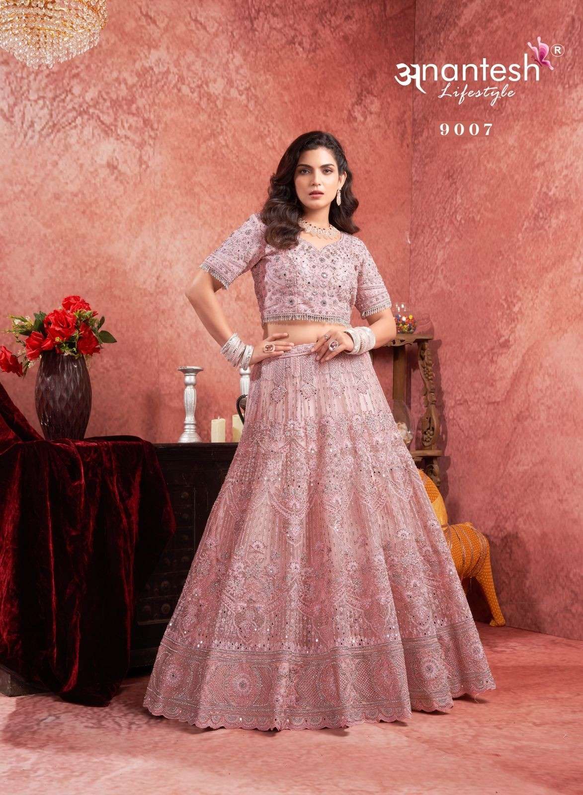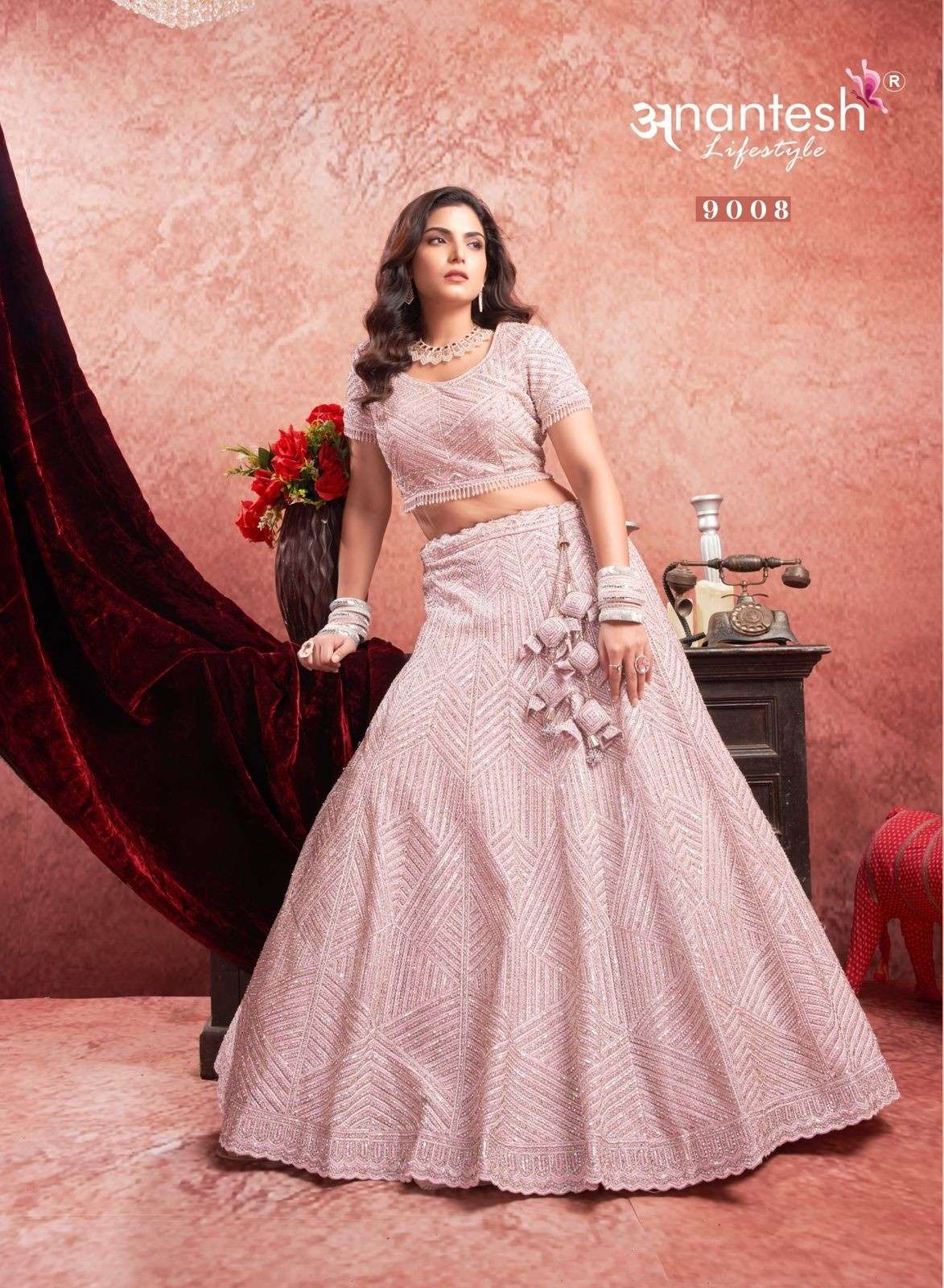 ANANTESH ®️ LIFESTYLE BRIDAL COUTURE VOL 4 SERIES 9017 TO 9020 LEHENGAS WITH BIG METER PLUS FLAIR,HEAVY LATKANS, ZARKANS,MIRROR HAND WORK,BRIDAL CONCEPT FOR ENGAGEMENT,WEDDING, SIDERS,PRE-WEDDING PARTIES RATE CARD AND FABRIC DETAILS ATTACHED GST 12% TAX EXTRA READY MADE AND UNSTICH BOTH OPTION IS AVAILABLE READ DETAILS CAREFULLY AND ORDER ACCORDING TO YOUR REQUIREMENT FULL CATLOGUE AVAILABLE |