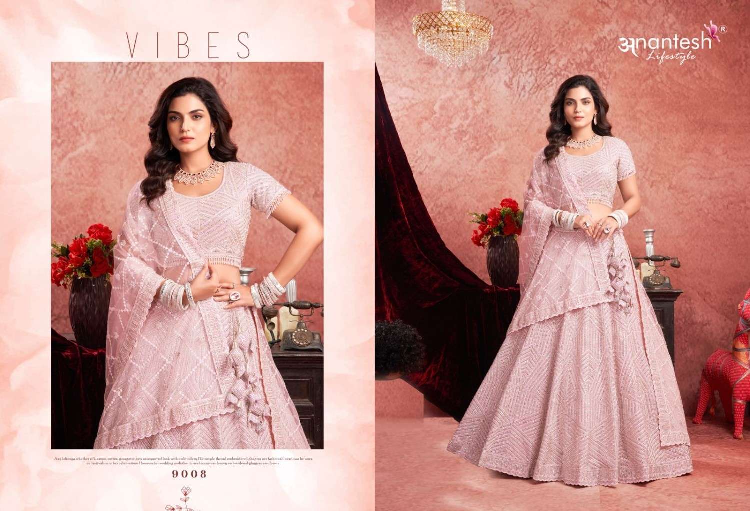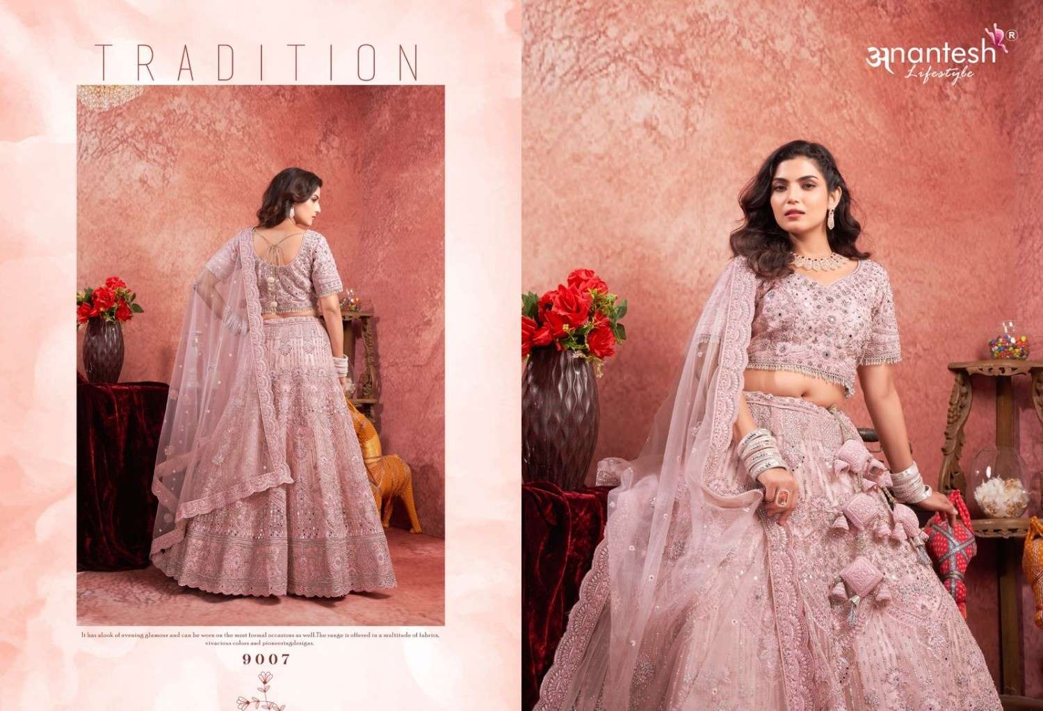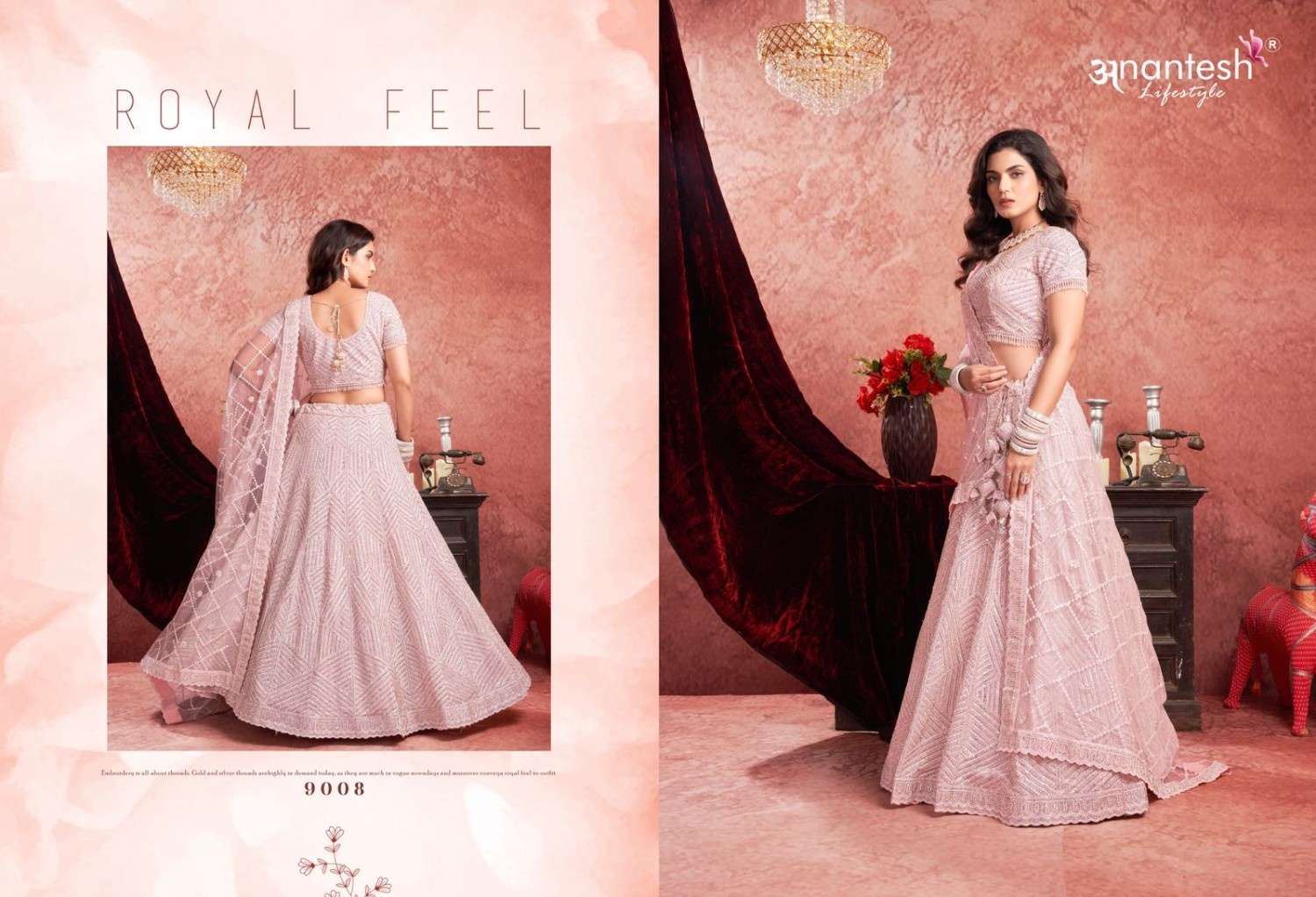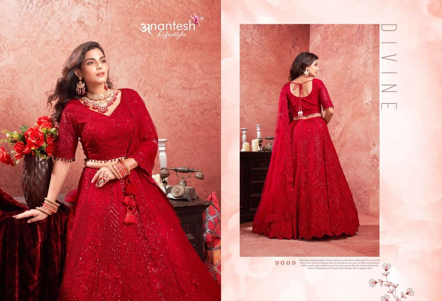 ANANTESH ®️ LIFESTYLE BRIDAL COUTURE VOL 4 SERIES 9017 TO 9020 LEHENGAS WITH BIG METER PLUS FLAIR,HEAVY LATKANS, ZARKANS,MIRROR HAND WORK,BRIDAL CONCEPT FOR ENGAGEMENT,WEDDING, SIDERS,PRE-WEDDING PARTIES RATE CARD AND FABRIC DETAILS ATTACHED GST 12% TAX EXTRA READY MADE AND UNSTICH BOTH OPTION IS AVAILABLE READ DETAILS CAREFULLY AND ORDER ACCORDING TO YOUR REQUIREMENT FULL CATLOGUE AVAILABLE |