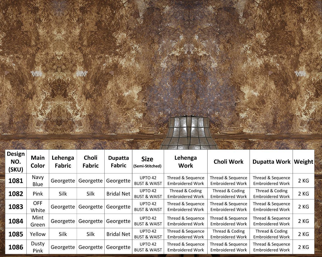 CATALOG NAME - Bridesmaid Vol-2 SERIES – 1081 TO 1086 💐 ORIGINAL PRODUCT 💐 🛍 Designer Party Wear New Lehenga Choli Collection 🛍 RATE LIST Design No. 1081 • 3700/- Design No. 1082 • 3700/- Design No. 1083 • 3700/- Design No. 1084 • 3700/- Design No. 1085 • 3700/- Design No. 1086 • 3700/- GST 5% EXTRA |
