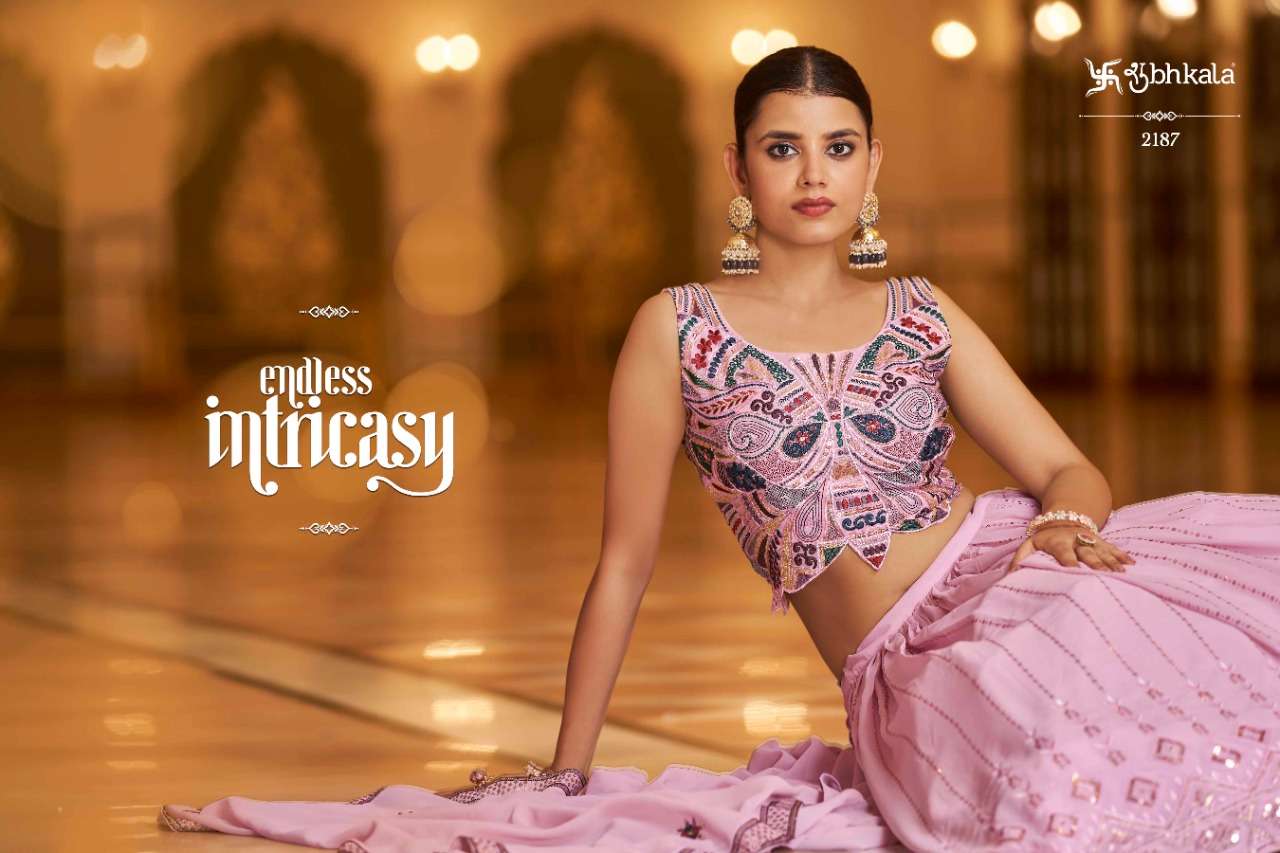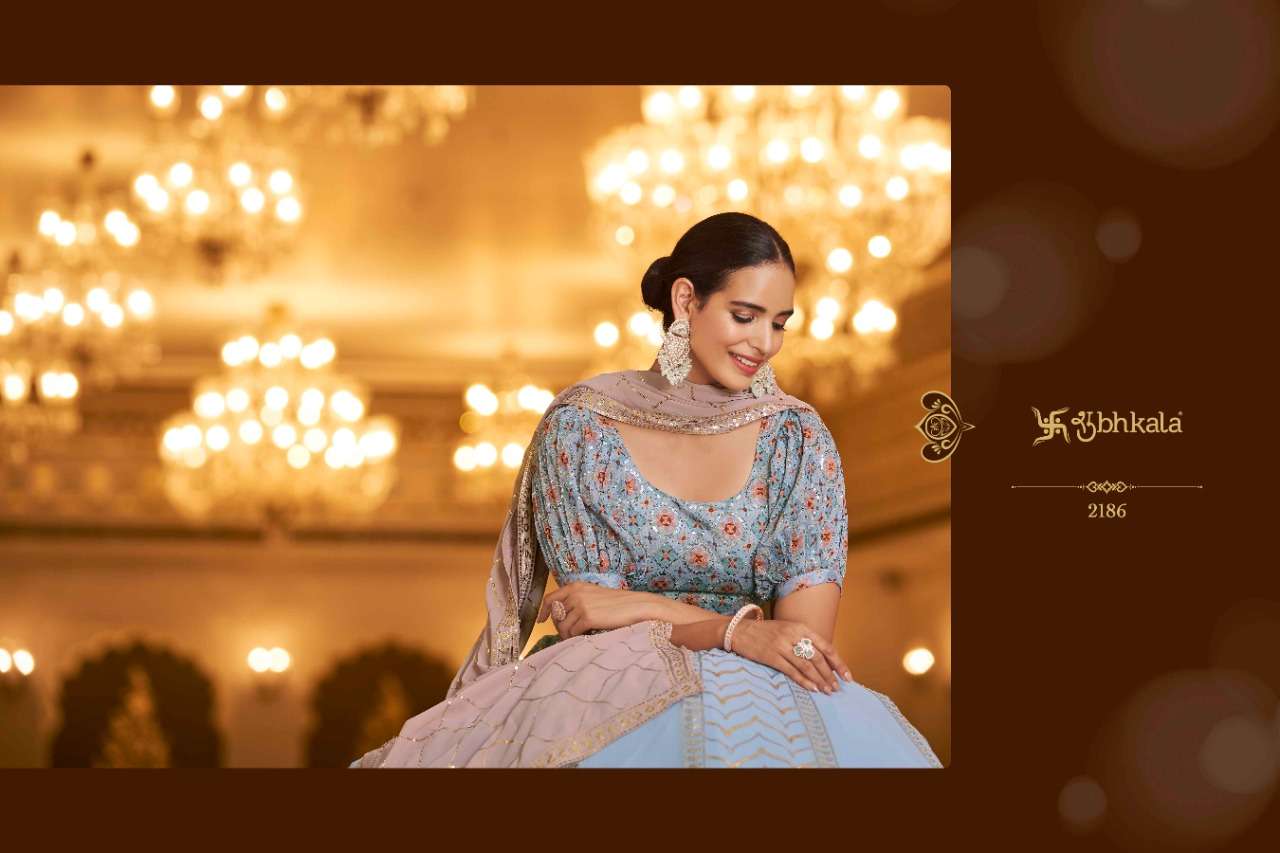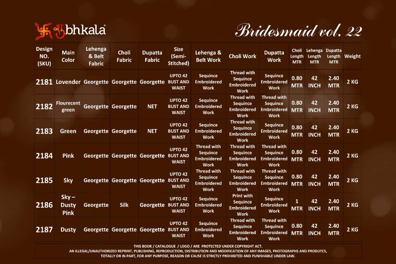 SHUBHKALA BRIDESMAID VOL. 22 New Exclusive Embroiered Semi Stitched Bridal Lehenga Choli Collection RATE LIST 2181: 3200/- Choli Length: 0.80 MTR. |