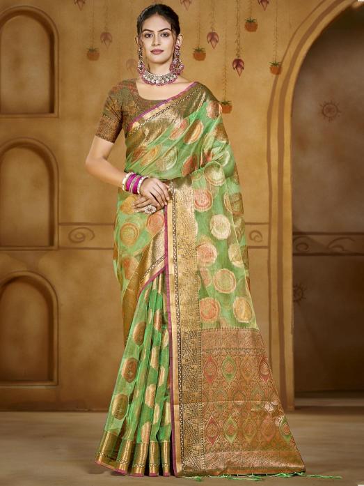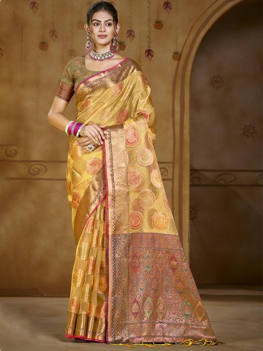 bunawat chandani 03 festival wear organza fabric with fancy lace work wholsale sarees