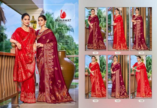 bunawat radhika pyari vol - 01 festival wear wedding wear silk fabric saree with siroski ston work fancy wholesale saree