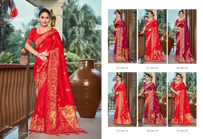 bunawat radhika pyari vol - 02 festival wear wedding wear silk fabric saree with siroski ston work fancy wholesale saree