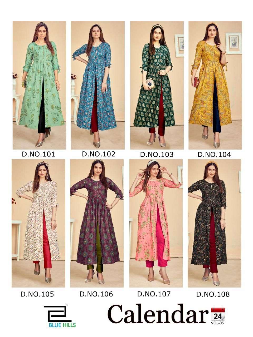 Calender Vol 5 Fancy Rayon Kurtis By Blue Hills