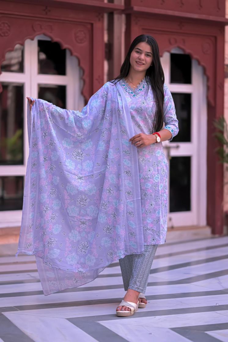 cambric work 3pc cotton readymade stylish combo set salwar kameez