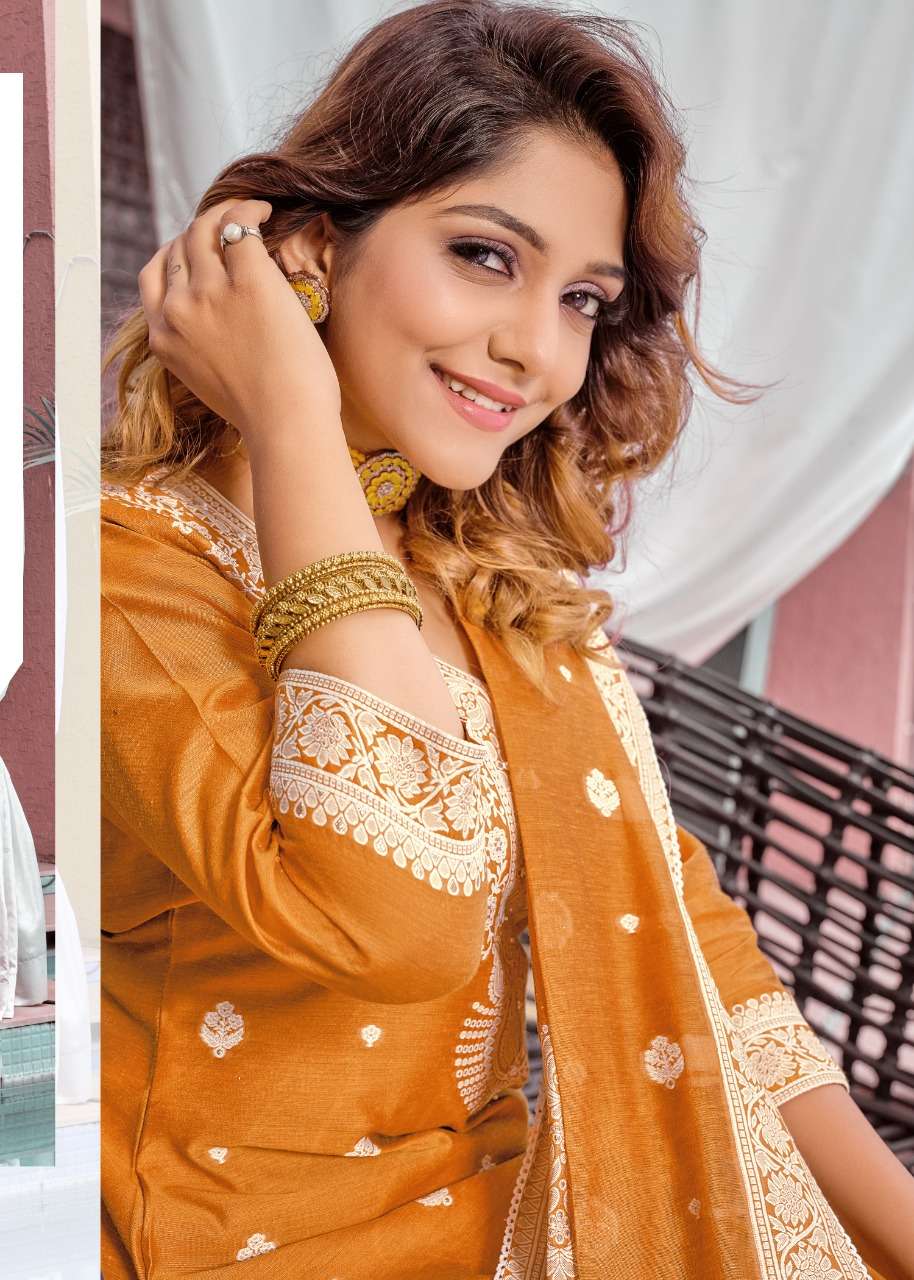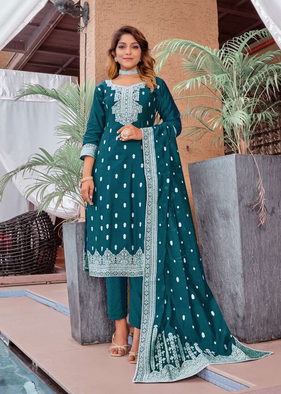 🎀 vitara fashion launches exclusive designer kurti pent with dupatta🎀 pent - pure viscos fabrics dupta -viscos chanderi with weaving banarasi jqrd work size-m (38)L(40),xl(42),xxl(44)xxxl(46) ☣Designs- 4 🔴Rate:- 999/- |