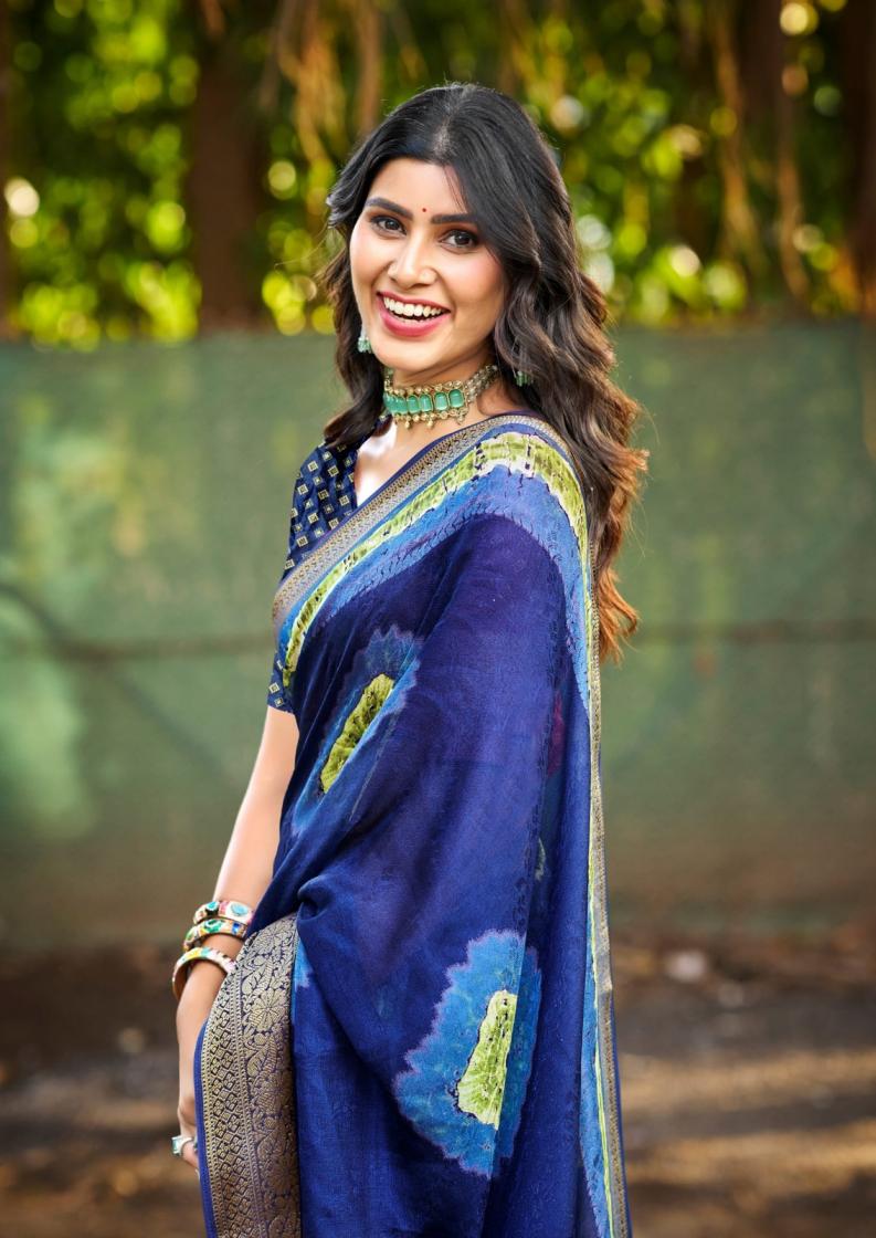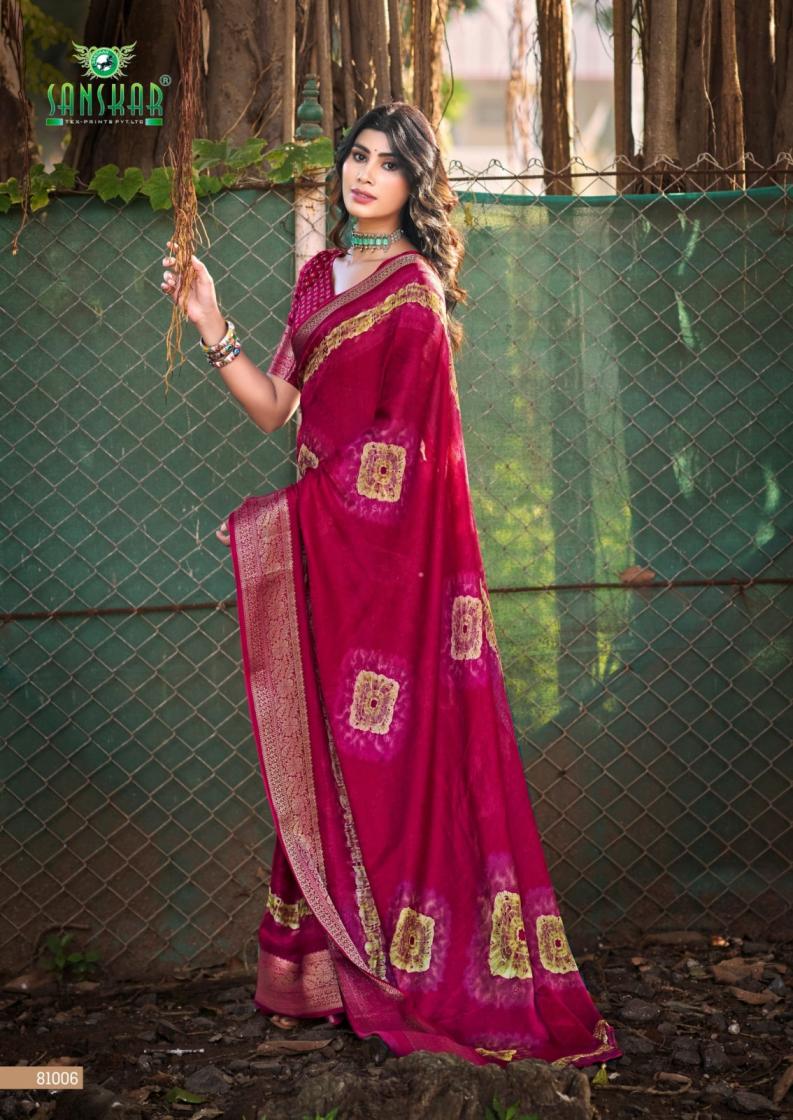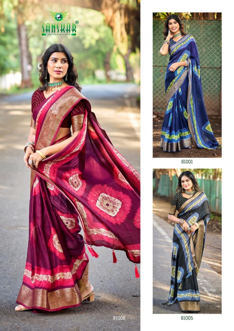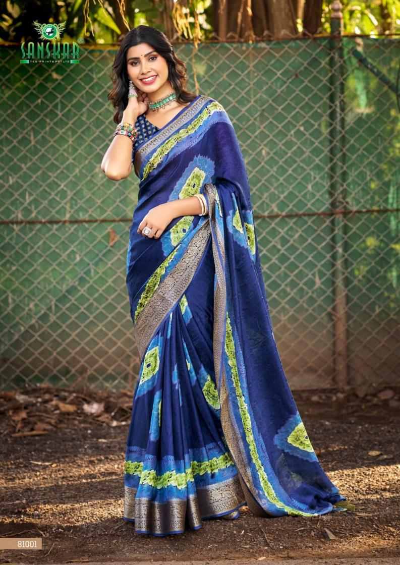 Sanskar Tex Prints Pvt Ltd CATLOUGE- CARBAAN Fabric- Pure MASSMALO Fancy Print with Beving🪡 border & blouse Qty- 8dis RATE - 770₹ _Special New addition pure MASSMELO Catalogue!!_ |