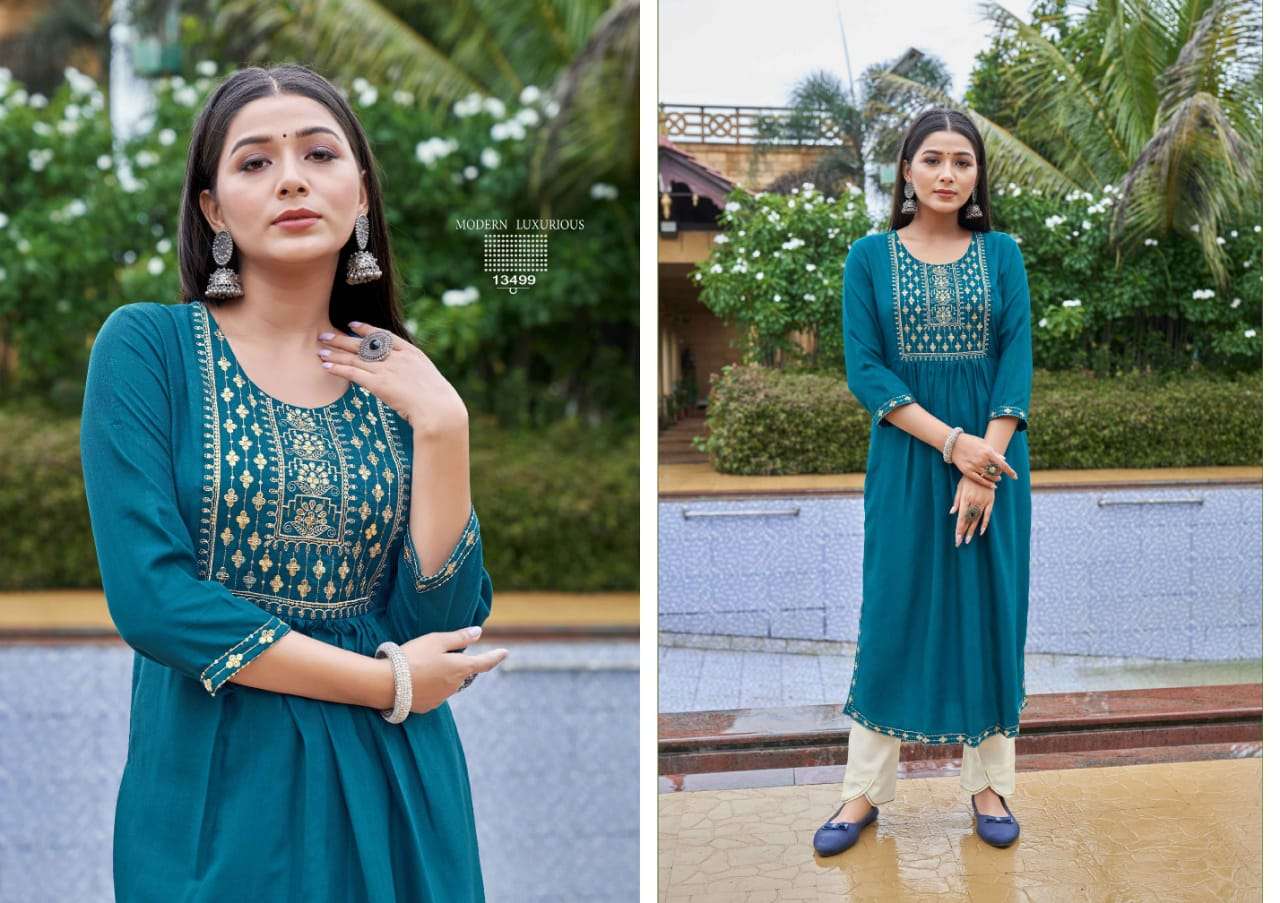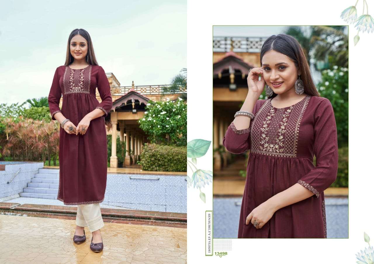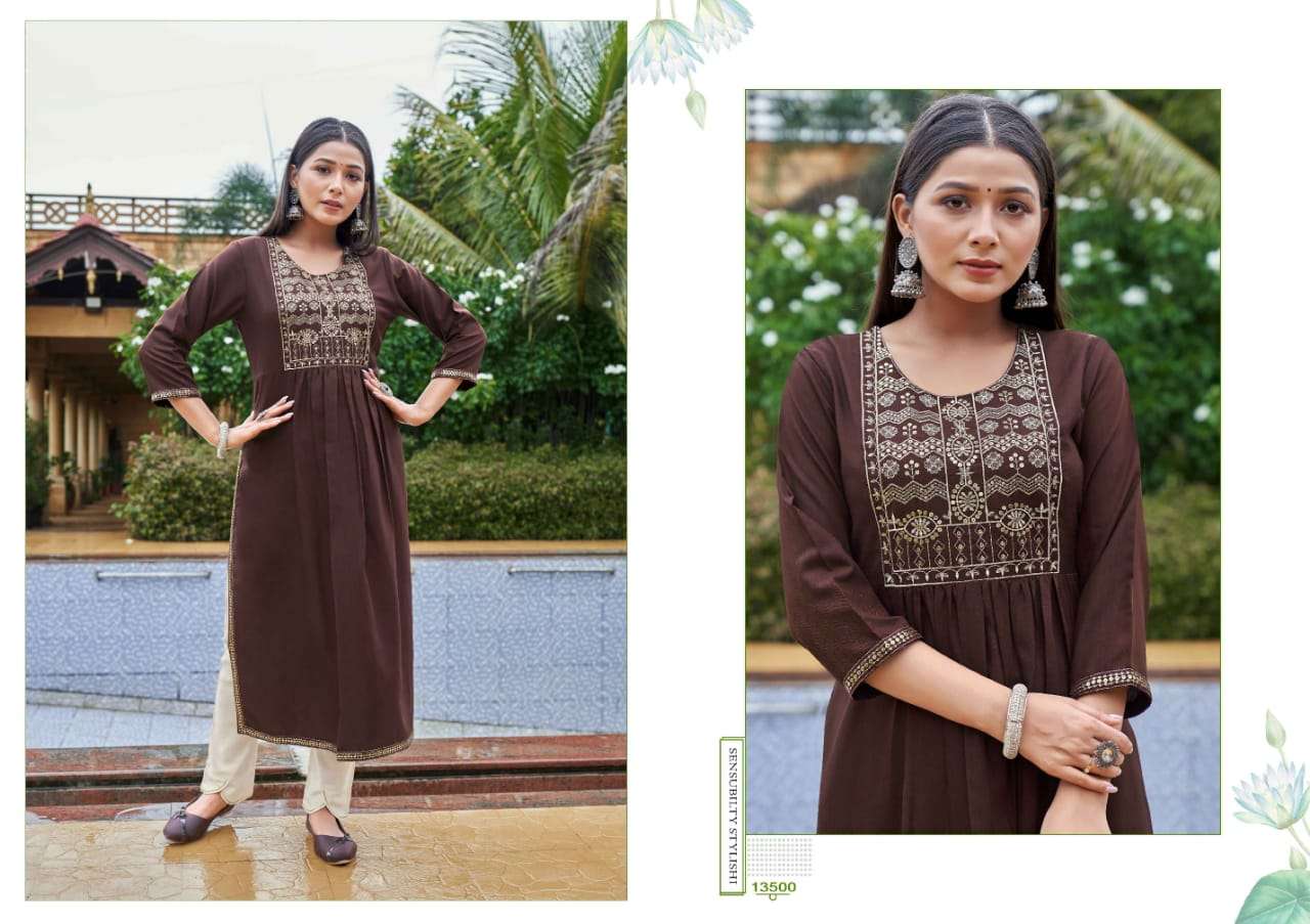 carbon by kalaroop rayon silk nyra cut fancy kurtis