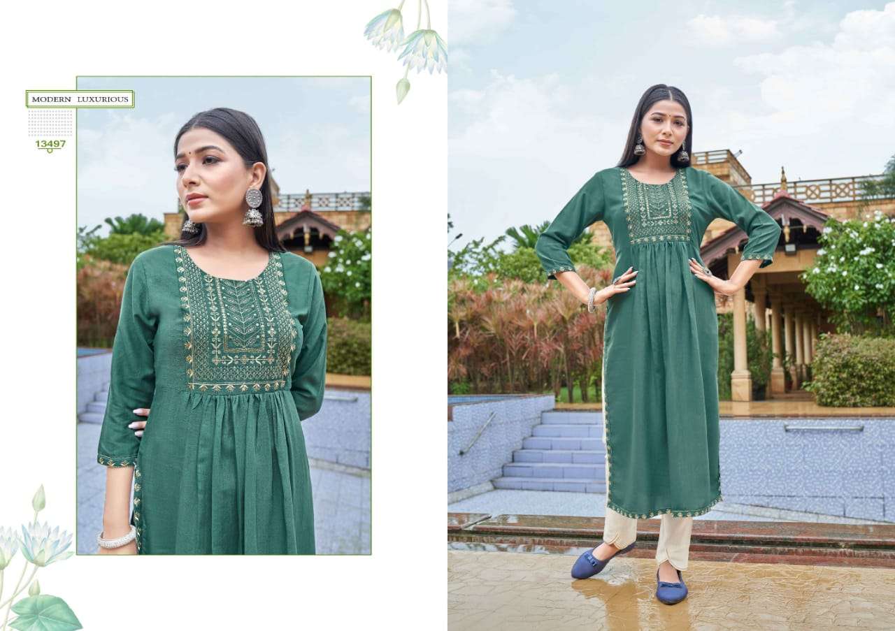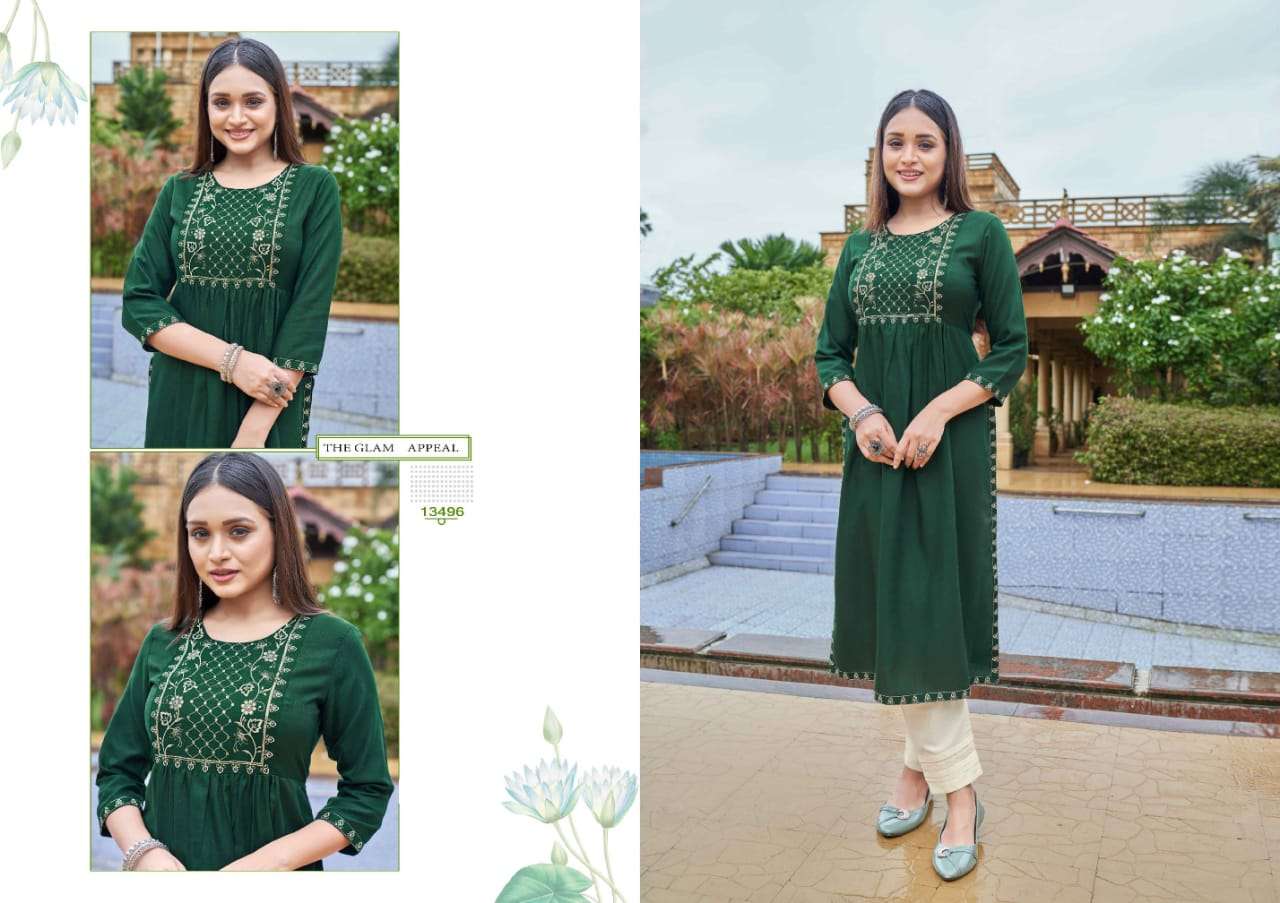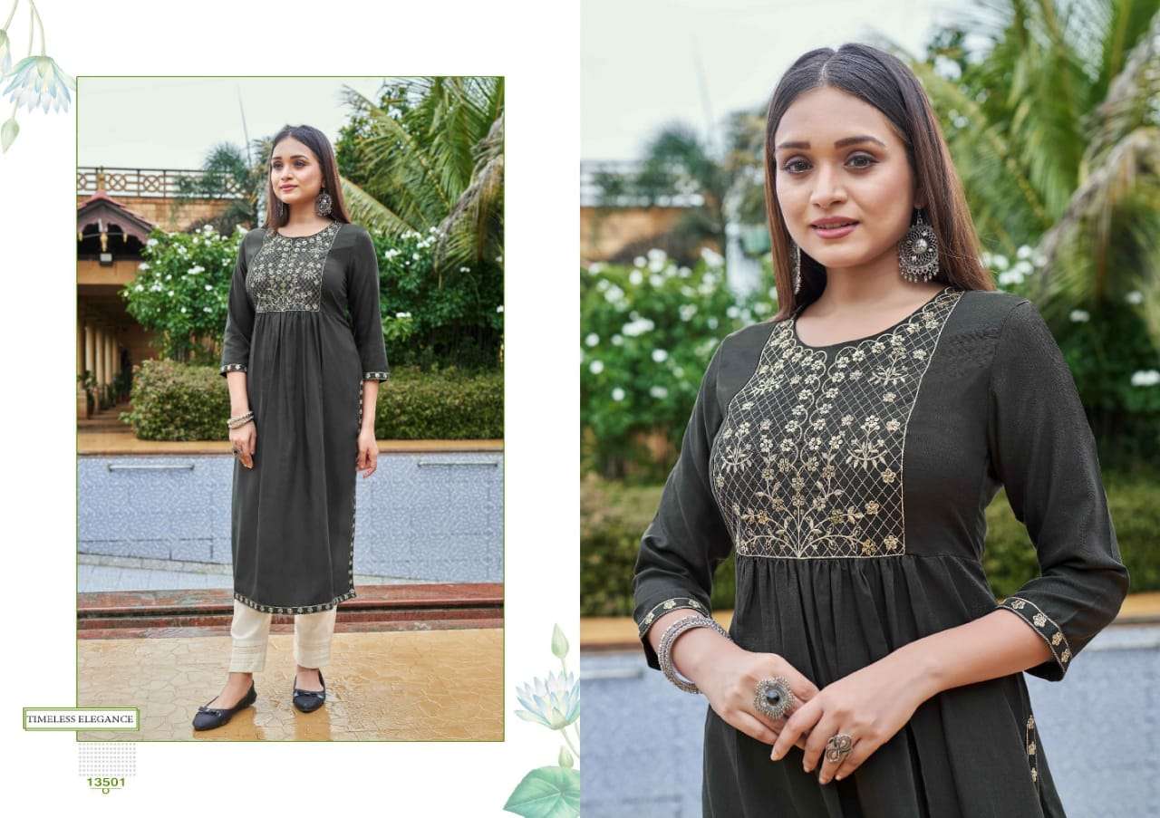 carbon by kalaroop rayon silk nyra cut fancy kurtis