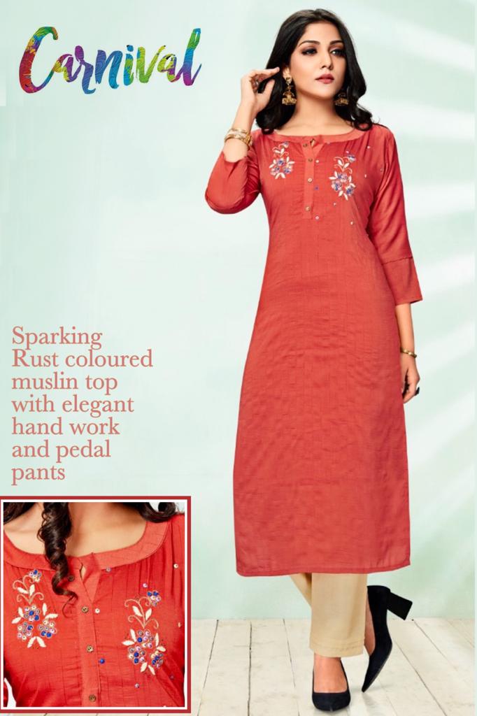 Carnival By Channel 9 Elegant Look Muslin Kurti With Pant Exporter In Surat