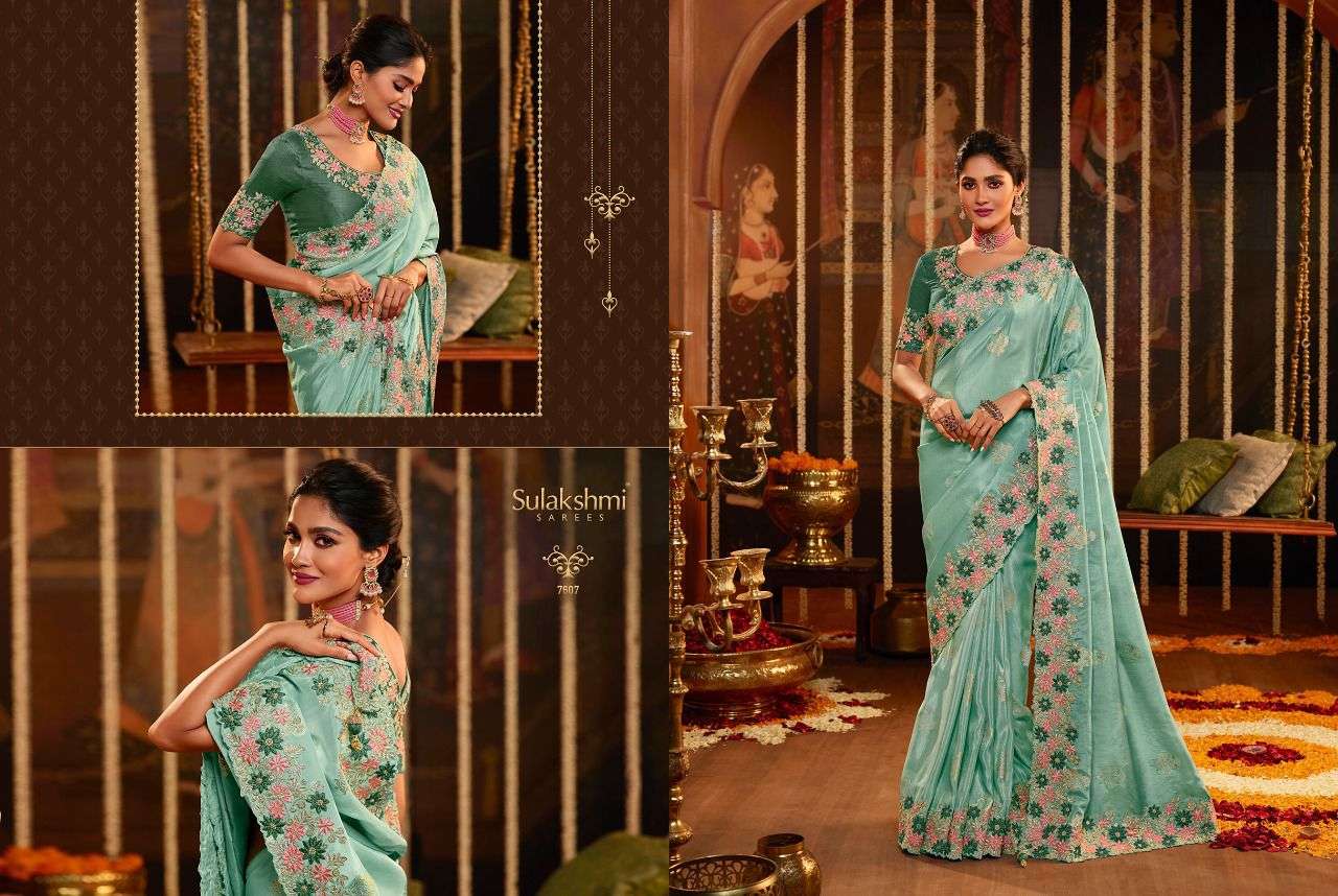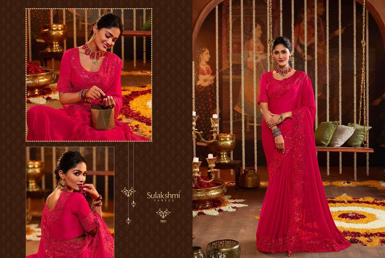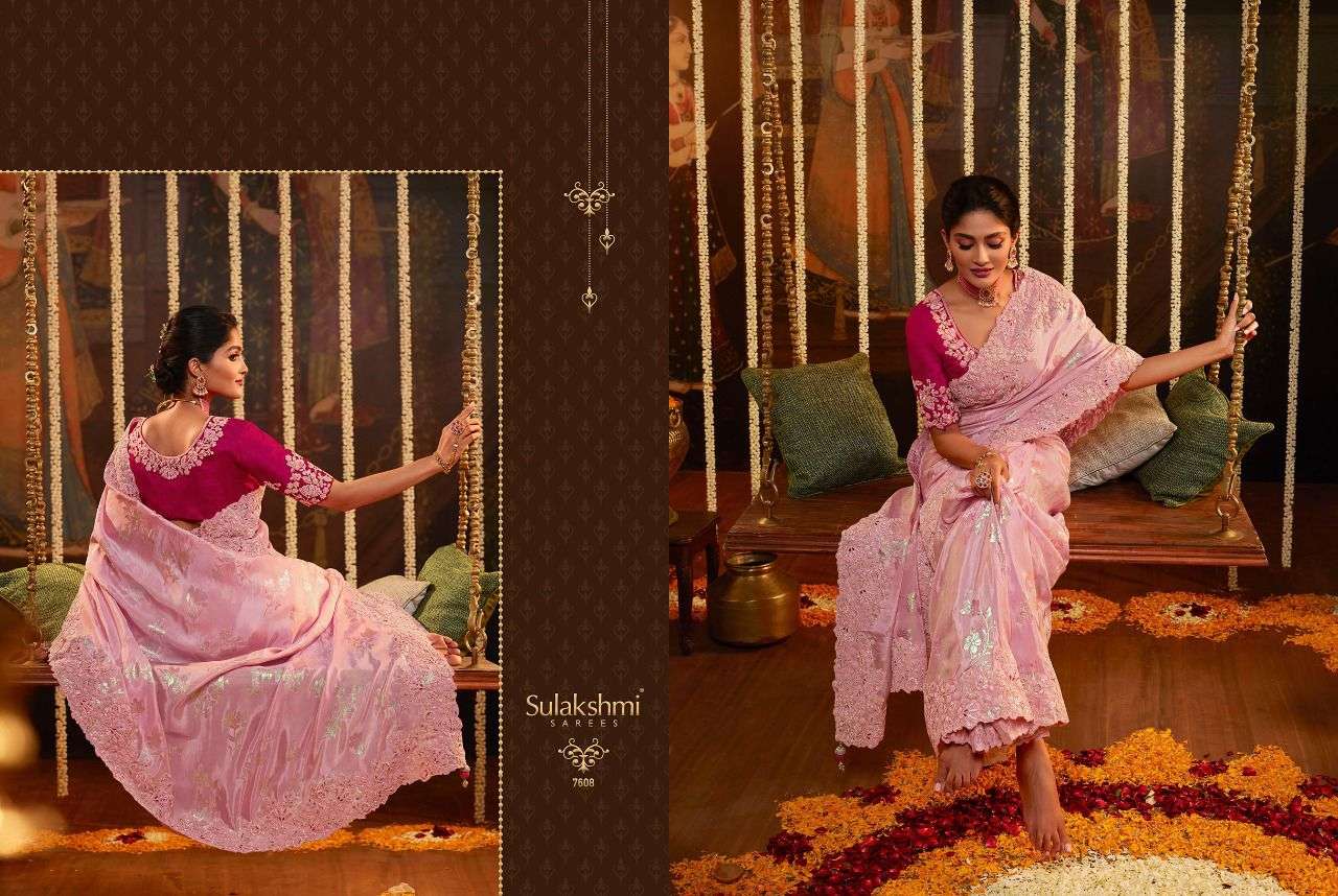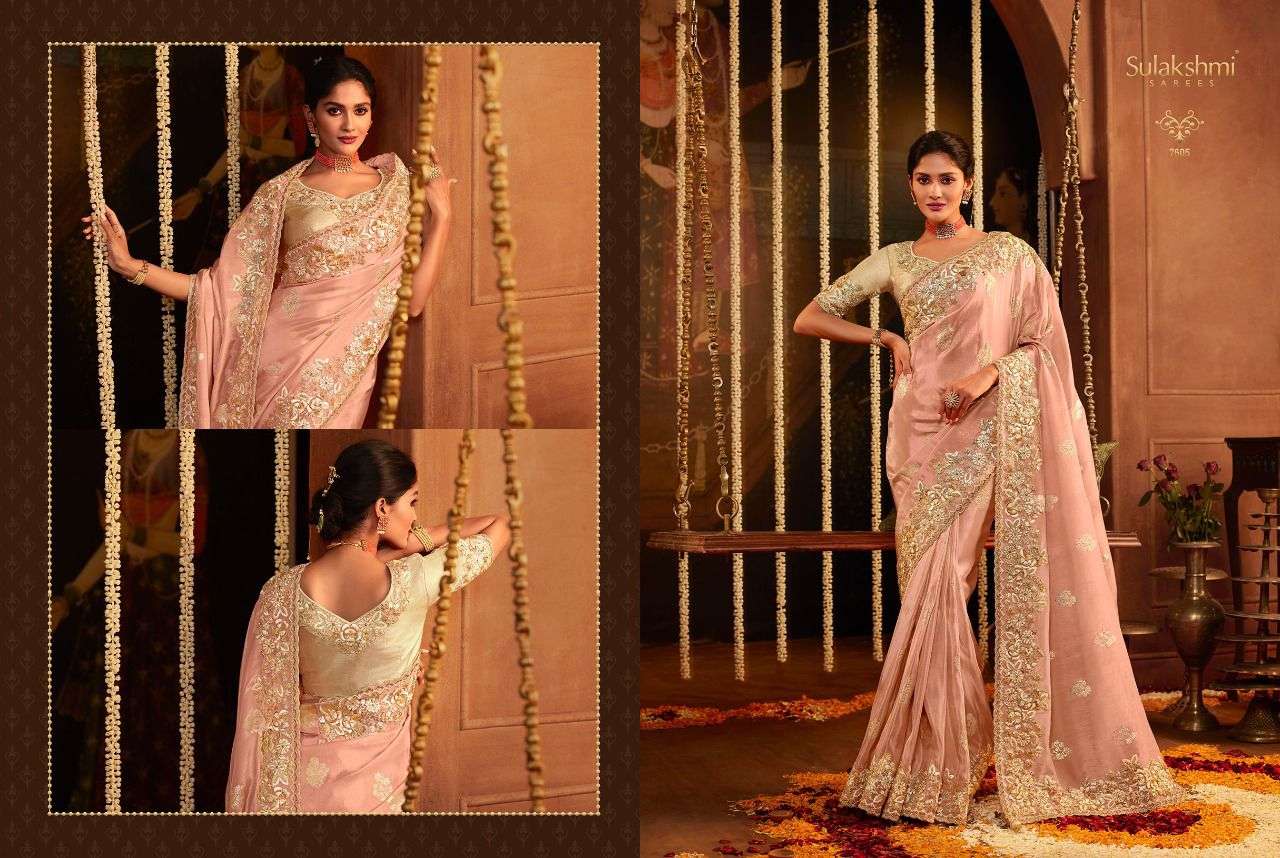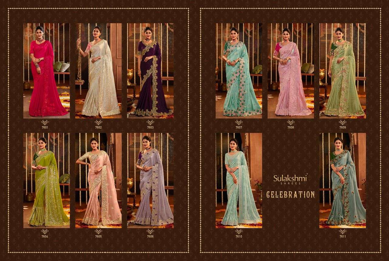 celebration by sulakshmi saree 7601-7611 series dola silk rich embroidery wedding fancy saree
