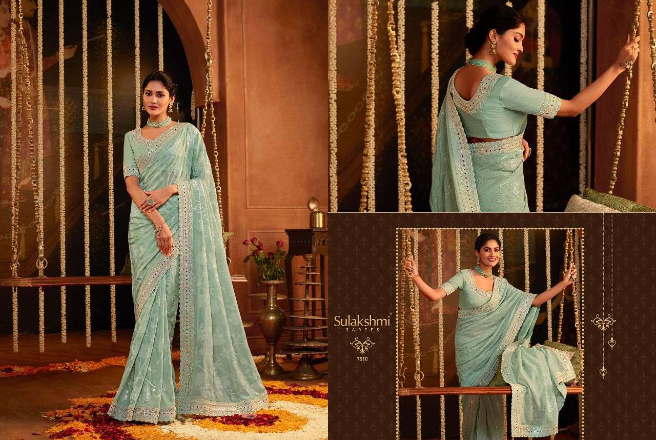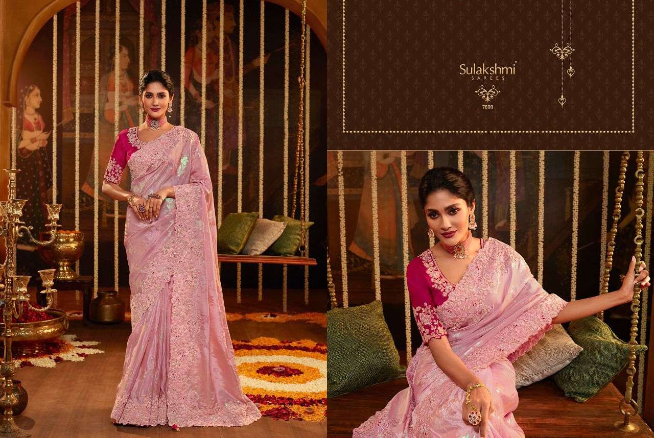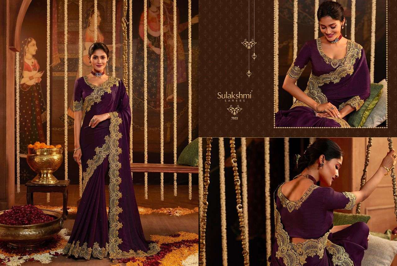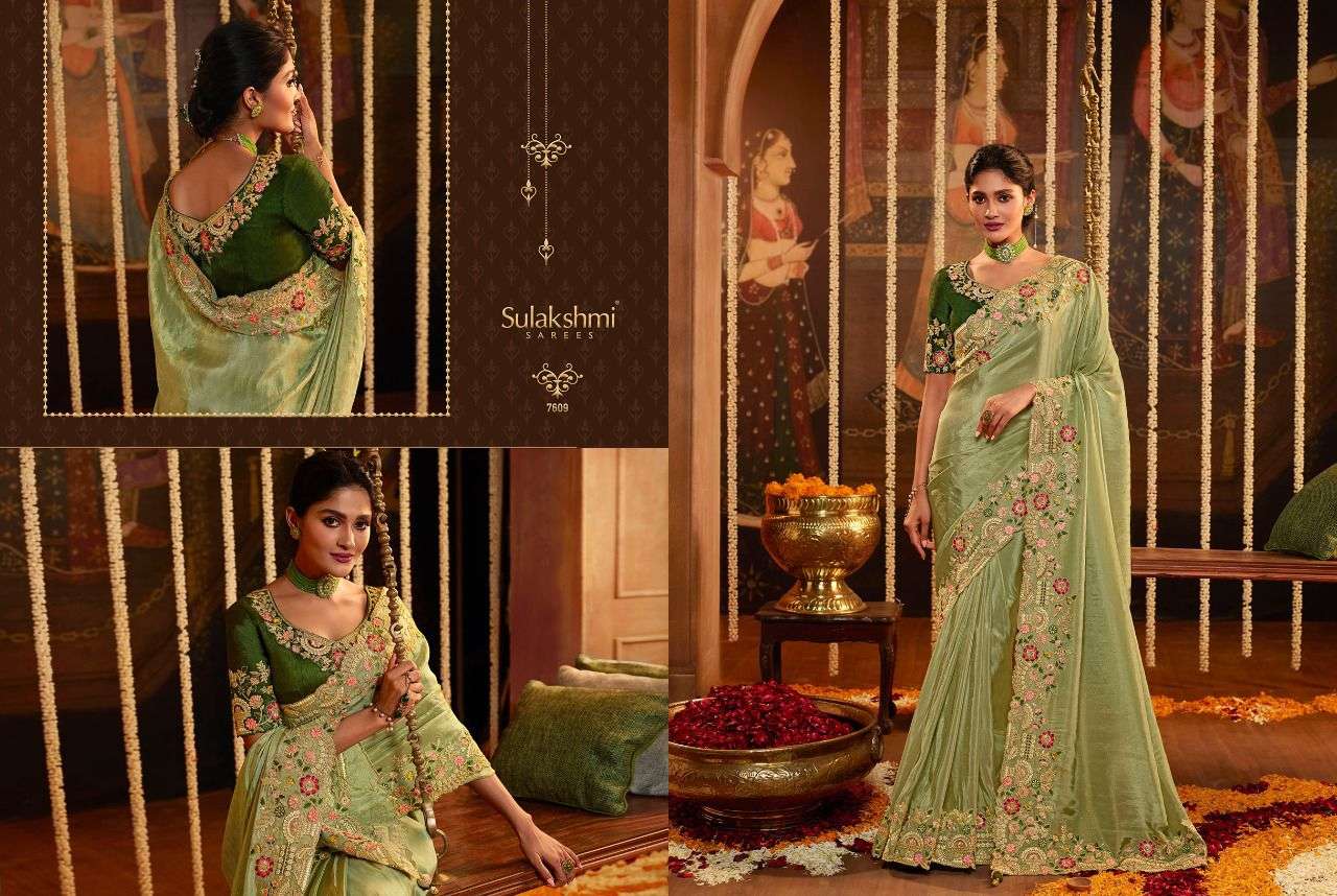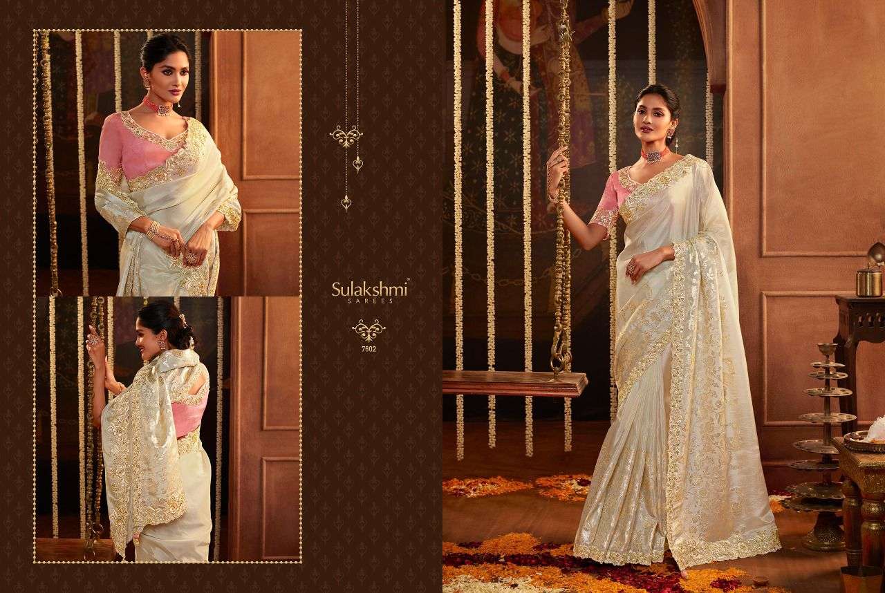 celebration by sulakshmi saree 7601-7611 series dola silk rich embroidery wedding fancy saree