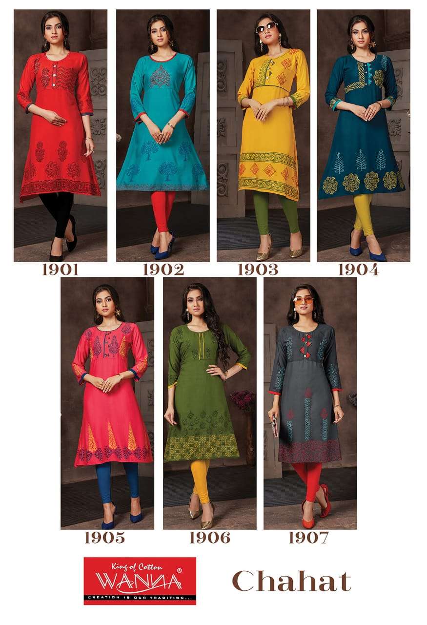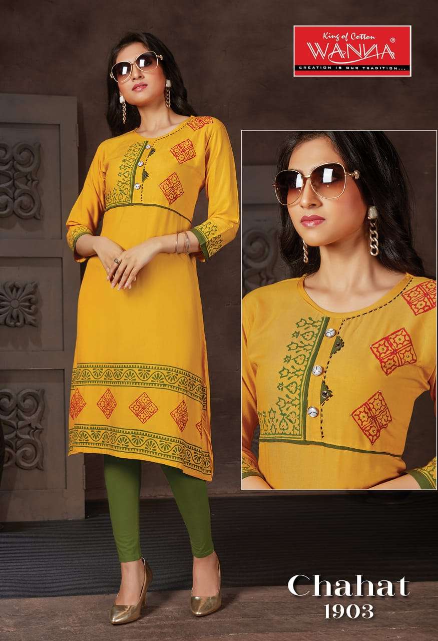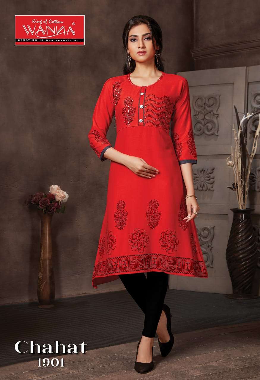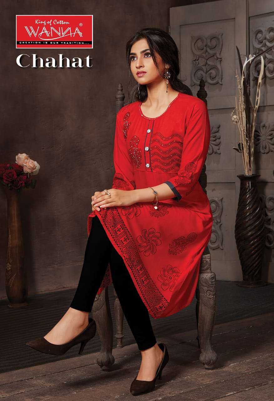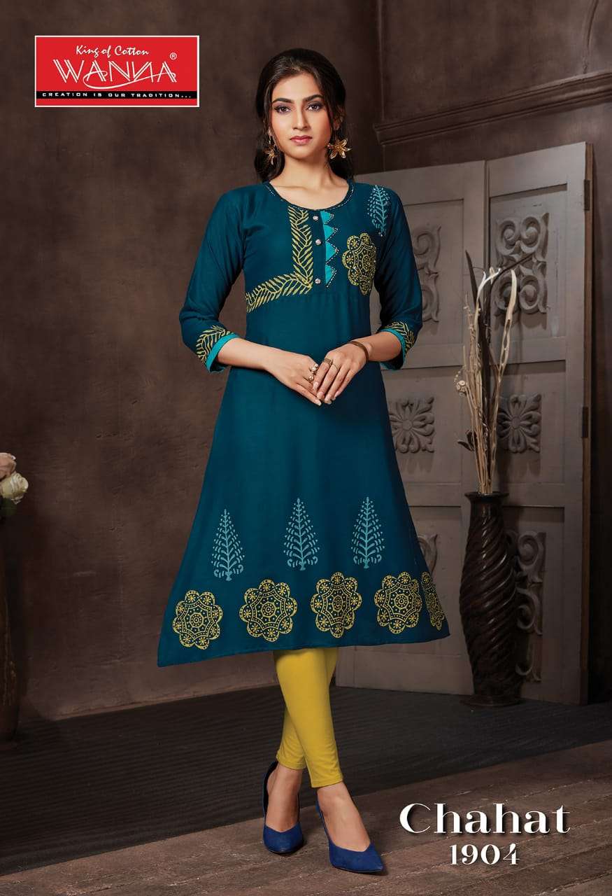 Chahat By Wanna Heavy Rayon Block Print Kurti Catlog Wholesaler Best Price