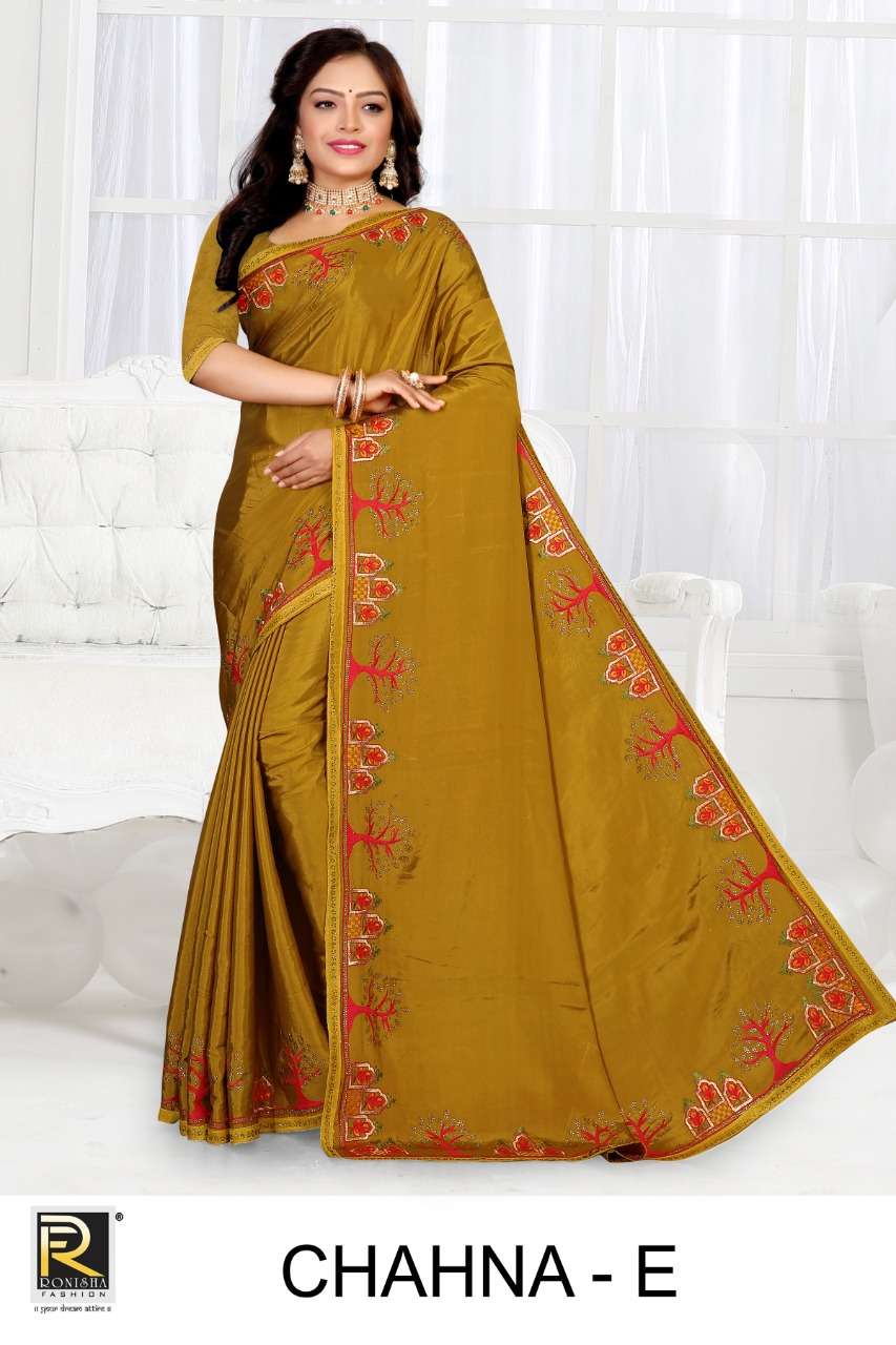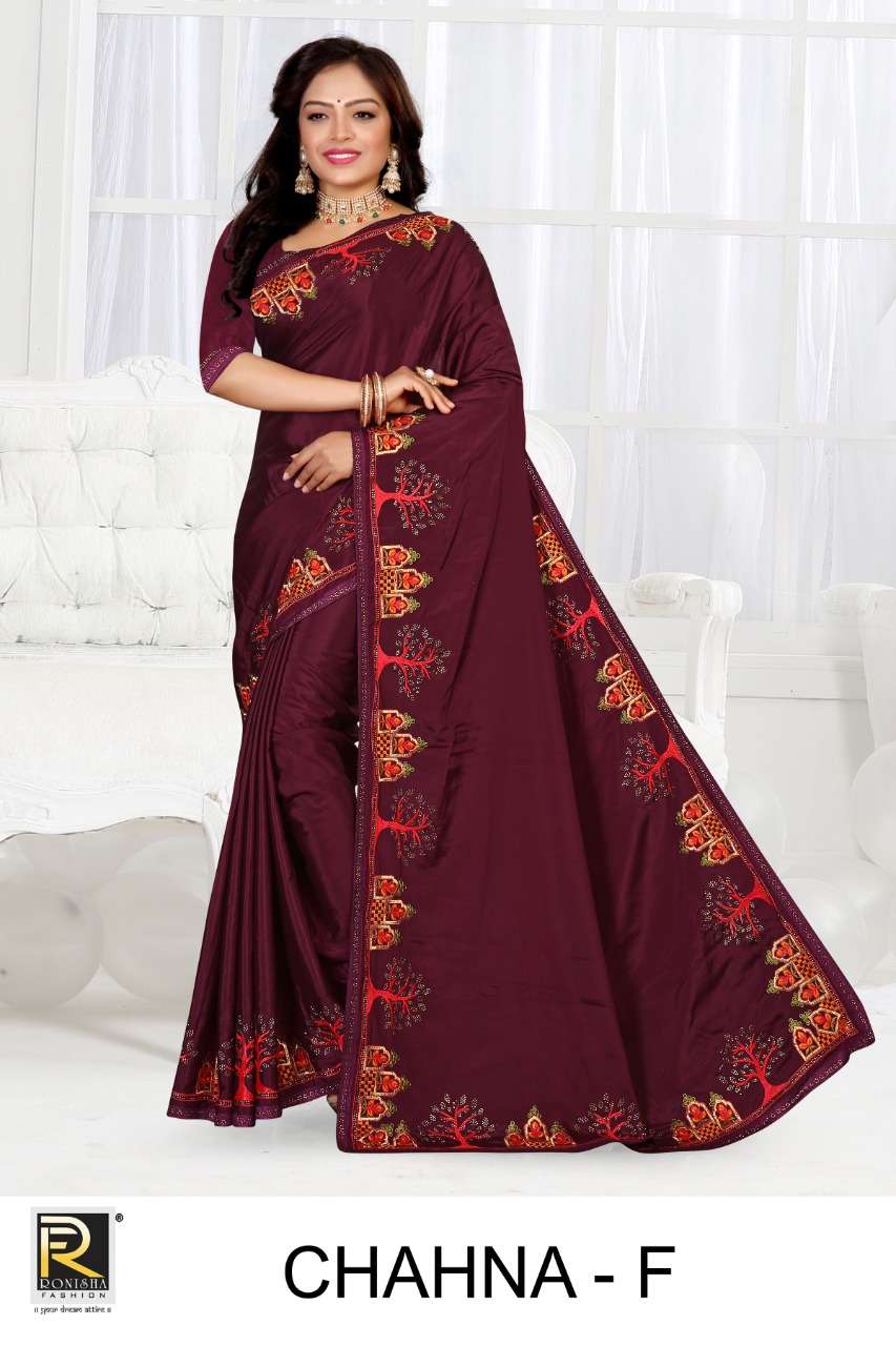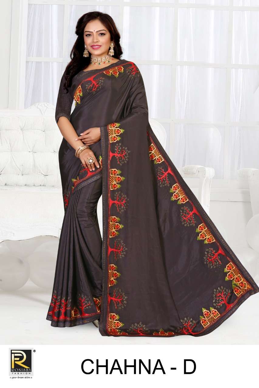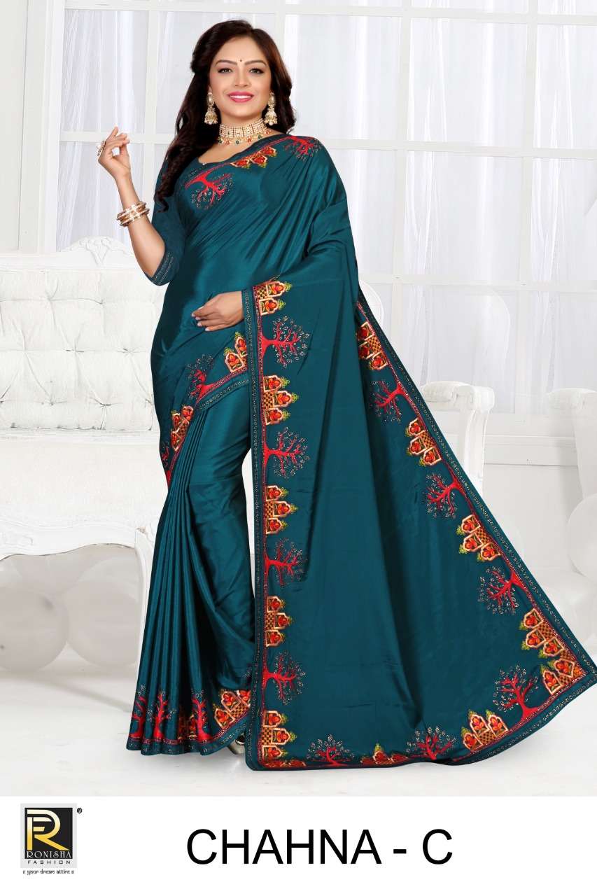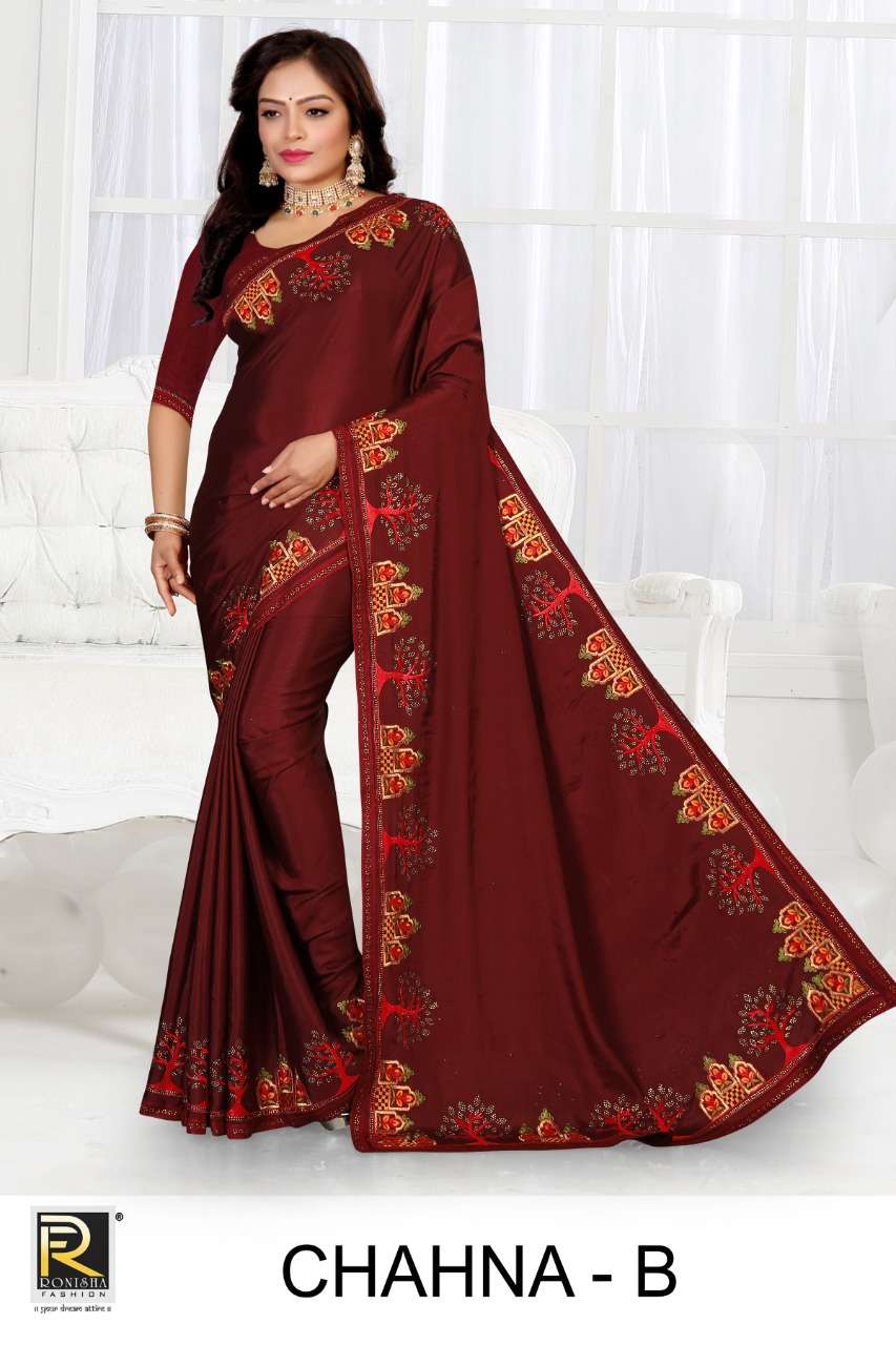Chahna by Ranjna saree soft crape silk fancy thread worked siroski diamond beautiful collecton