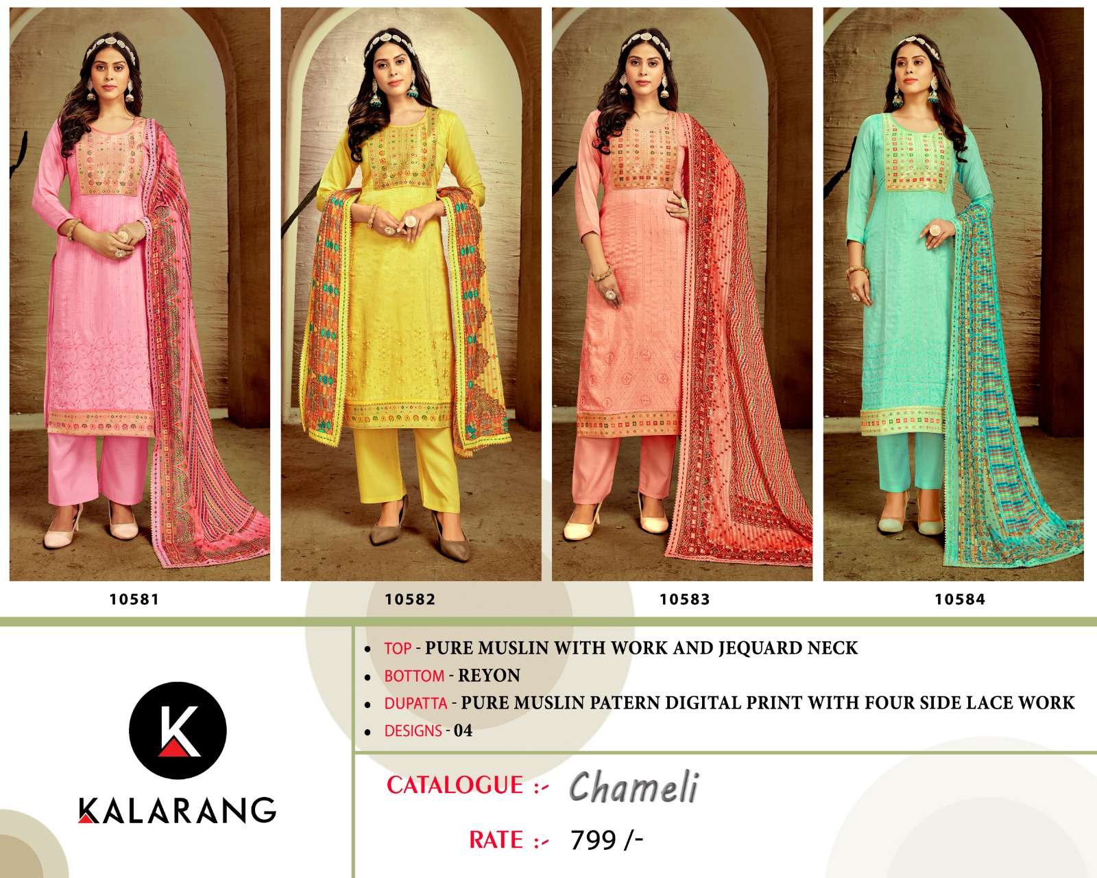 Kalarang Fashion Presents Latest Collection Launched on 19-08-2023. Presenting Beautiful collection of 4 PCS with Unstitched .