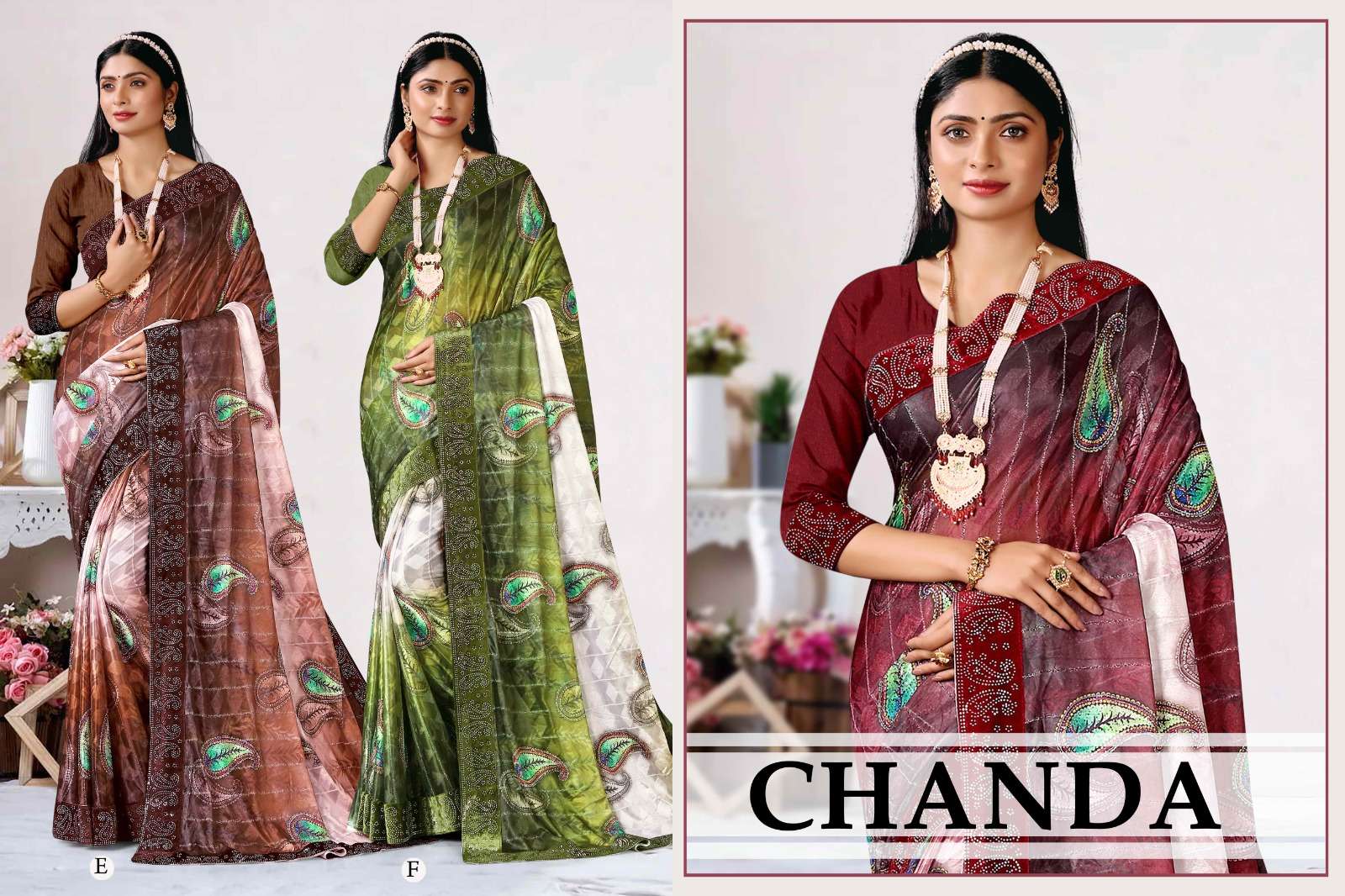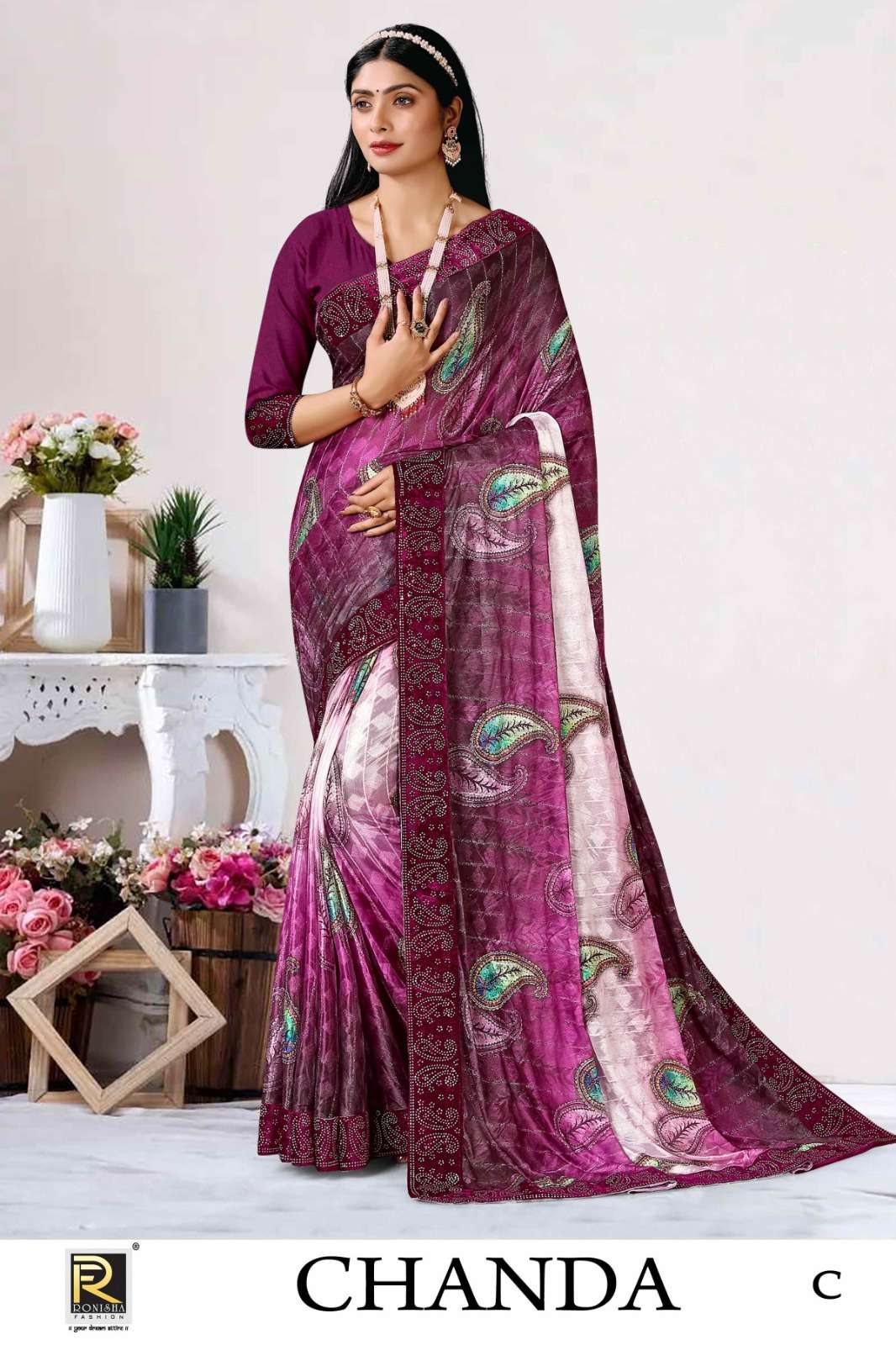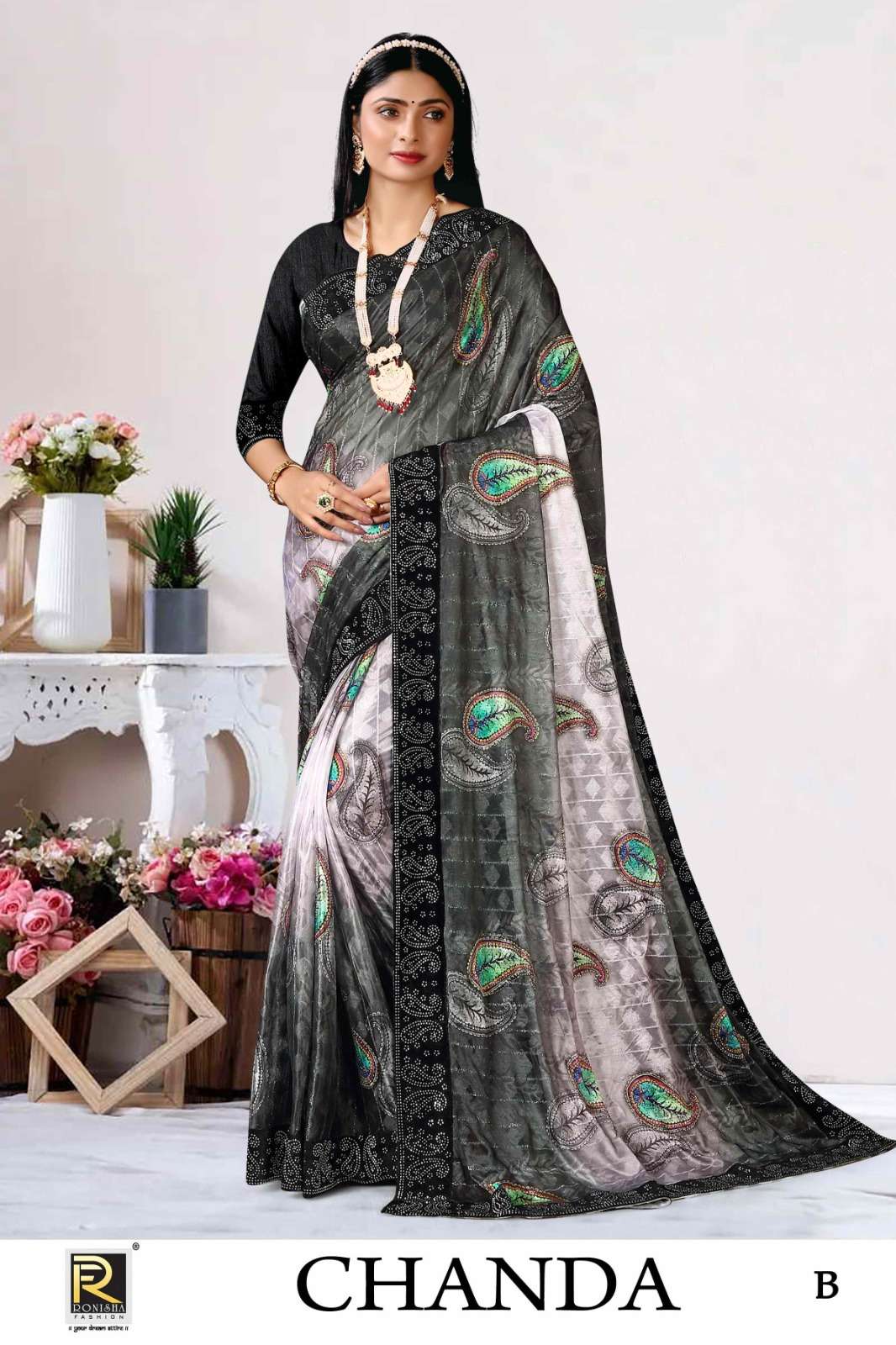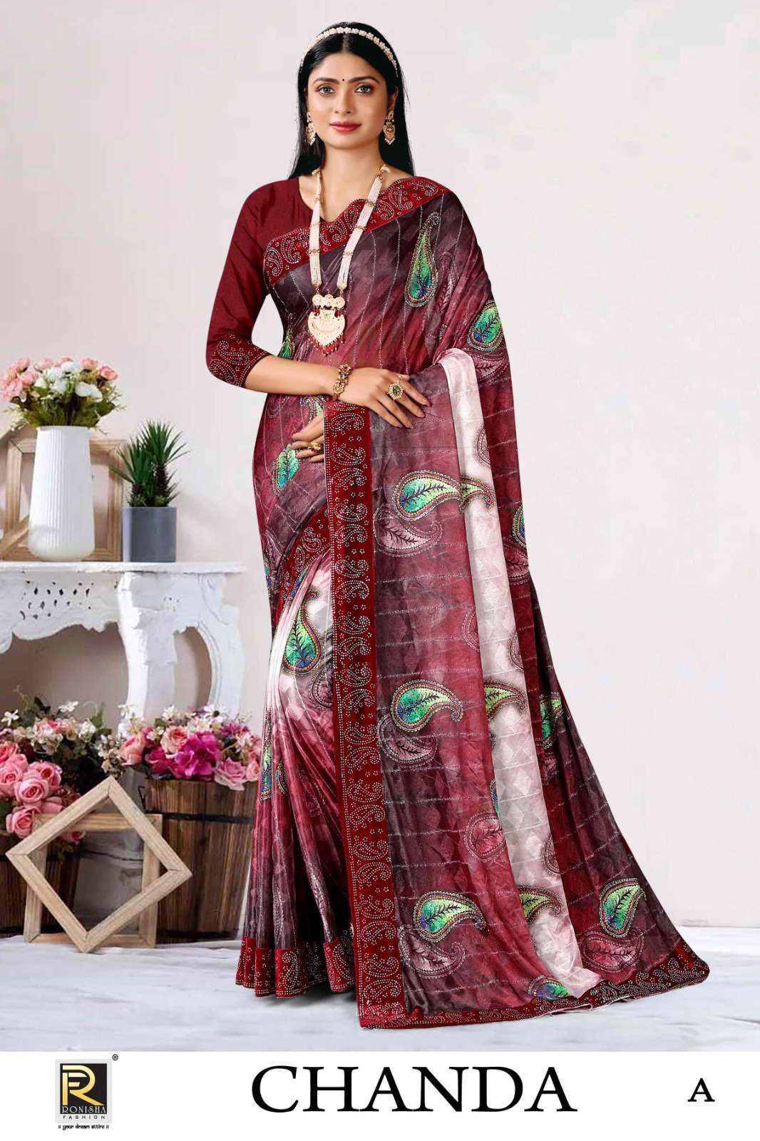 Chanda by ranjna saree fancy border fabric imported lycra bollywood exclusive saree collection
