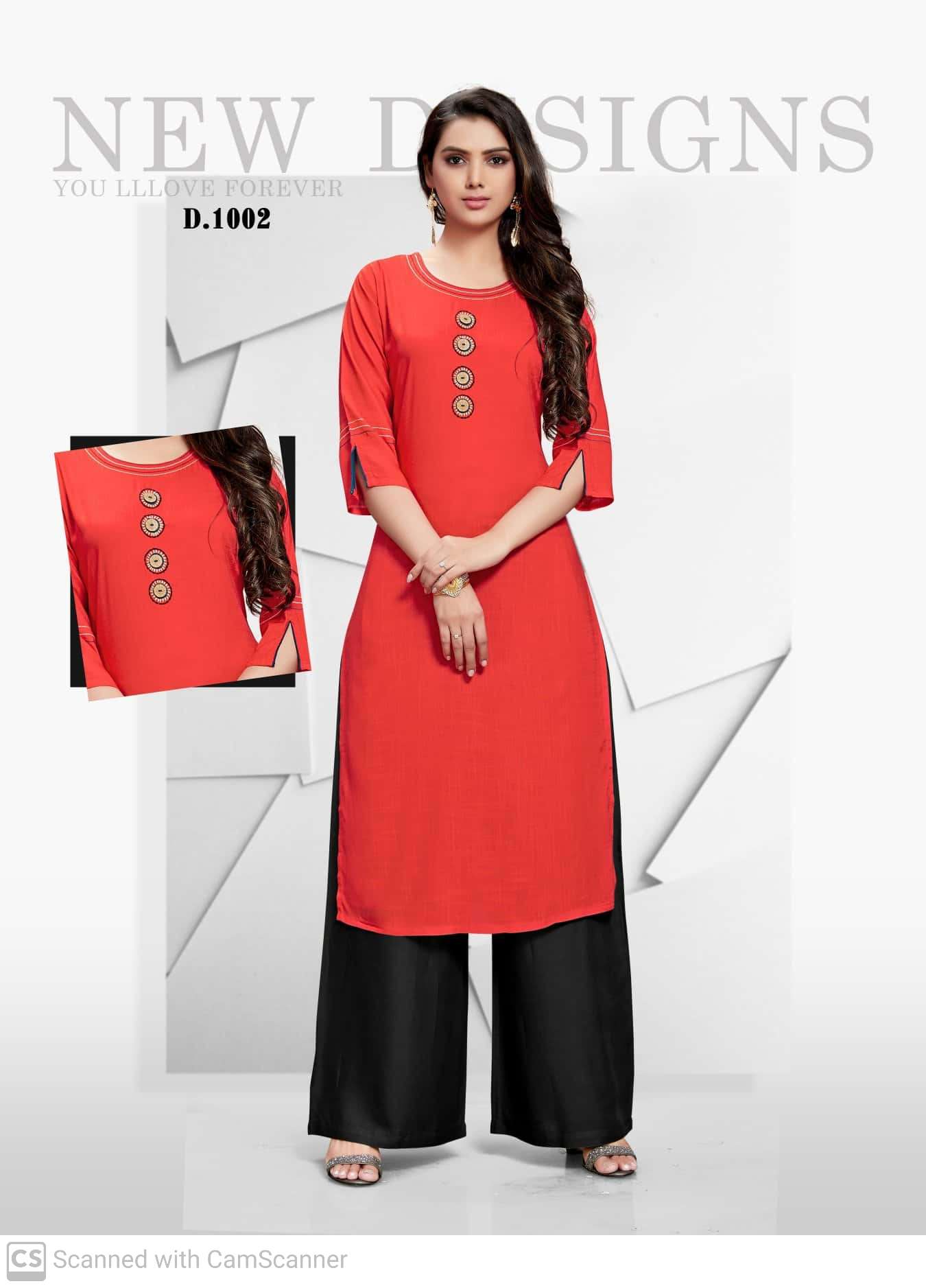 Channel 9 Presenting Camila Rayon Exclusive Kurti With Contrast Plazzo Pant
