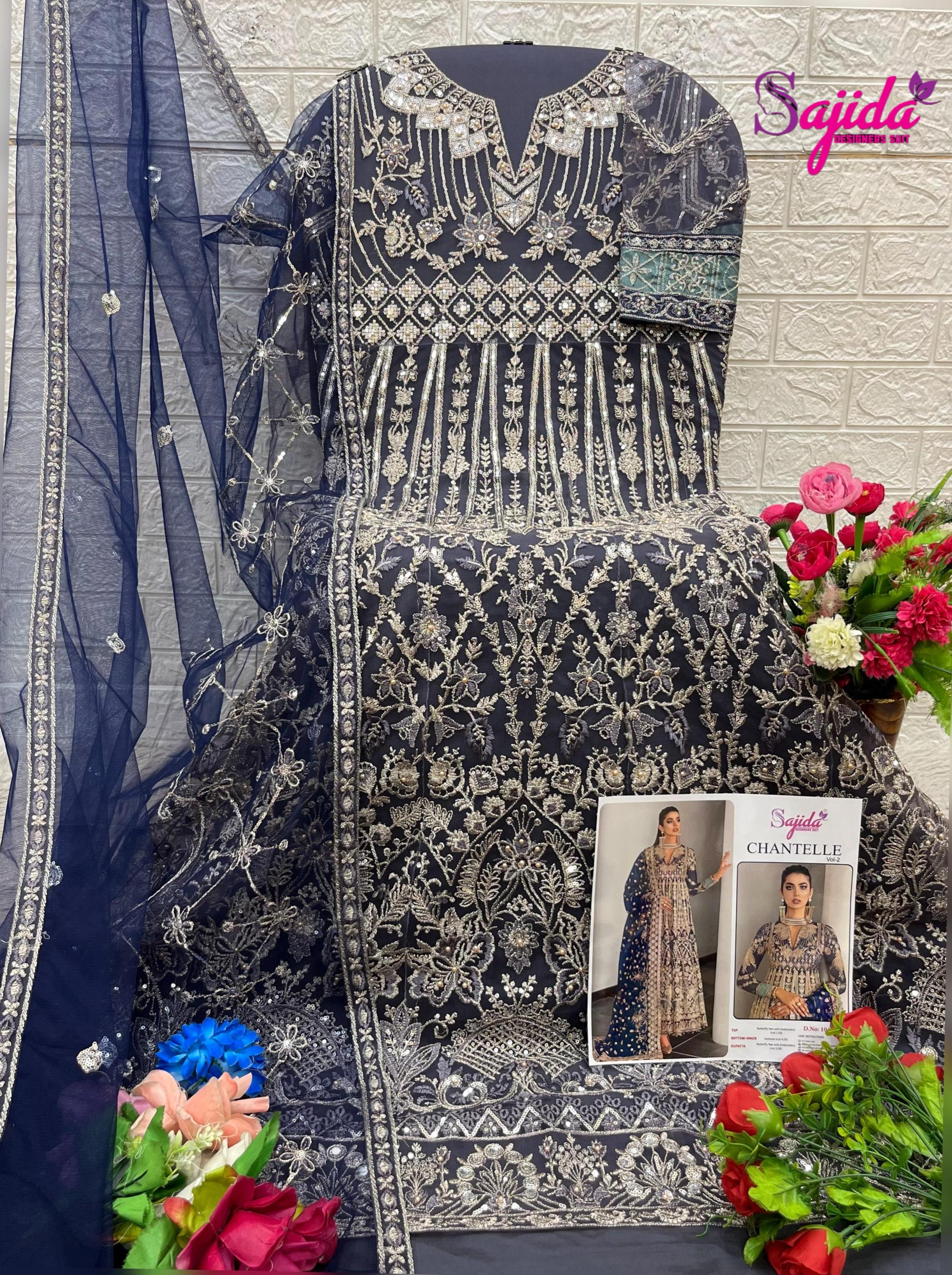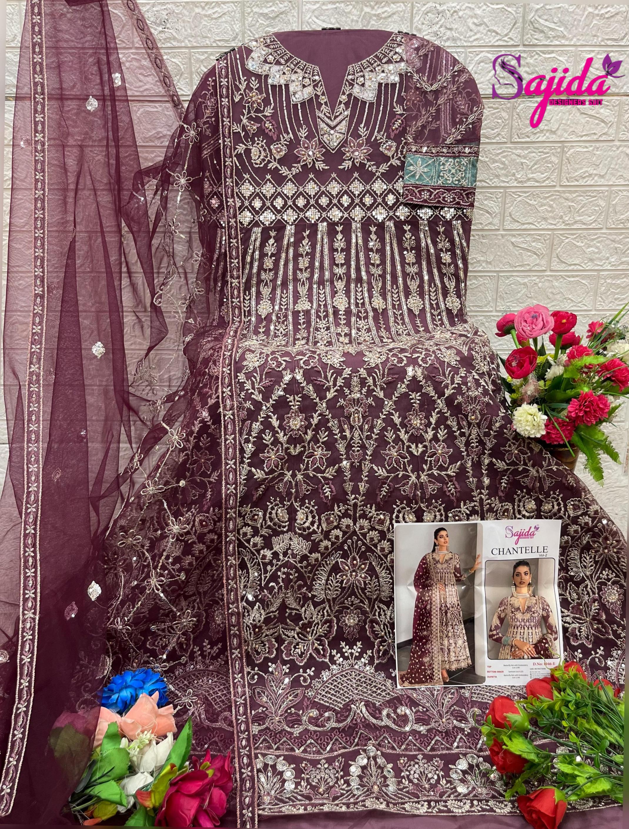 chantelle vol 2 by sajida designer butterfly net 1046 full stitch big size pakistani 3pcs dress