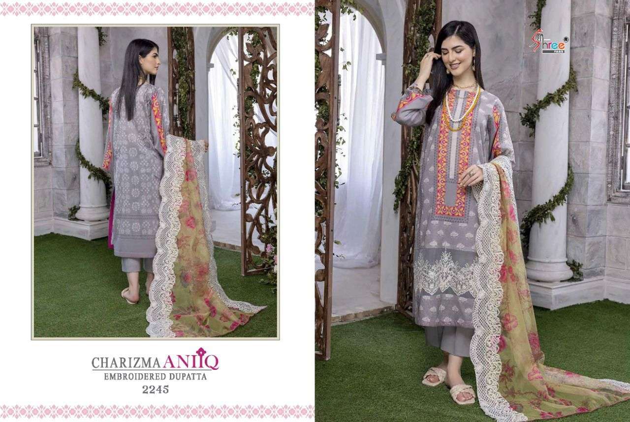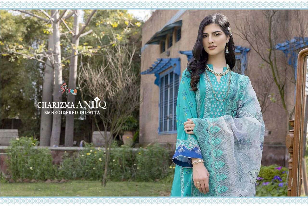 CHARISMA ANIIQ EMBROIDERED DUPATTA TOP PURE LAWN COTTON PRINT WITH SELF & PATCH WORK ( 4 DES SELF ) BOTTOM SEMILAWN DUPPTA SILVER WITH HEAVY BORDER EMBROIDERD DESIGNS 7 RATE 851+GST SIFFON