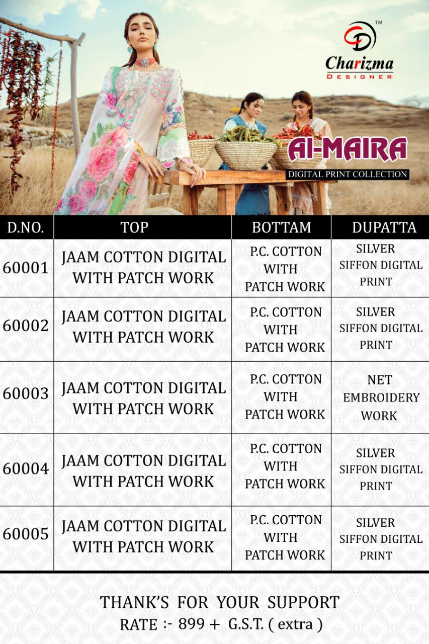 Charizma Designer Almaira Jam Cotton With Patch Embroidery Pakistani Suit Concept
