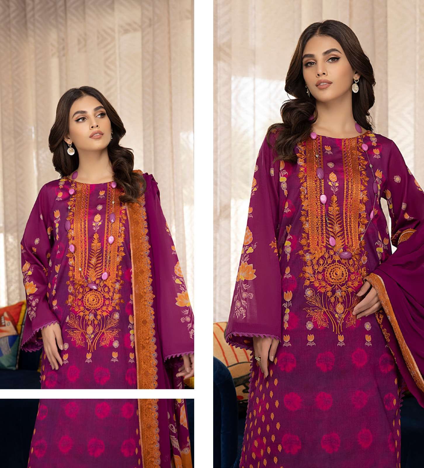 YOUR FAVOURITE BRAND♥️ * HEAVY EMBROIDERY NACK WORK ON GLASS TISSUE LIMITED EDITION Pure Lawn cotton with orizinal mul duppata Design 4 with per pcs pouch & attractive beg packing PRICE 599 ONLY SET WISE |