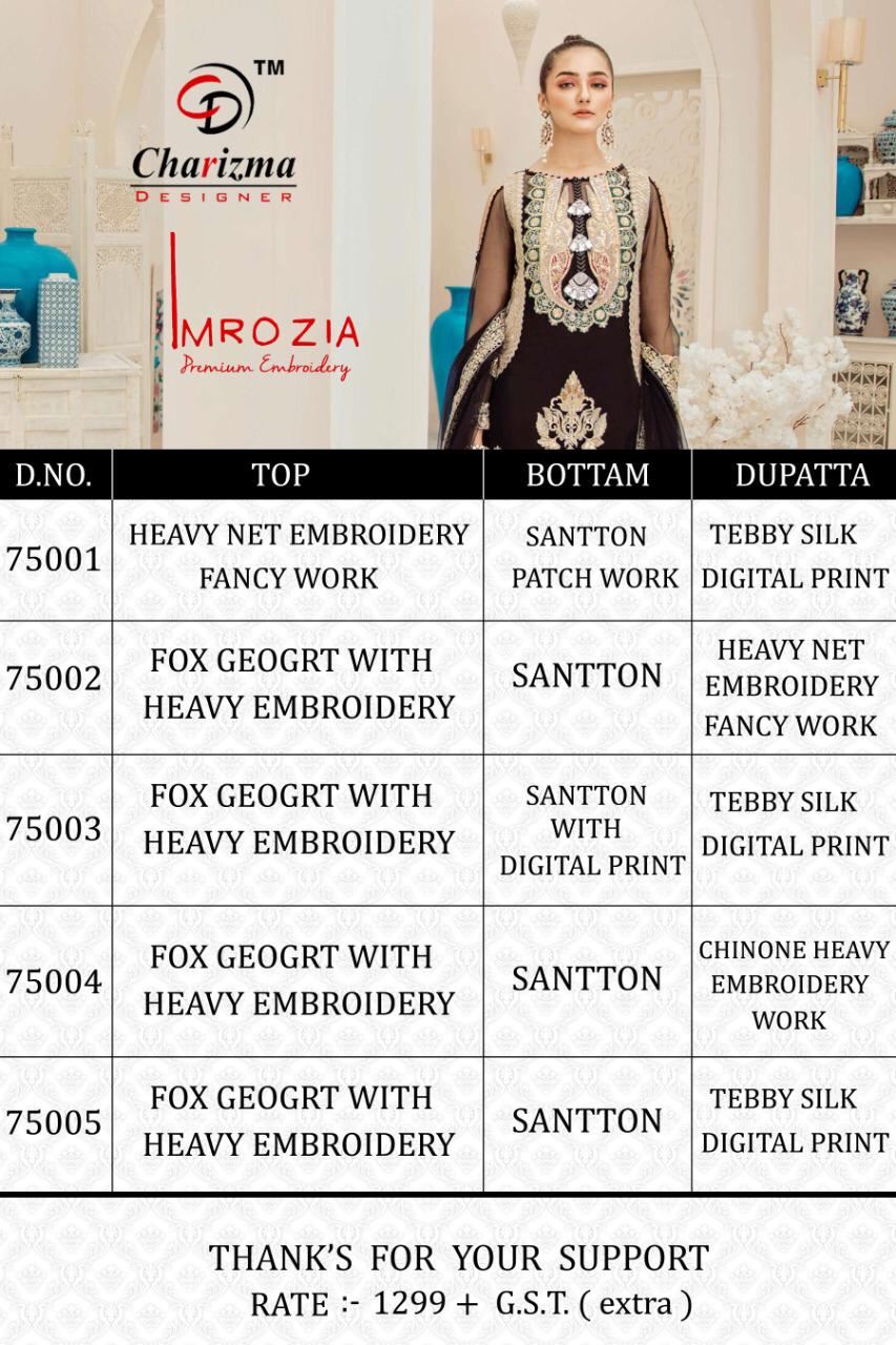 Charizma Designer Imrozia Georgette Net Fancy Embroidery Pakistani Suit Concept
