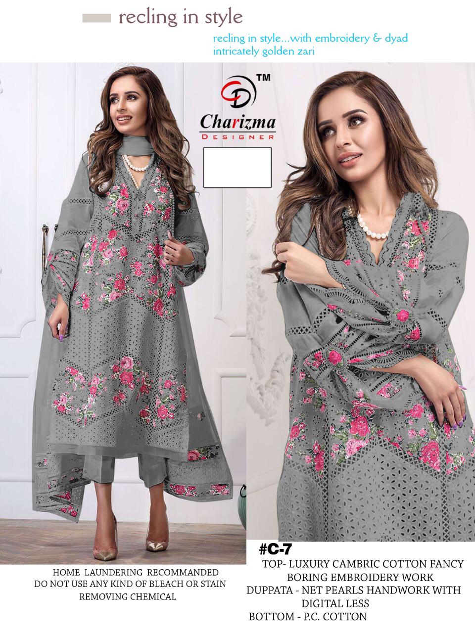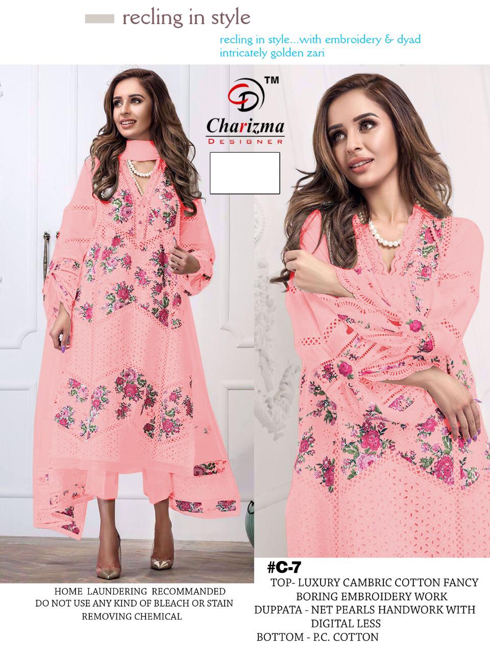 *CHARIZMA DESIGNER New Lauching Alert* Presenting The Most Awaited Design White COLOUR EDITION Super Hot Design Most Wanted _ 6 pic Fabric Details Top:-Cambric cotton With Embroidery & fancy boring work Inner:- cotton Bottom:-P.C COTTON Dupatta:- Net With pearls work with digital four side less * *Price: 1199/- Set to set GST extra FULL SET BOOKiNG OPEN Dispatch: next week |