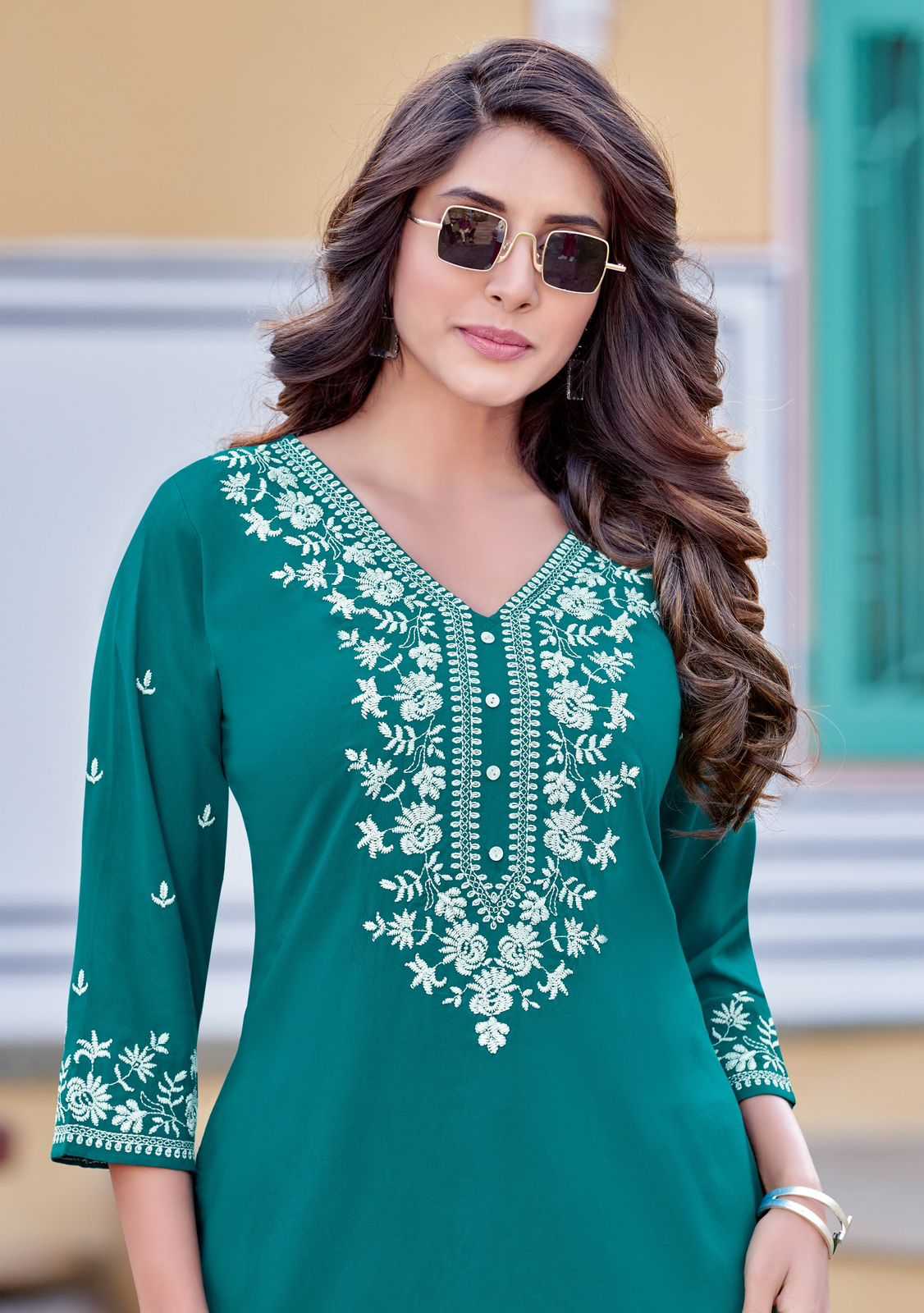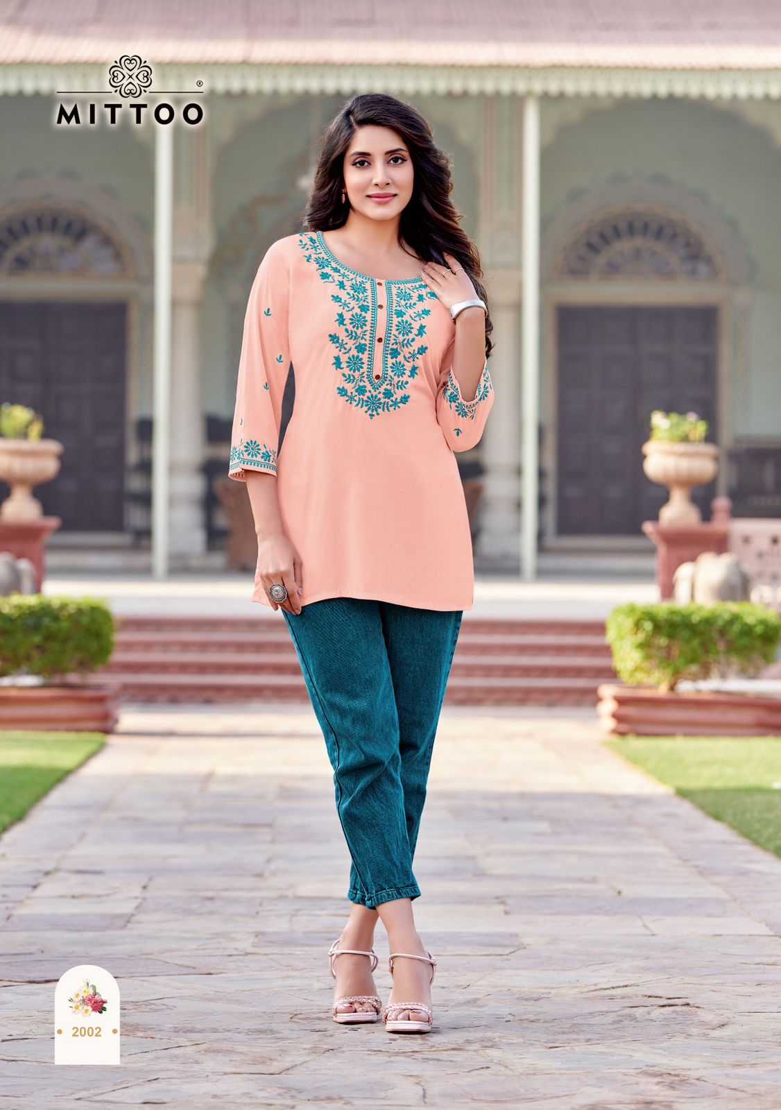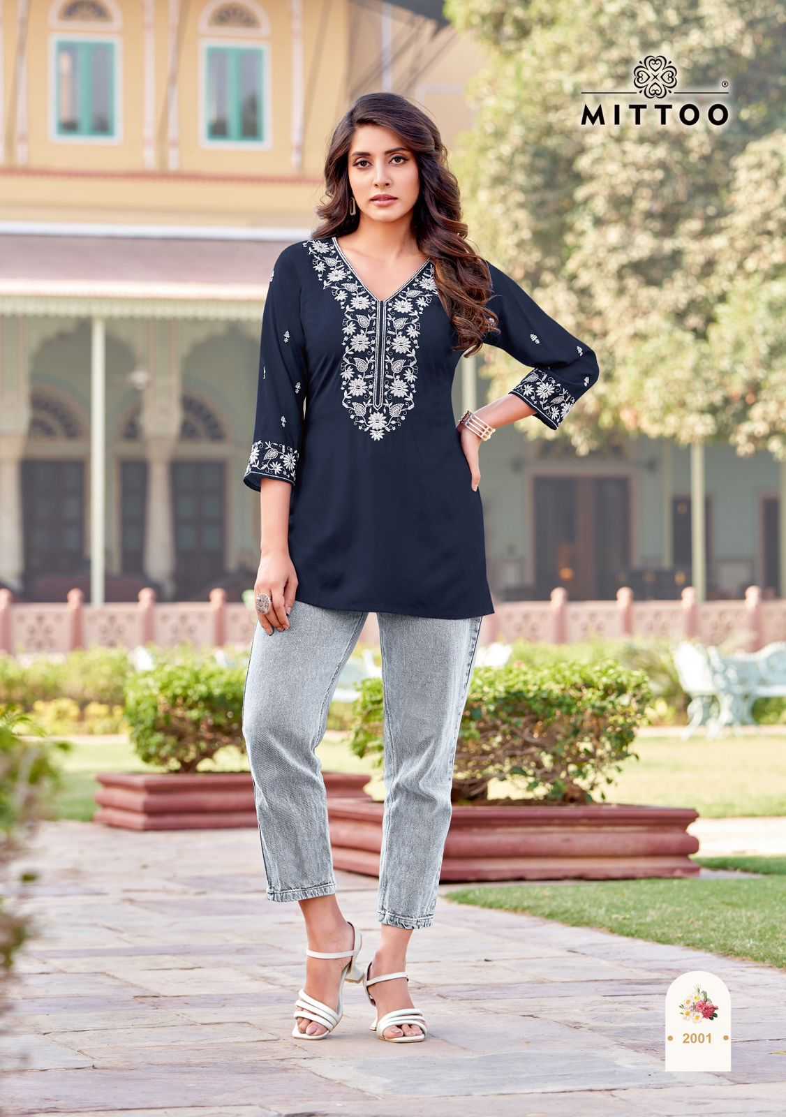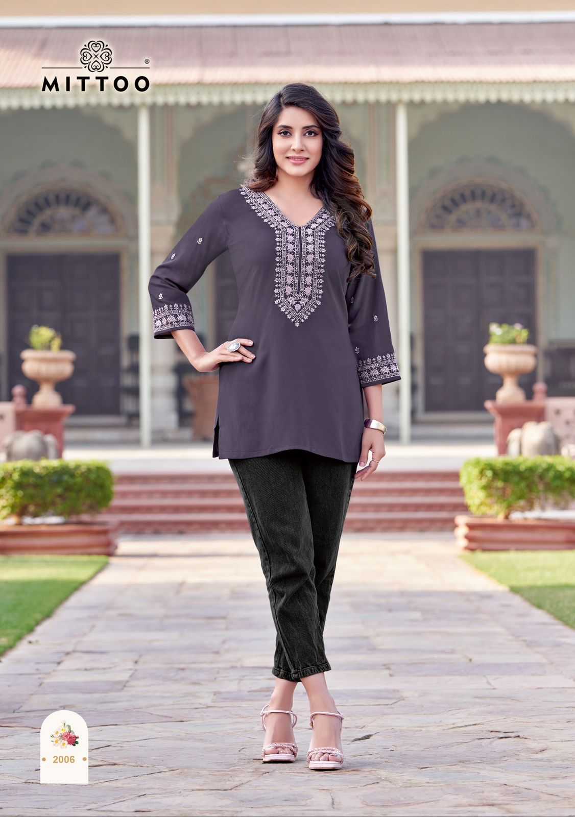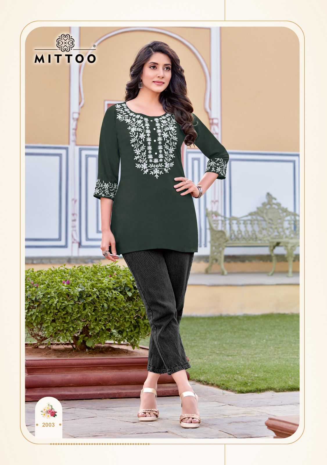 charmi by mittoo festival wear cotton threadwork classy look full stitch short top