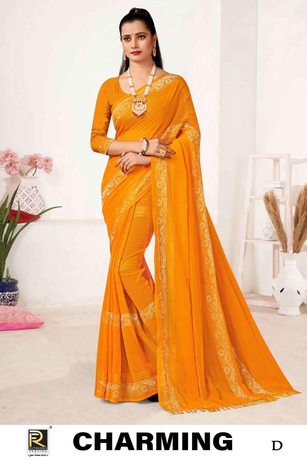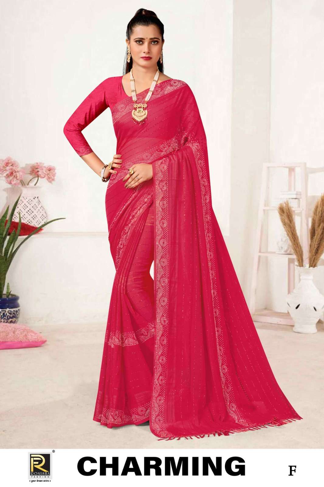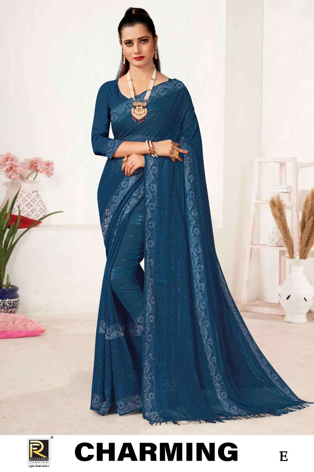 CHARMING BY RANJNA SAREE FANCY FABRICS SELF PETTERN WITH SIROSKI DIAMOND WORK SUPER HIT COLLECTION