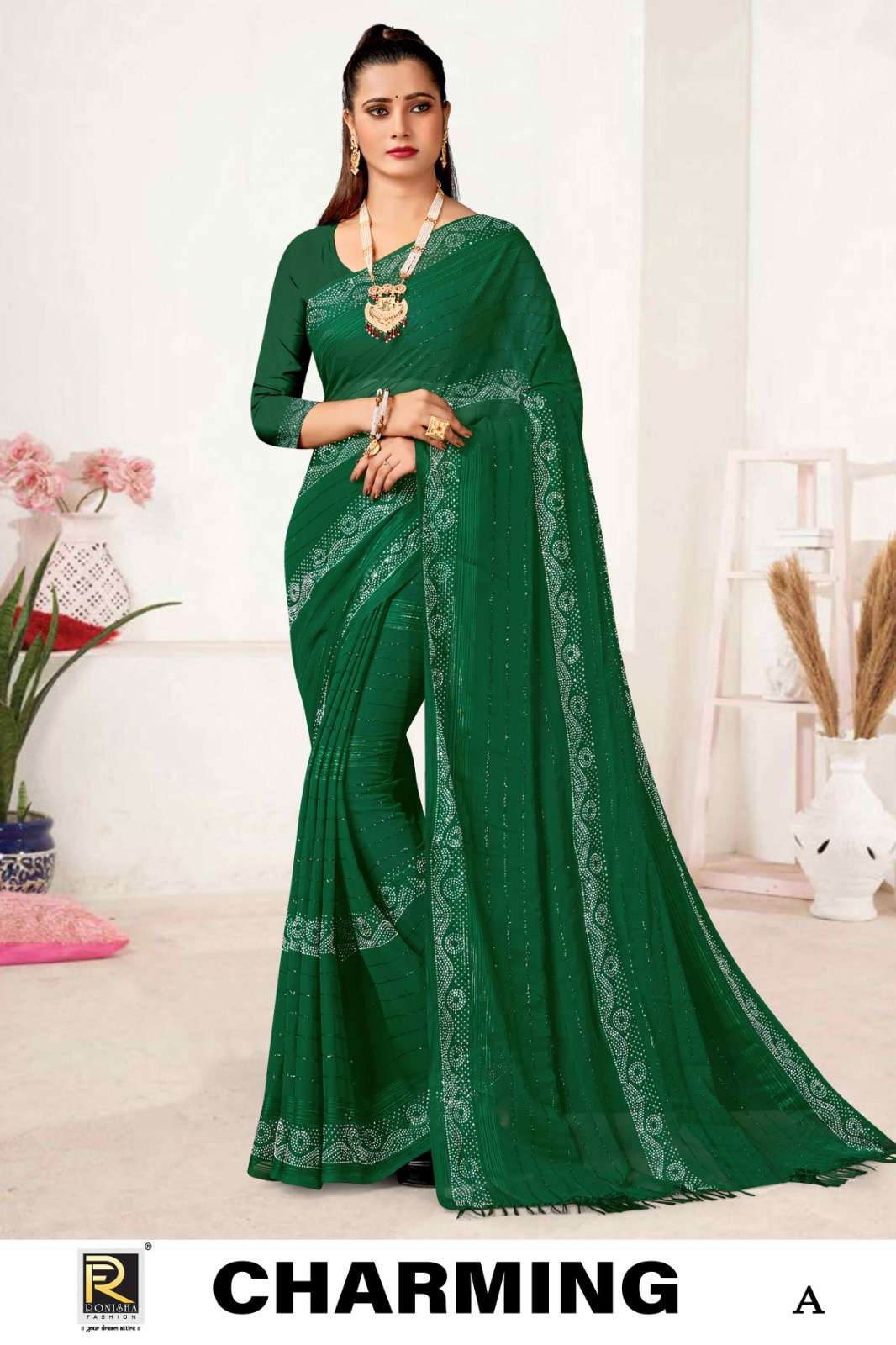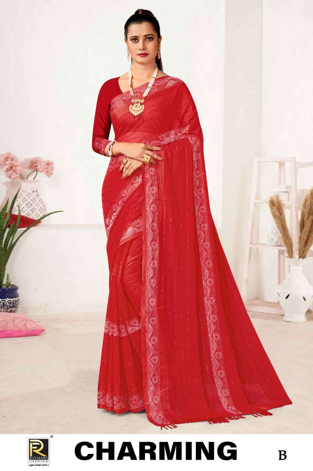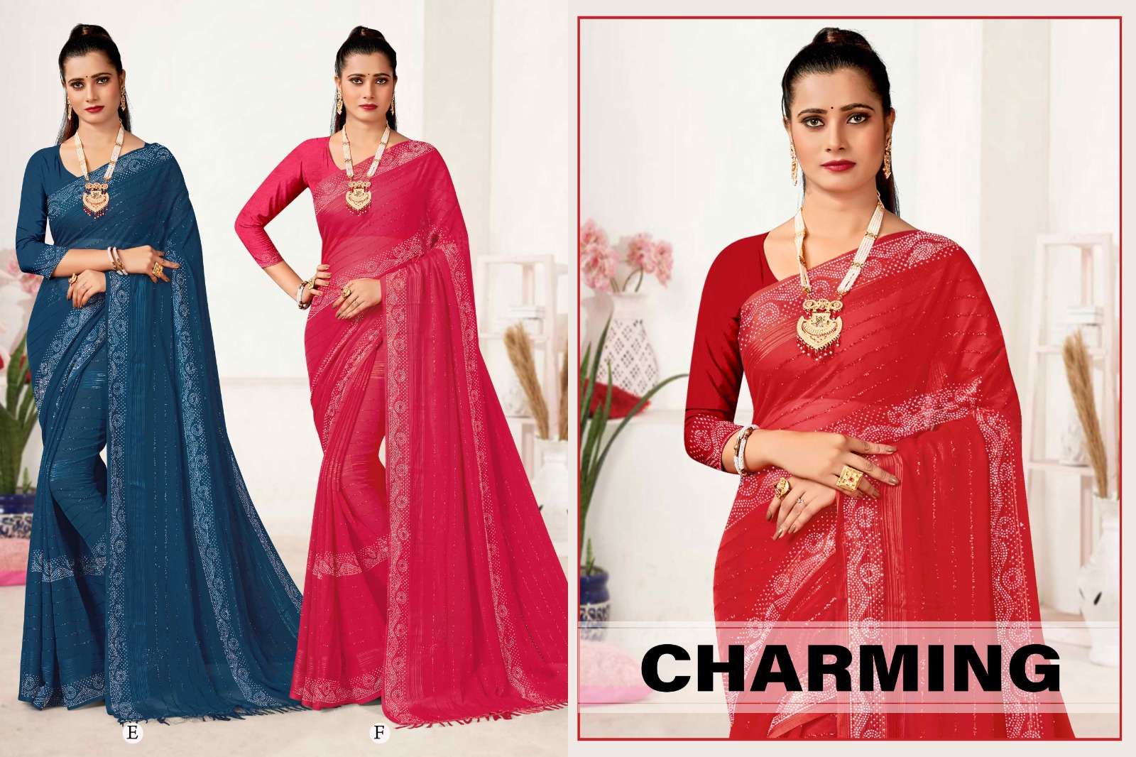 CHARMING BY RANJNA SAREE FANCY FABRICS SELF PETTERN WITH SIROSKI DIAMOND WORK SUPER HIT COLLECTION