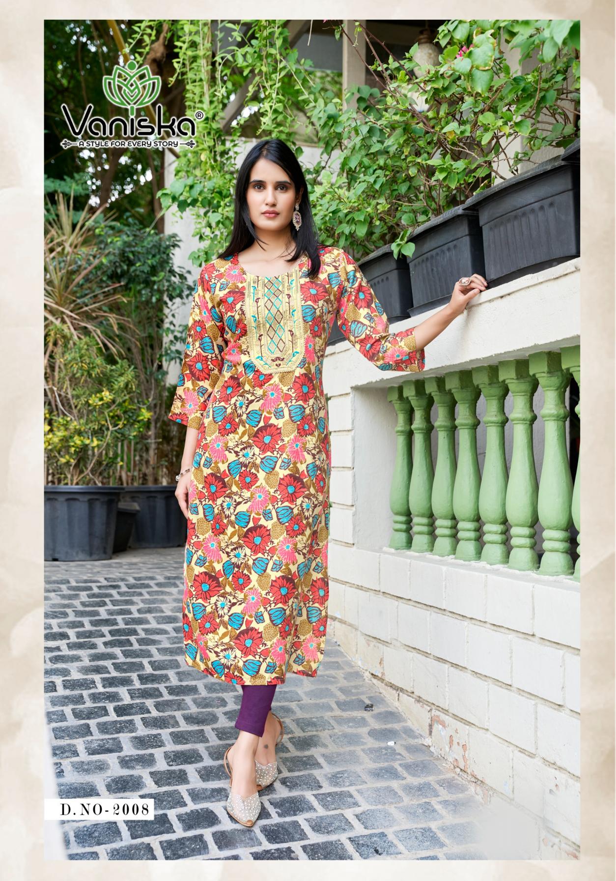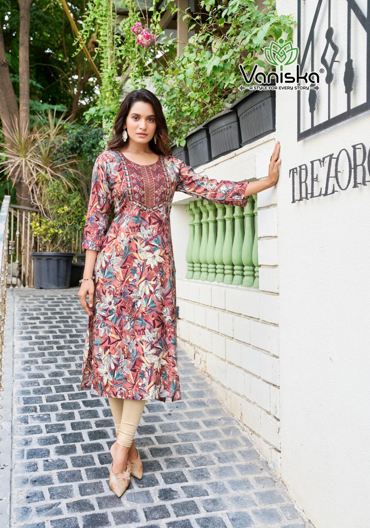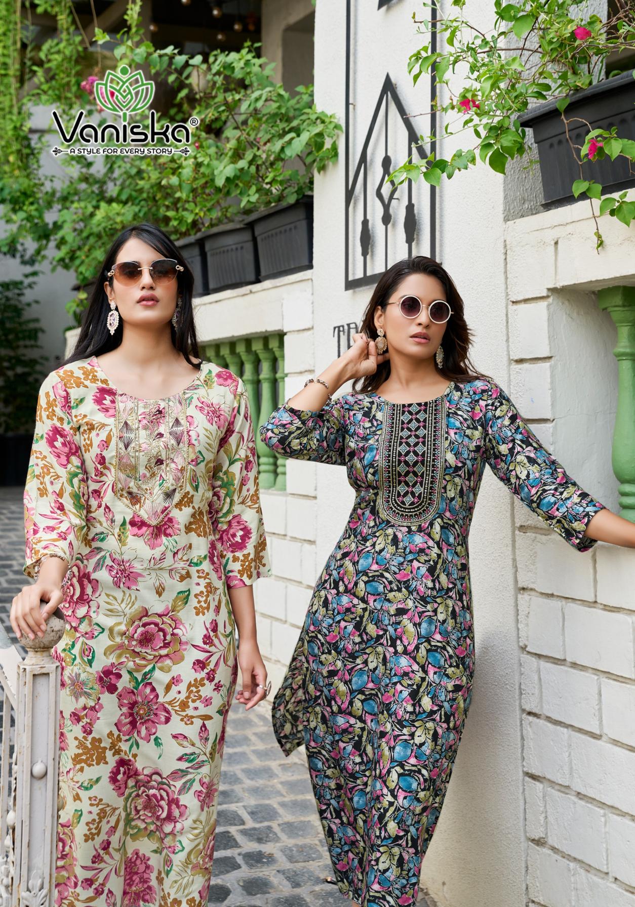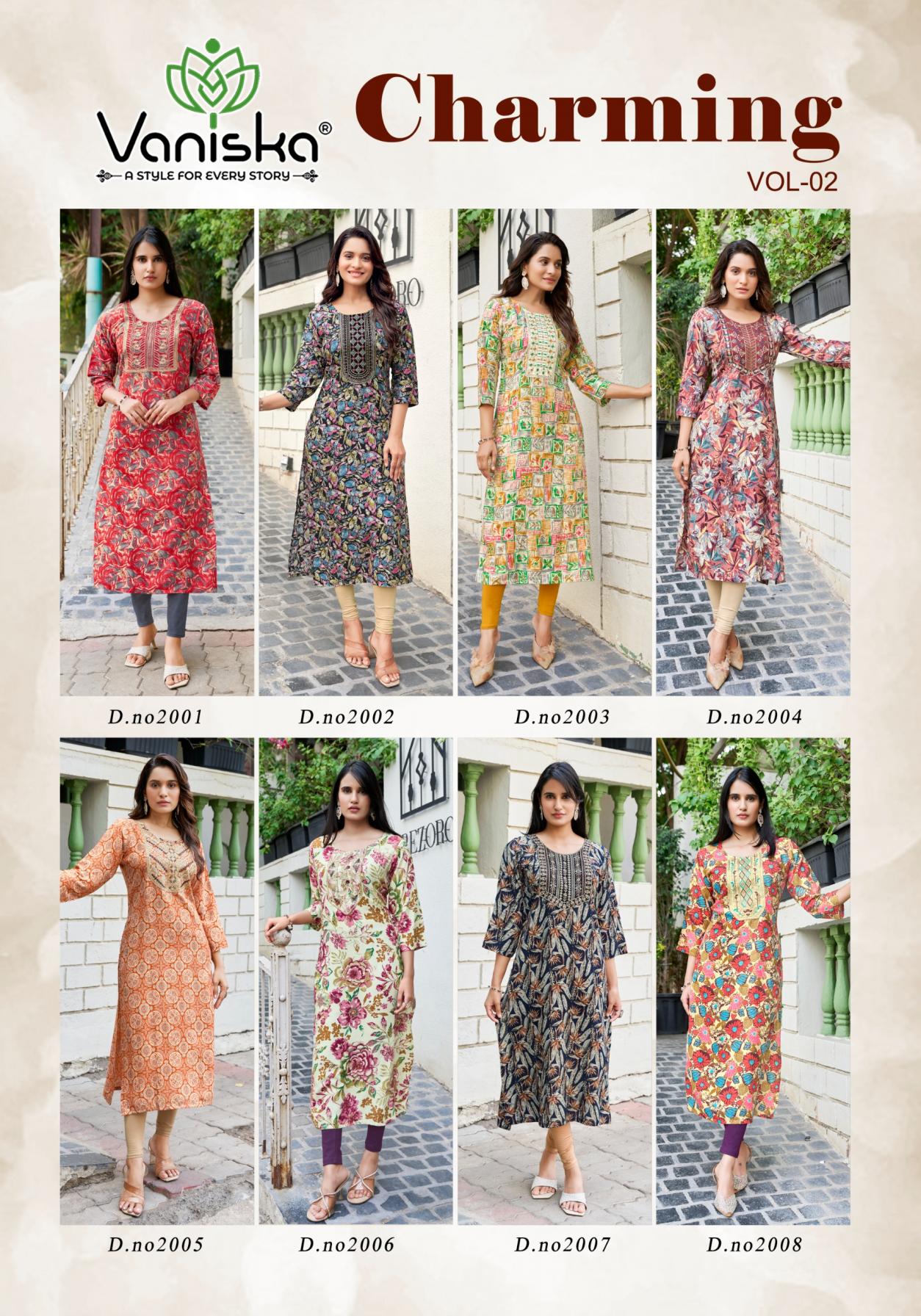 charming vol 2 by vaniska colourpix rayon readymade plus size long kurtis