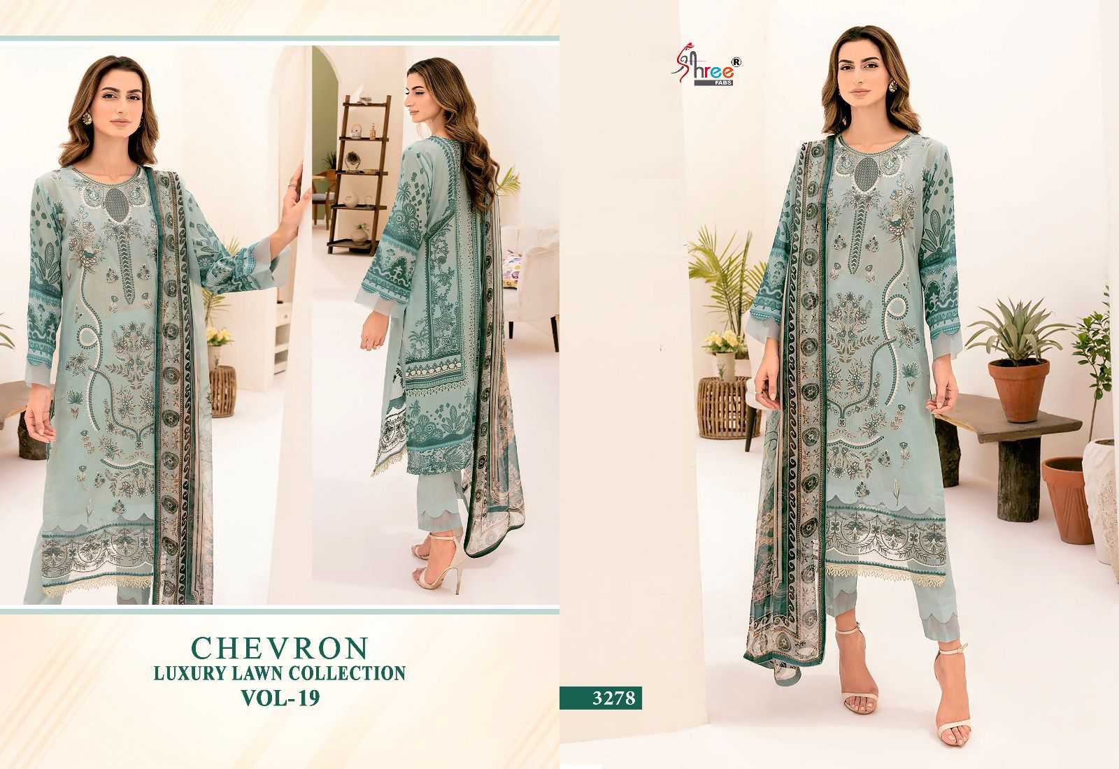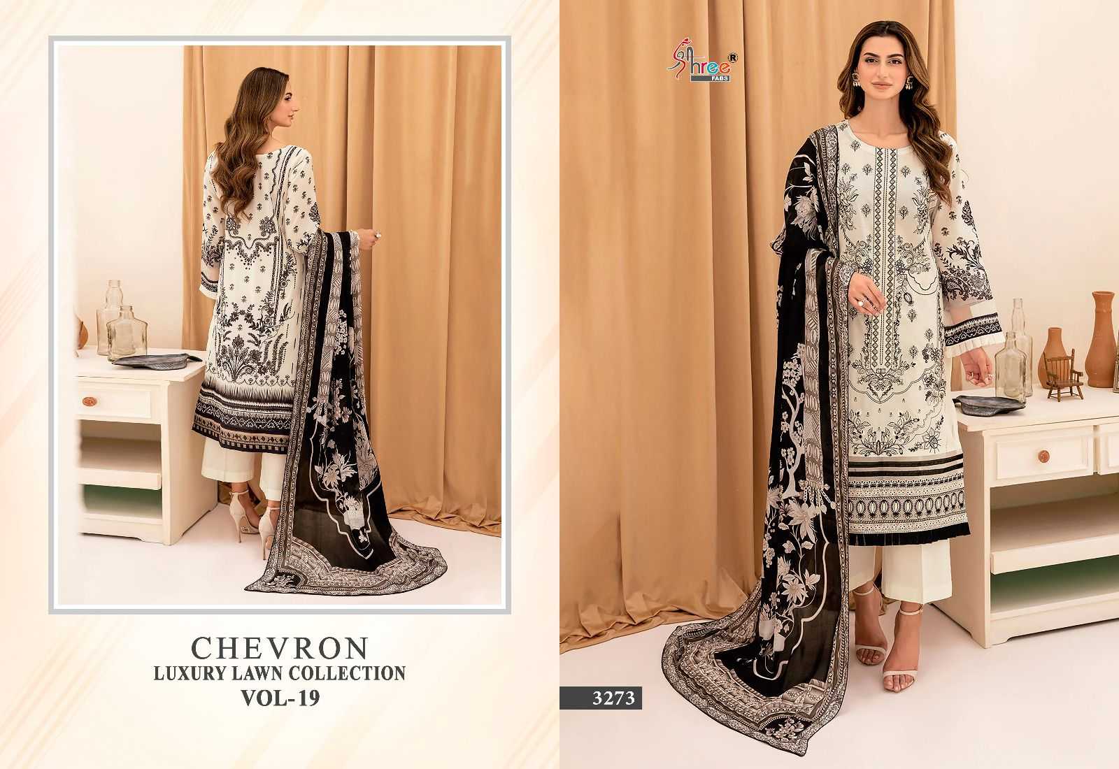 CHEVRON LUXURY LAWN COLLECTION VOL-19 TOP PURE LAWN PRINT WITH EXCLUSIVE SELF EMBROIDERY BOTTOM SEMI LAWN DUPPTA SIFFON / COTTON DESIGNS 8 RATE 799 + GST SIFFON 850 + GST COTTON SHREE FABS SURAT®️ |