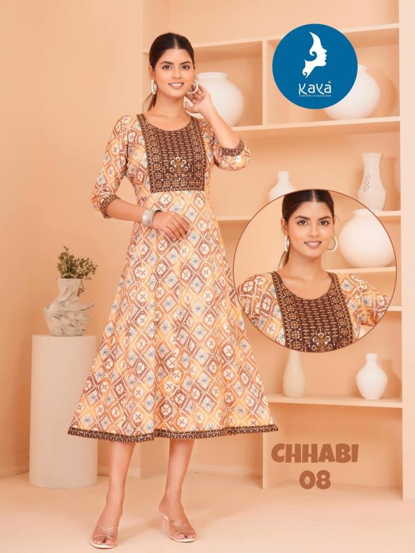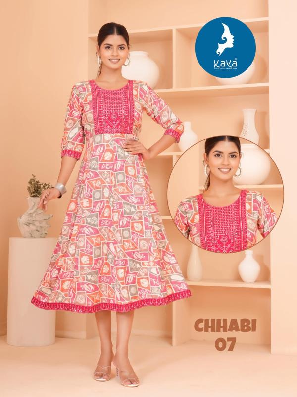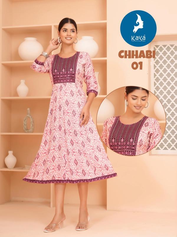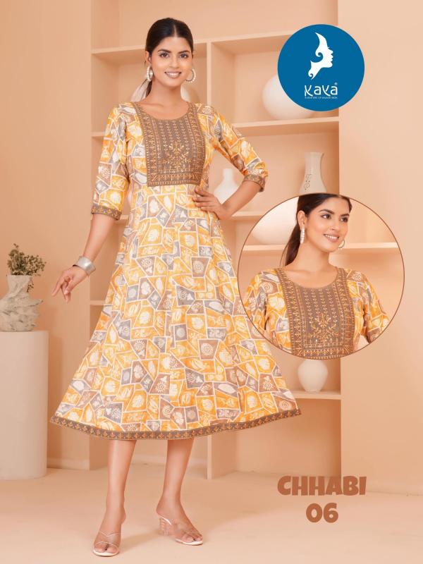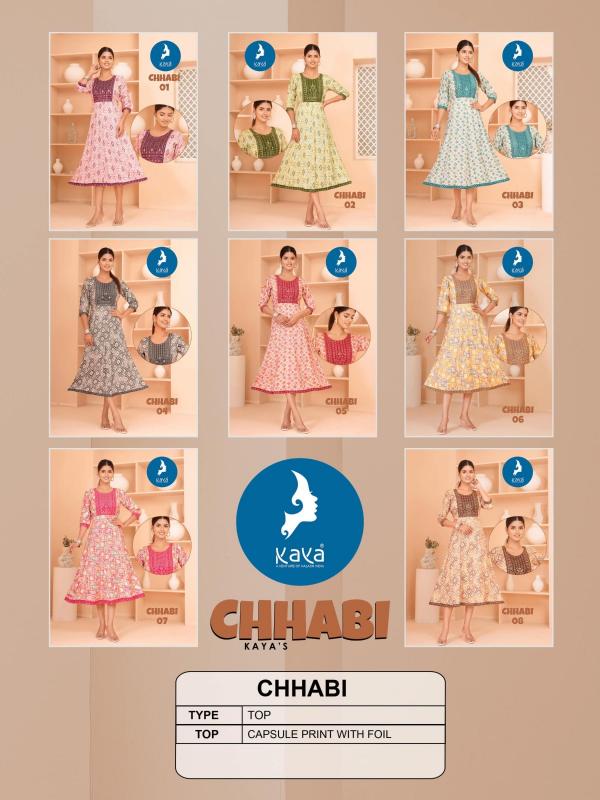 chhabi by kaya regular wear capsule print readymade frock style kurti