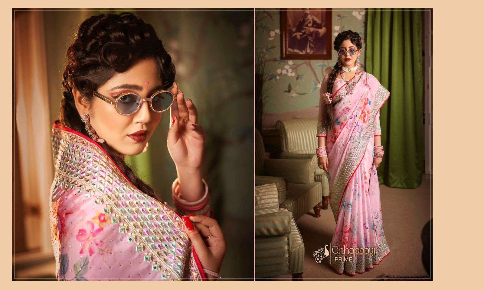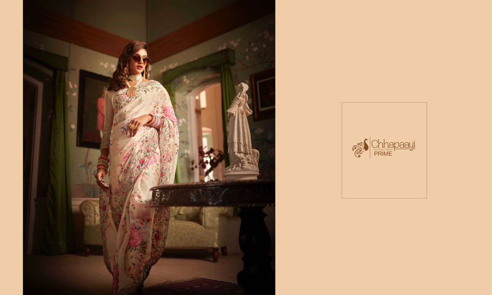 CHHAPAAYI PRIME NEW CATALOGUE LAUNCH CATALOGUE DETAILS:- FABRIC DETAILS:- ▪︎ WITH FULL SAREE HEAVY EMBROIDERY WORK , KHATALI WORK & SAROSKI WORK PACKING DETAILS:-BOX RATE:-3000/- |