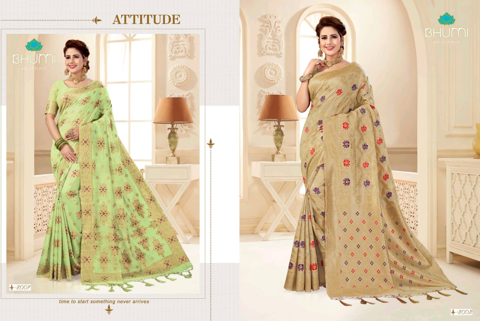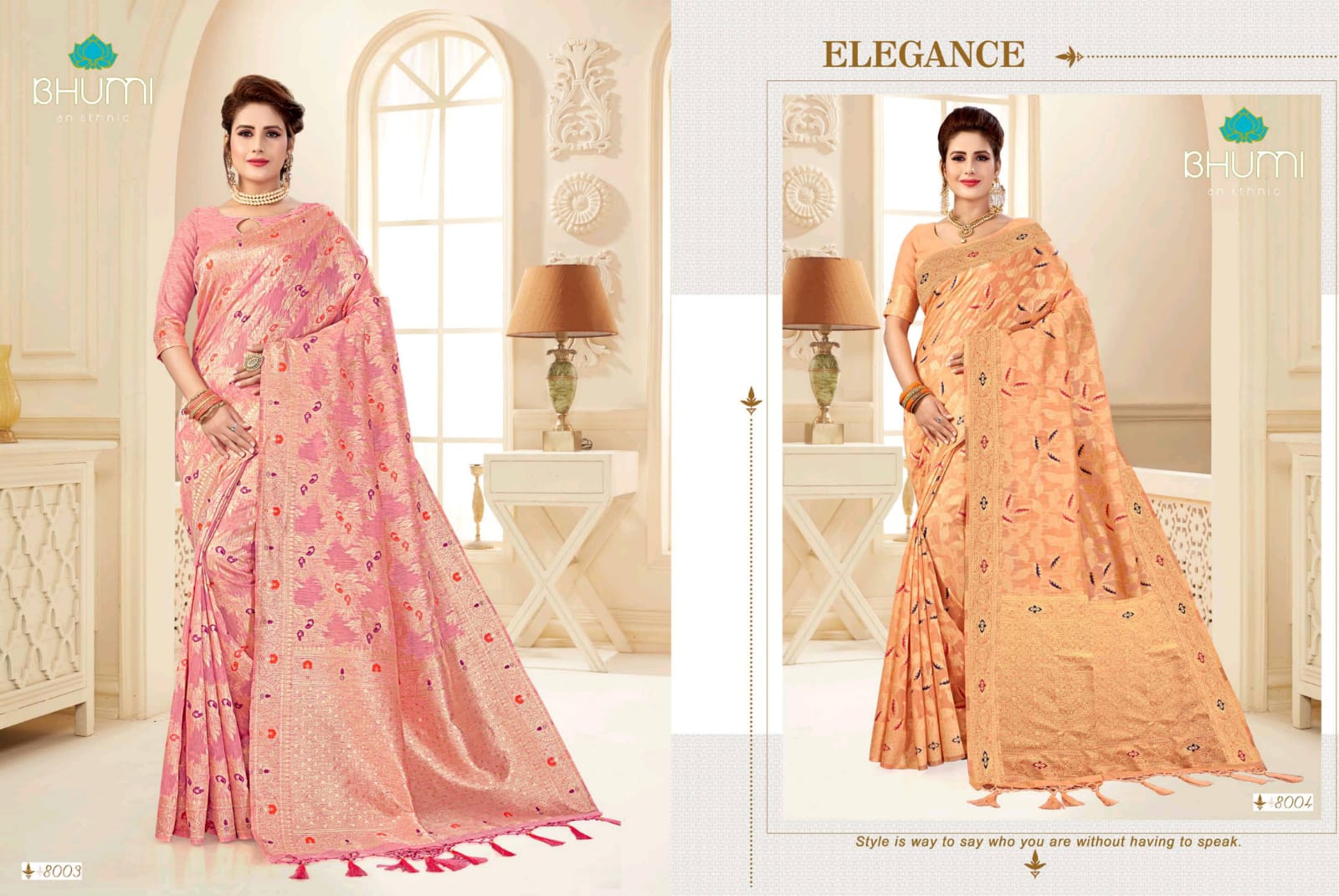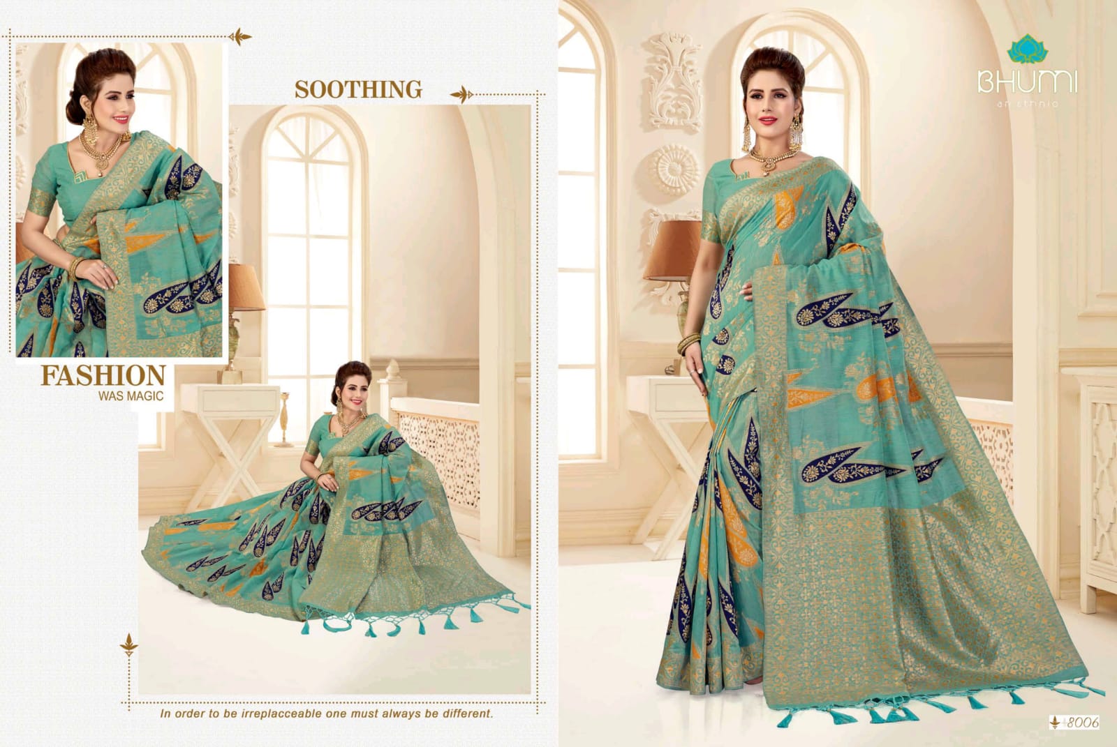 Brand - BHUMI . Catlog Name - CHHAYA Series - 8001-8011 Rate - 1095 per Pcs . Silk Fabrics Set to set. GST 5 Percent Extra. Delivery 4-5 Days |